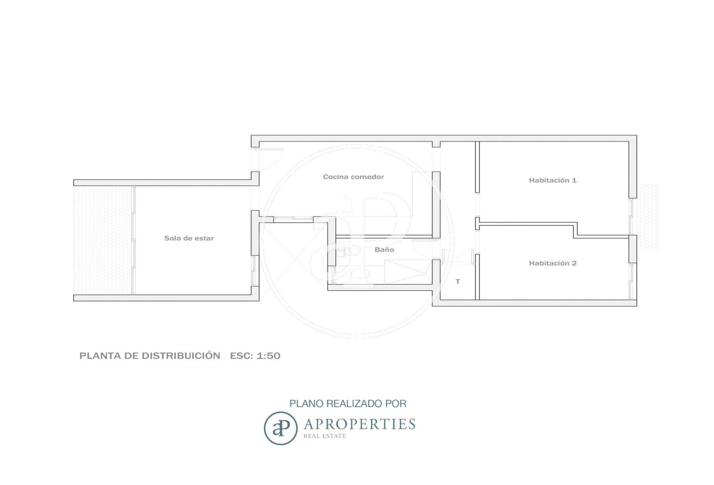 Se distribuye de la siguiente forma: dos habitaciones dobles exteriores a calle, baño completo, zona de aguas, cocina abierta al comedor, salón independiente con salida a terraza a nivel que orienta a un tranquilo y amplio patio de manzana. Doble orientación NE y SO.
