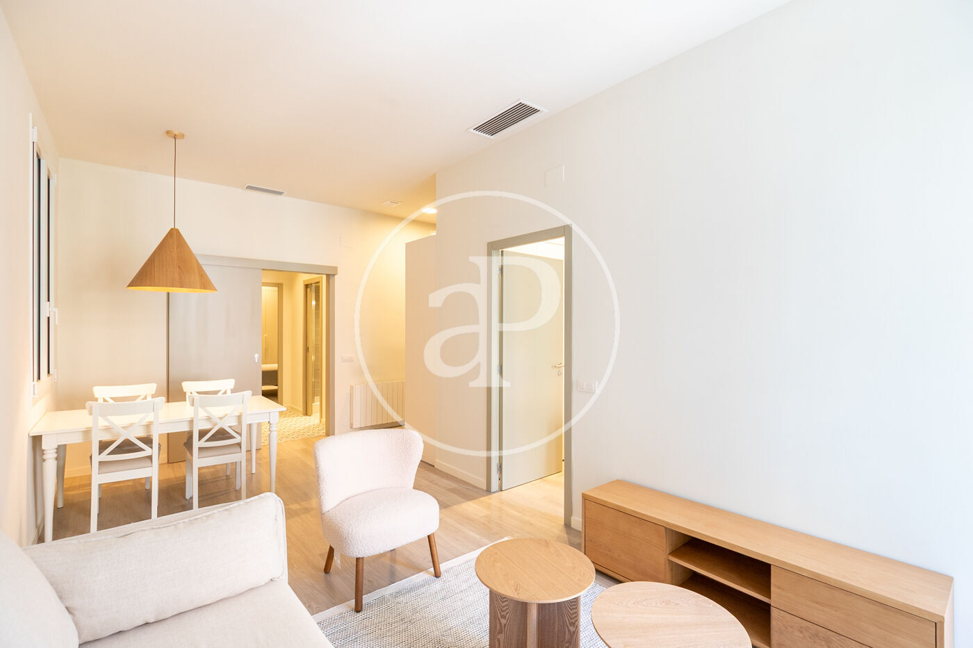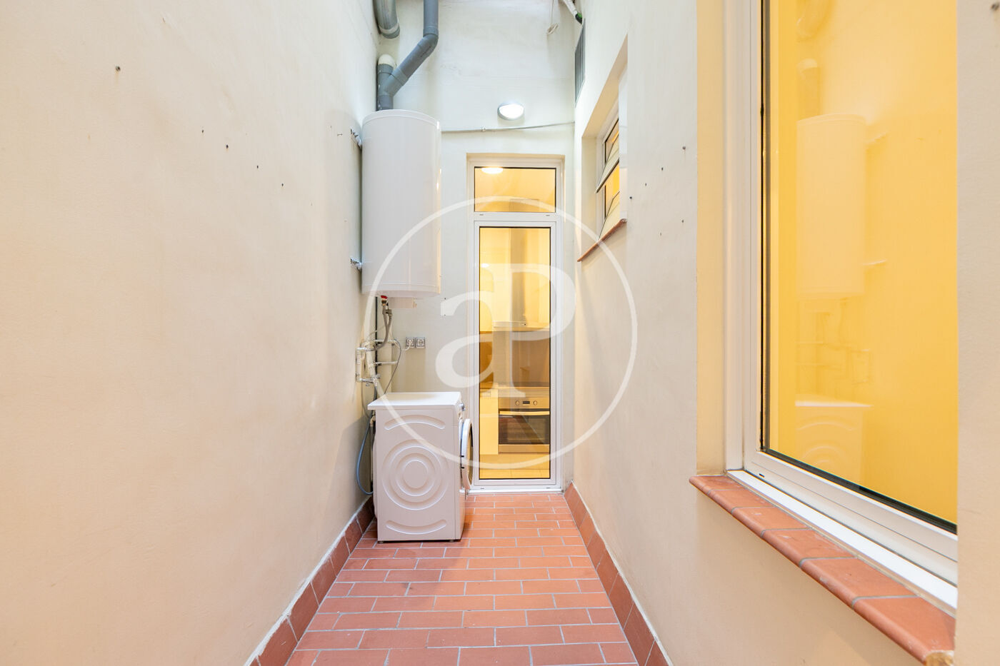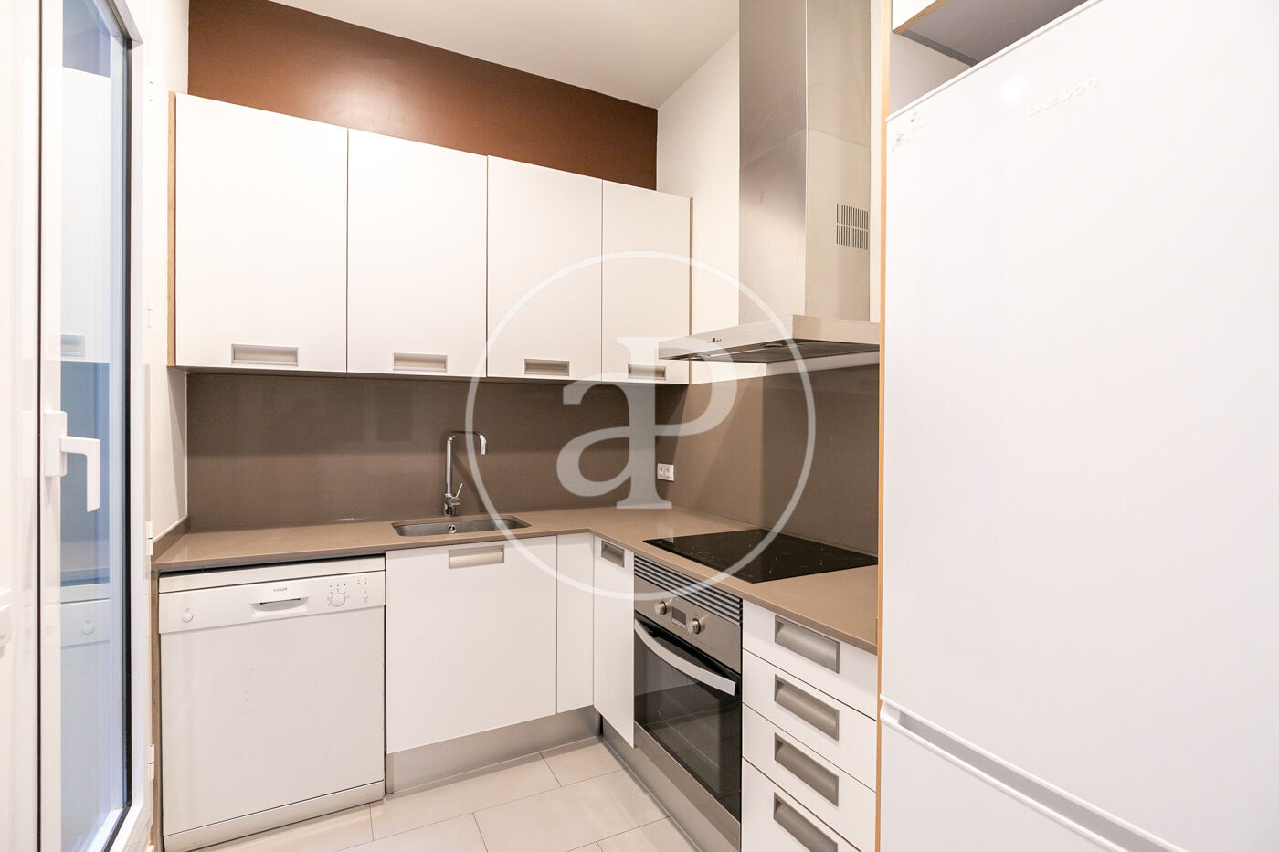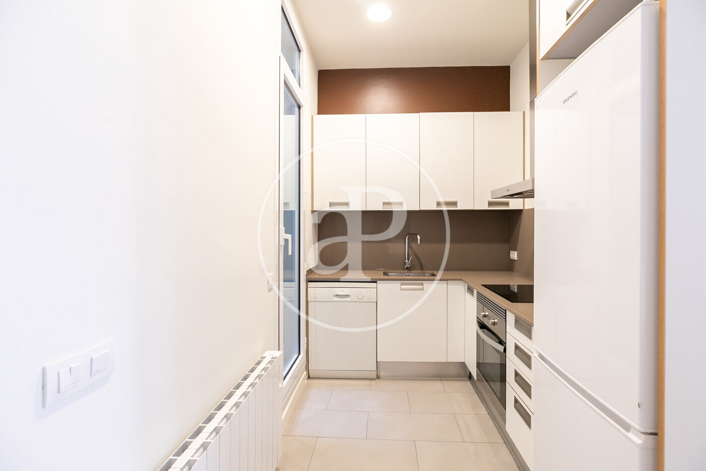 Entrando a la vivienda encontramos una bonita cocina abierta al salón con equipada con electrodomésticos de primeras marcas, en el salón hay 2 ventanales con orientacion oeste a calle Gran de Gracia con agradable luz de tardes y zona de estudio.