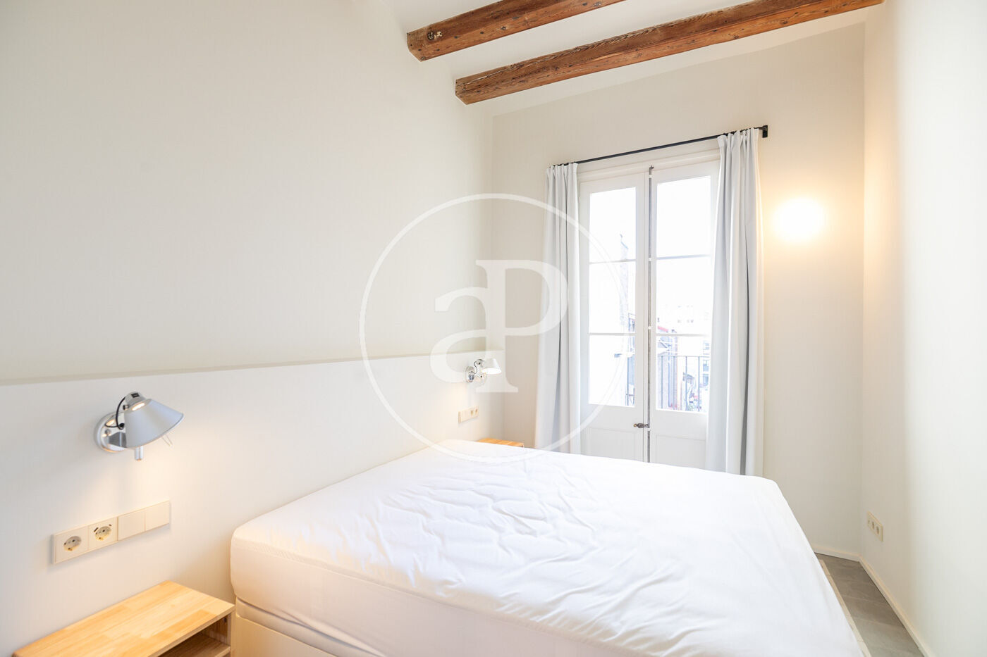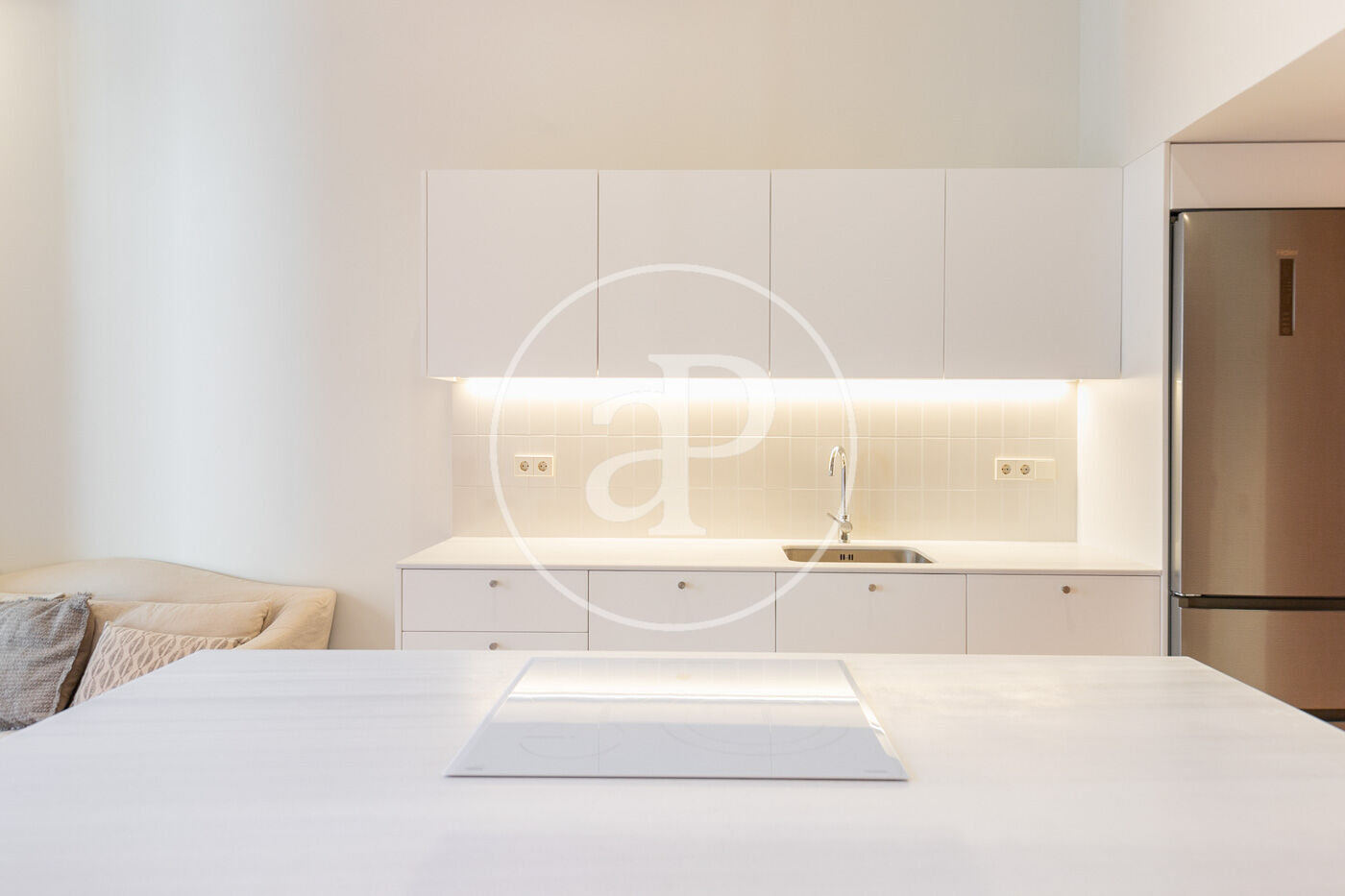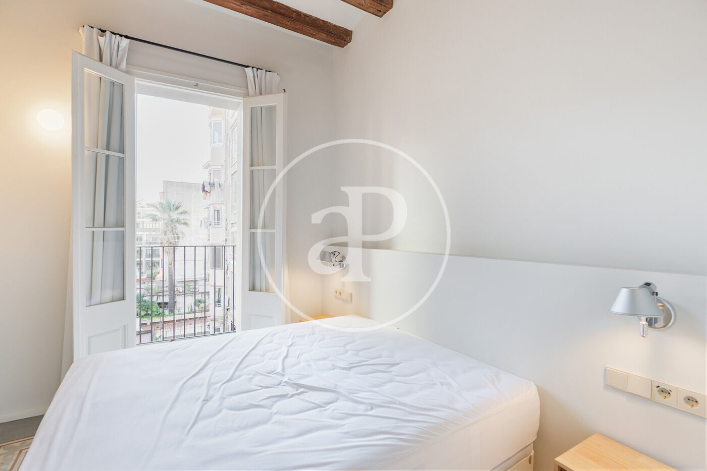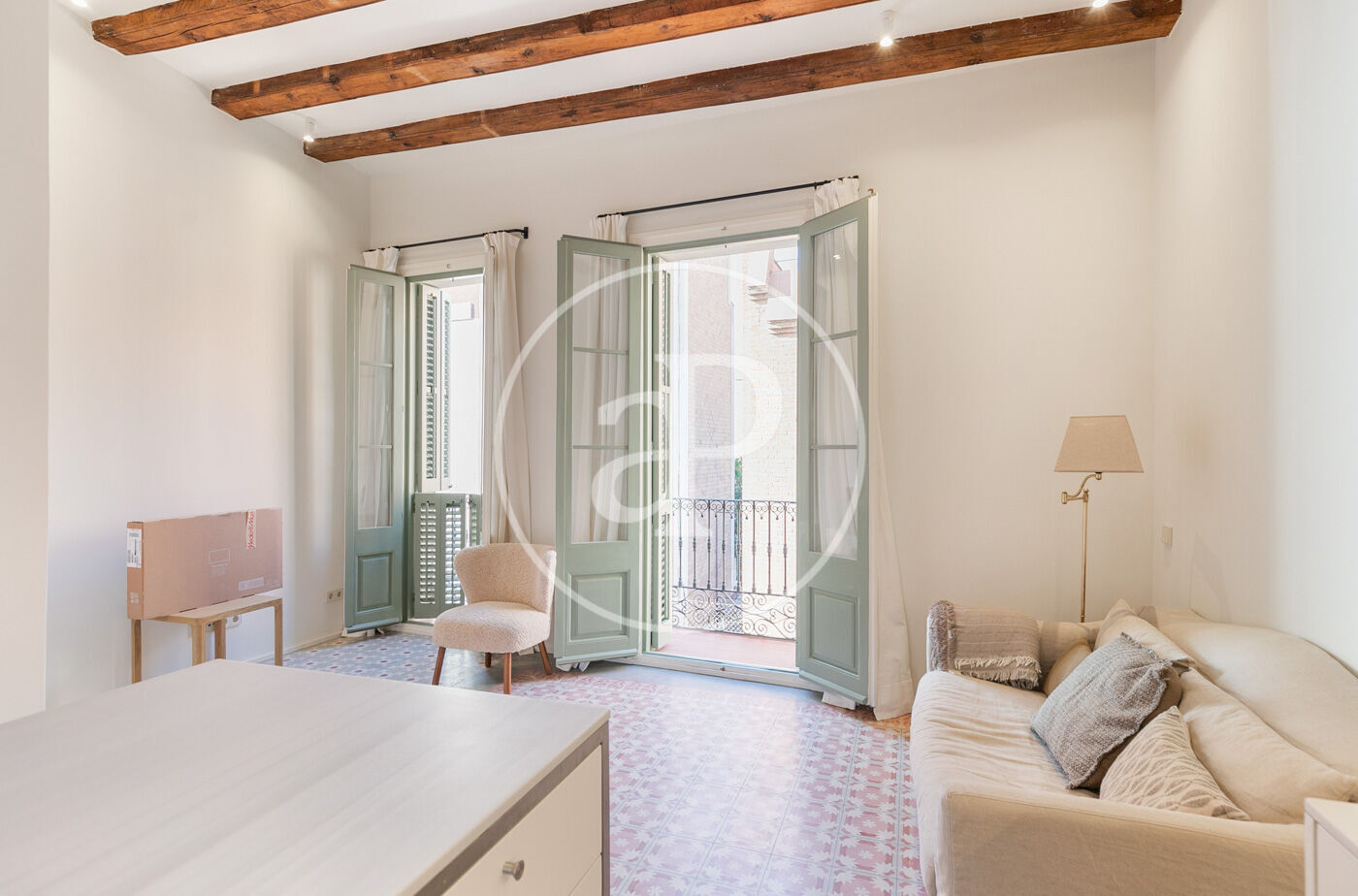 Se trata de un bonito piso recién reformado a estrenar, conservando la belleza de los elementos arquitectónicos de una finca del año 1870 rehabilitada, el piso se ubica en una cuarta planta real sin ascensor, en el que se han conservado los suelos hidráulicos y las vigas de madera de los techos.