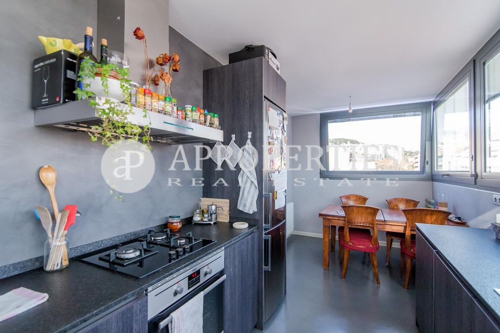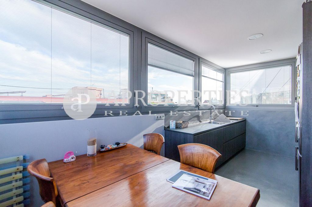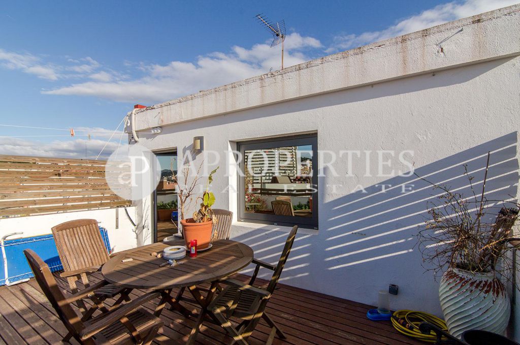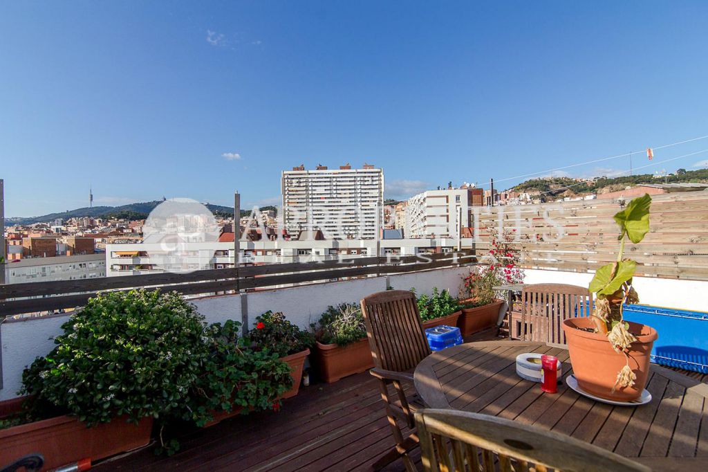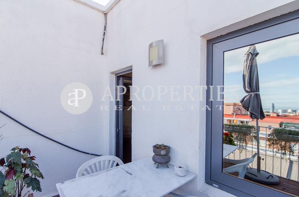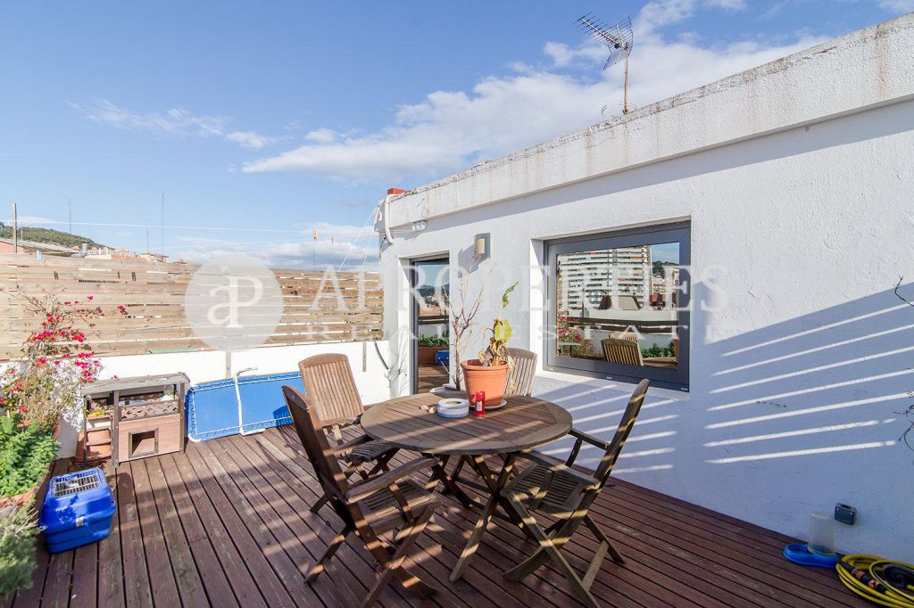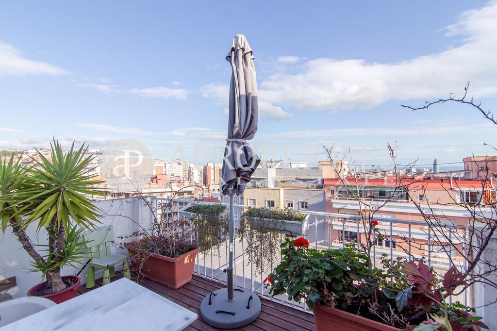 Sorprendente ático dúplex sin muebles en Gracia cerca de la Plaza Joanic en una finca con ascensor e increíbles vistas al mar y a Collserola. El piso está muy bien comunicado con diferentes transportes públicos y tiene una inmejorable disposición de servicios (mercado, comercios, colegios, parque público, etc). La vivienda de 90m2, tiene dos amplias terrazas con diferente orientación. En la primera planta el pavimento es de micro-cemento. Encontramos un luminoso salón-comedor, una cómoda cocina con maravillosas vistas, completamente equipada y una zona de aguas con trastero. En la planta superior, existe un práctico espacio de trabajo y dos habitaciones. Una doble con acceso directo a una terraza y una individual. En la misma planta también encontramos dos modernos baños completos. Una vivienda especial, bien ubicada y con materiales de alta calidad que convierten a este dúplex en un lugar cálido y singular.