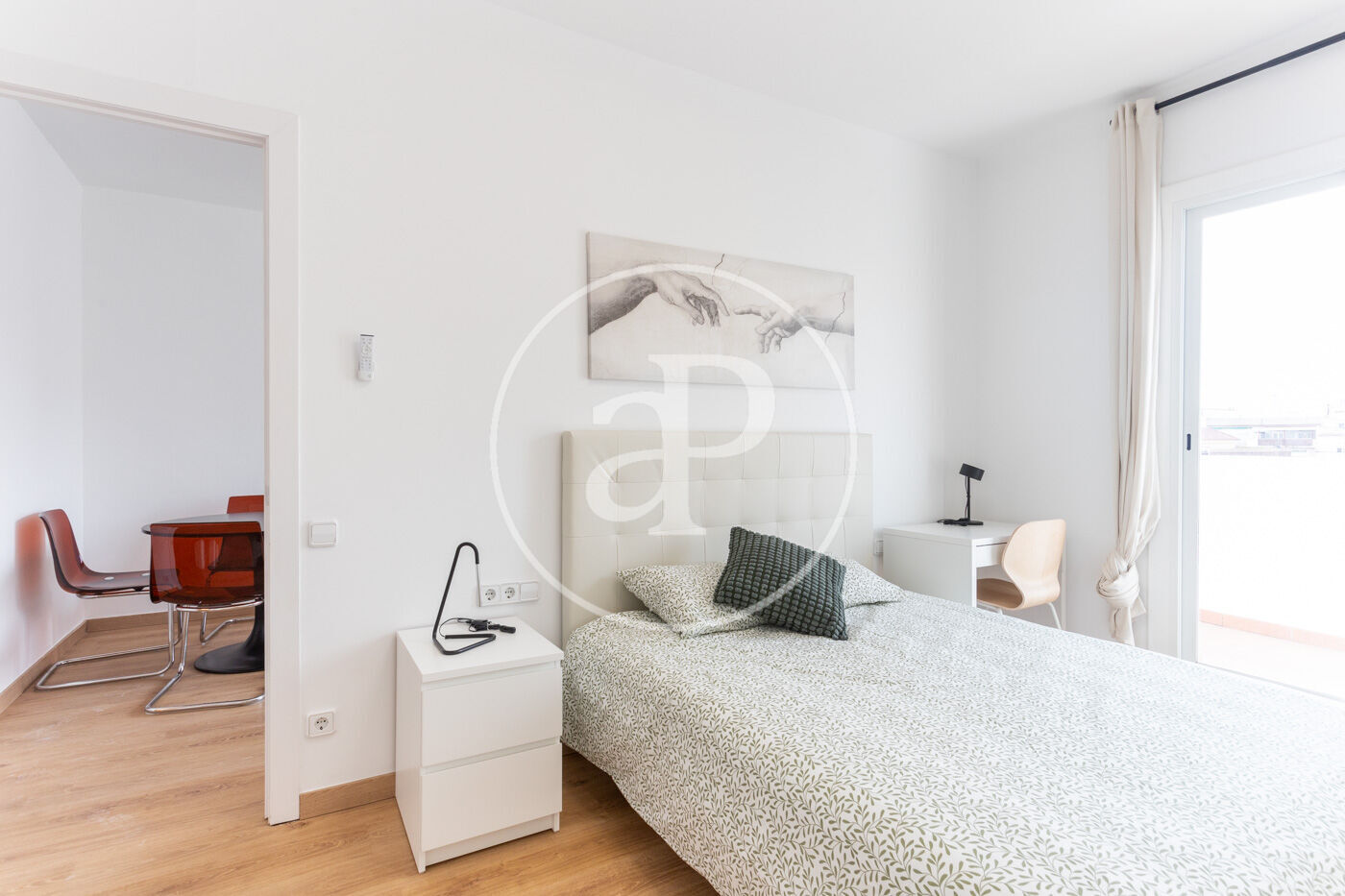 En la zona de noche, dispone de 2 habitaciones, un amplia doble con mucha luz, y una individual interior. Dispone de un único baño con plato de ducha.