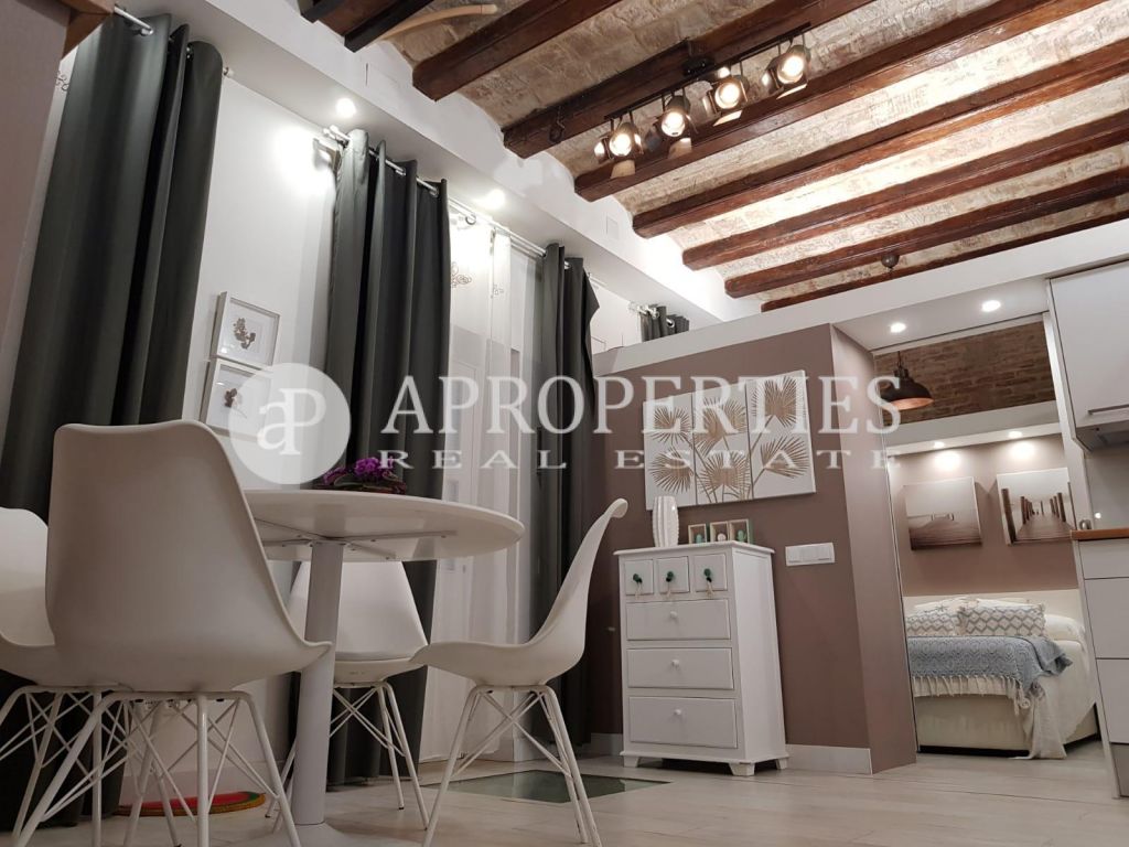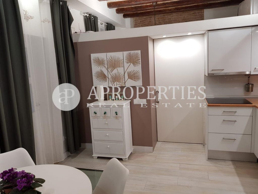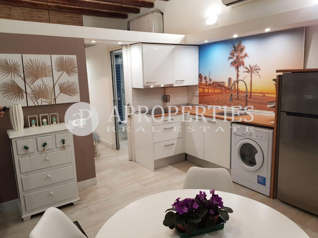 En el barrio de la Barceloneta, a pocos pasos del mar, y muy bien comunicado con todos los medios de transporte público, nos encontramos en una finca rehabilitada, este piso reformado y amueblado con mucho gusto, de aproximadamente 50m². La vivienda consta de un salón-comedor con una cocina abierta equipada, y una habitación doble con baño. Dispone de aire acondicionado. La finca no tiene ascensor.