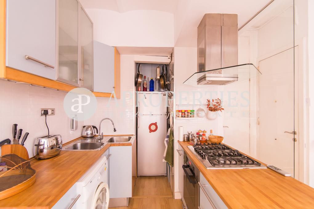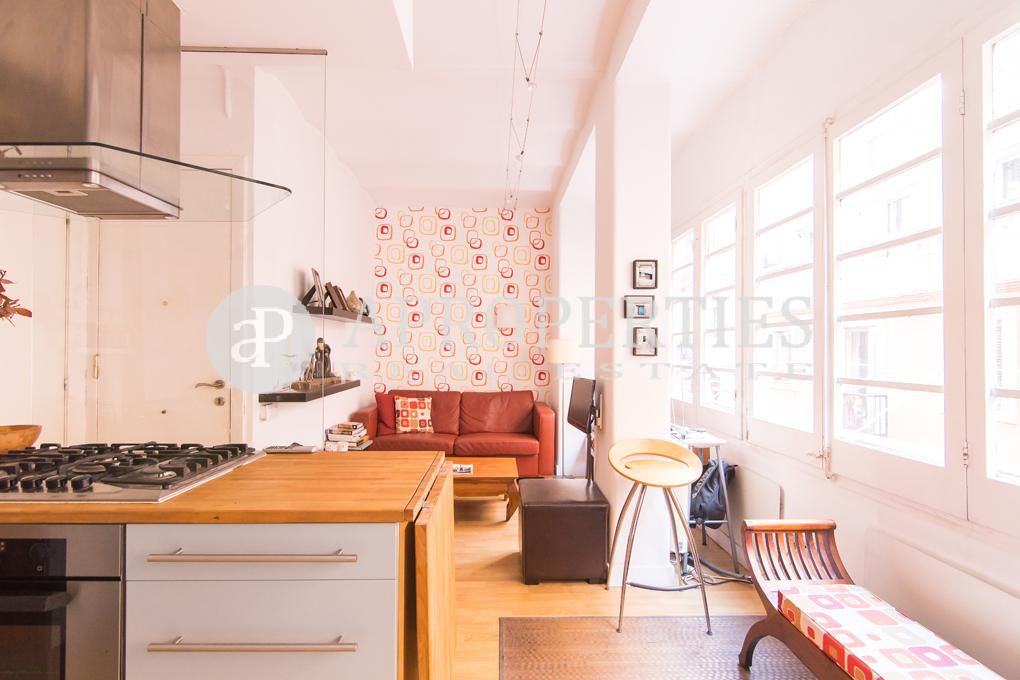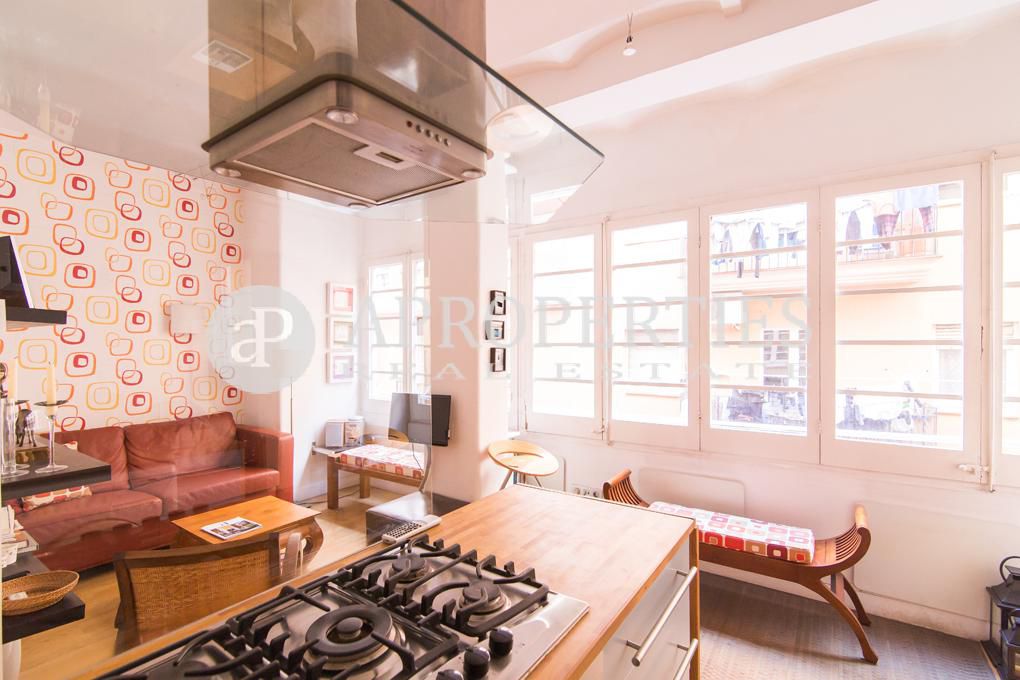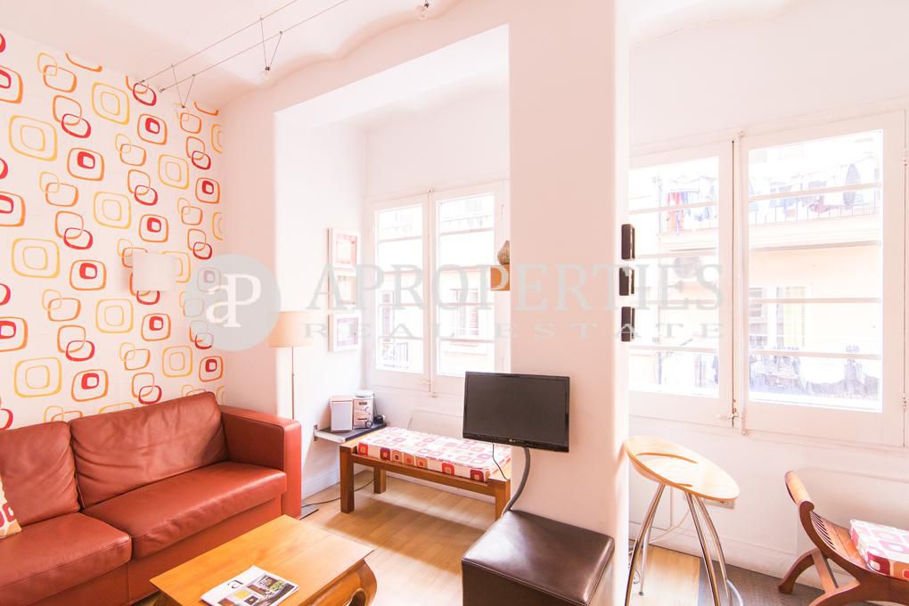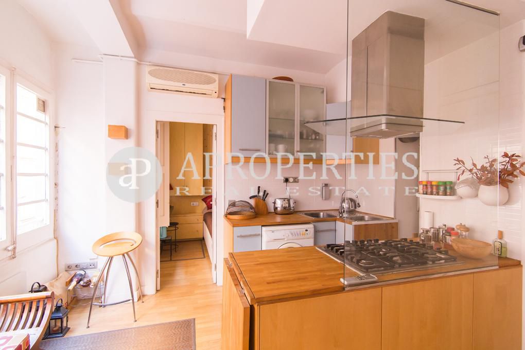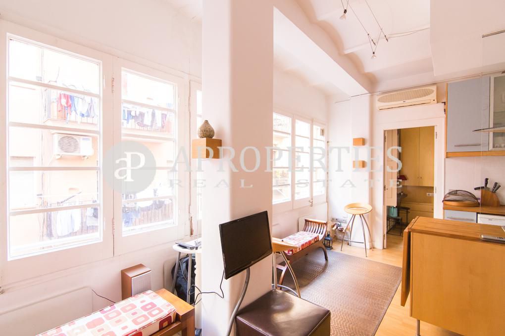Bonito pied-à-terre, listo para entrar a vivir, situado en el segundo piso de un edificio tradicional con fachada recientemente reformada. Está ubicado en la zona alta de la Barceloneta, a poca distancia de la estación de metro y de autobuses, restaurantes tradicionales y bares, cerca de tiendas y, por supuesto, la playa. El piso ha sido modernizado de forma funcional y práctica y está totalmente equipado. Se distribuye en un amplio y luminoso salón con ventanas a lo largo de la pared principal con vistas a la calle, una cocina integrada totalmente equipada y un aseo. La habitación principal, en-suite con ducha, tiene acceso a un pequeño balcón que da a la calle. La propiedad tiene calefacción con paneles eléctricos, suelos de parquet, gas para la cocina, una lavadora, y está disponible con muebles y accesorios.