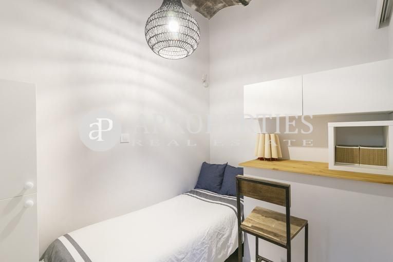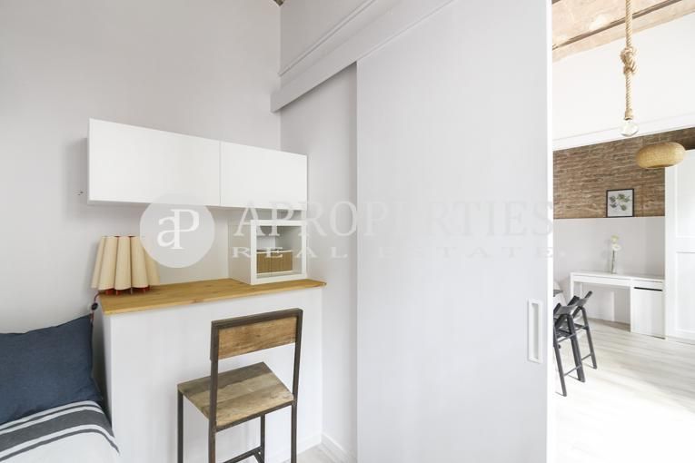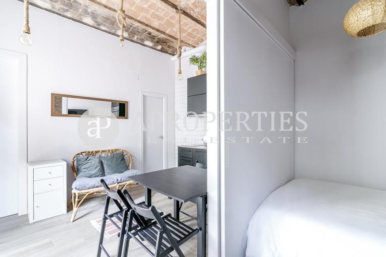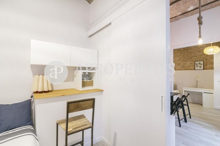 Excelente propiedad de 34m² utiles ubicada en una bonita calle arbolada con amplia zona peatonal, a unos pasos de la playa y del parque de la Barceloneta. El inmueble se reformó recientemente con mucho estilo y muy buenos acabados. Ubicado en la planta baja de una bonita finca regia, se distribuye en un salón-comedor con cocina americana, una habitación doble, una habitación individual y un baño. Consta de aire acondicionado con bomba de calor, calefacción eléctrica, suelo de parqué y techos de bóveda. El precio incluye todo el mobiliario. Ideal inversión.
