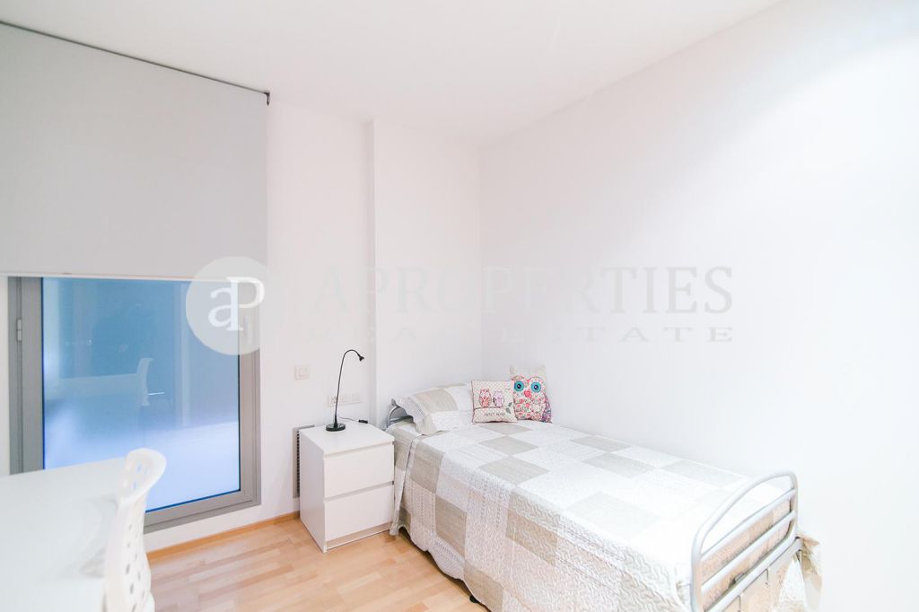 Maravilloso piso en alquiler cerca de la Sagrada Familia. El piso consta de un salón-comedor, una cocina completamente equipada con electrodomésticos de calidad así como todos los utensilios, cubertería, vajillas, etc., listo para entrar a vivir, un dormitorio doble exterior muy luminoso, un dormitorio individual interior y un baño completo con bañera para compartir. El piso se entrega completamente amueblado y con todo lo necesario para entrar a vivir desde el primer día, dispone de aire acondicionado y calefacción por aire mediante conductos. Todos los dormitorios disponen de armarios empotrados. La finca cuenta con ascensor y existe la posibilidad de alquilar una plaza de parking en un finca localizada a cinco minutos a pie por 100€ adicionales.