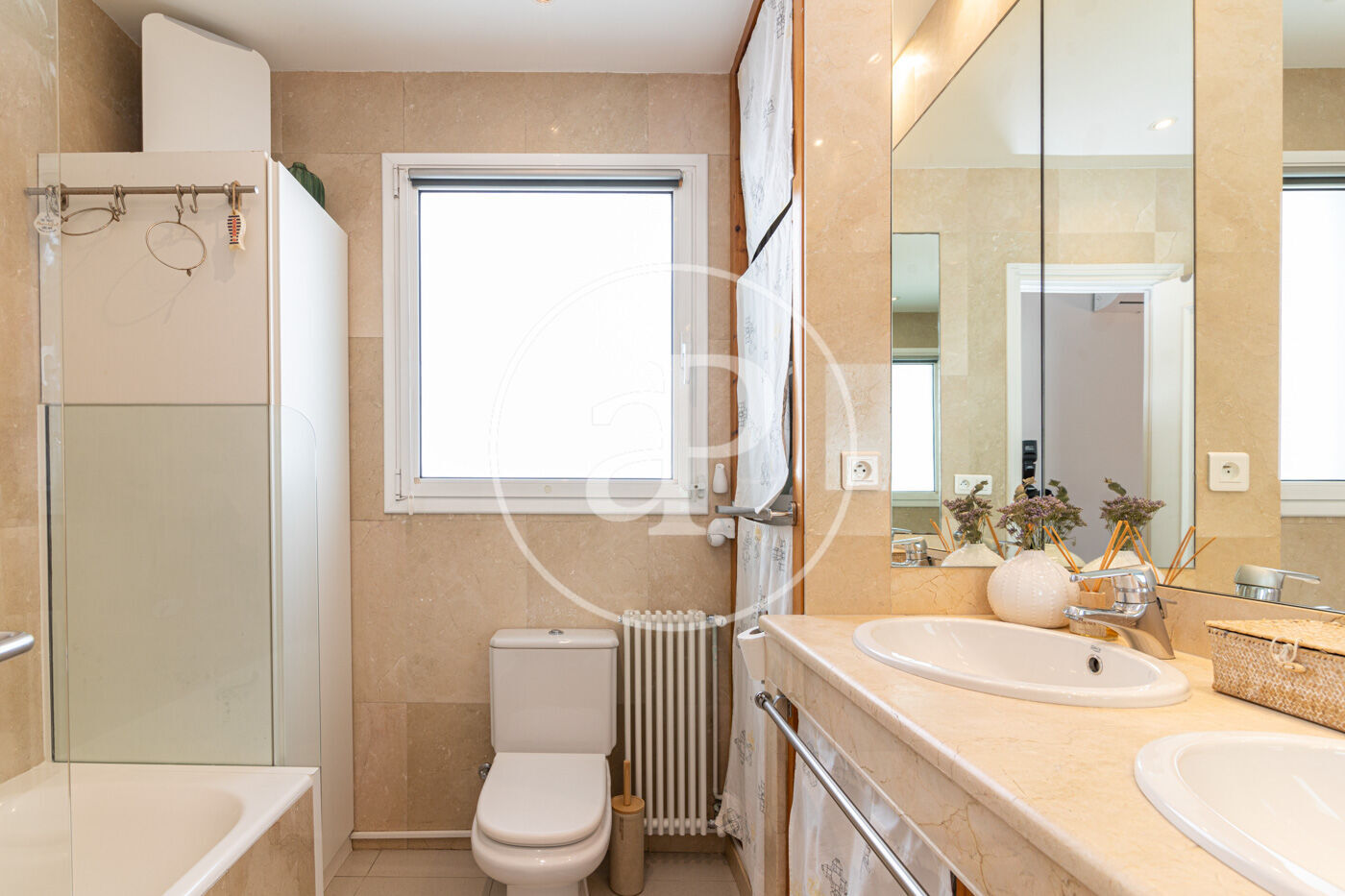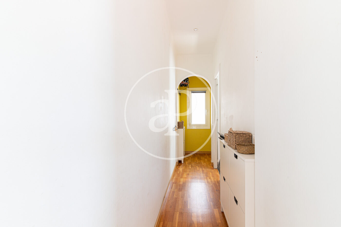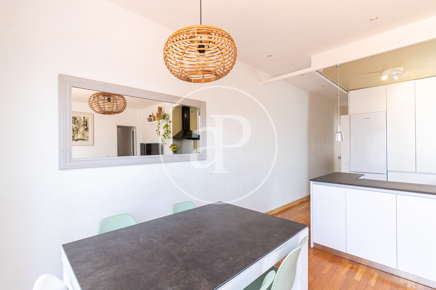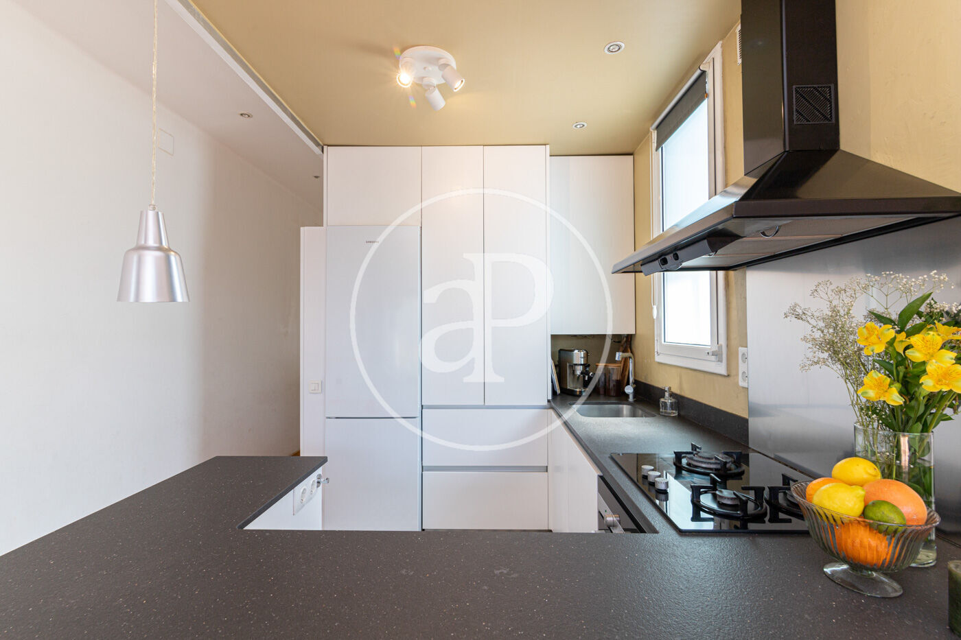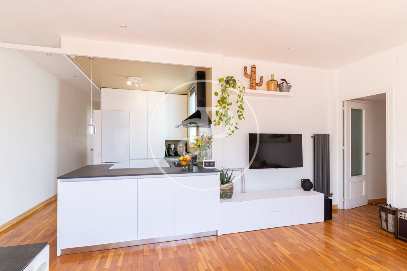 Toda la propiedad es muy luminosa y tranquila. La zona de día es acogedora, con un amplio salón-comedor con cocina abierta equipada. El salón-comedor es espacioso y tiene acceso directo a la terraza, orientada al sureste. Es el lugar perfecto para relajarse y disfrutar del agradable clima de Barcelona.