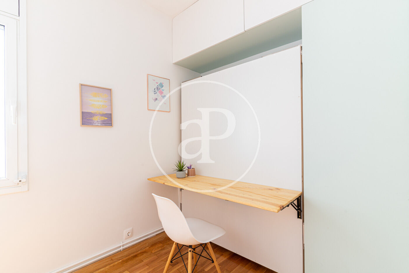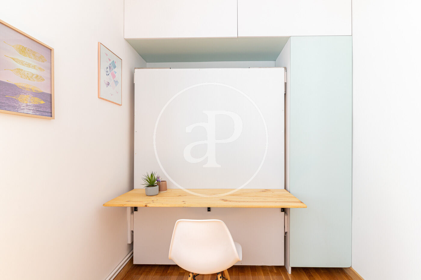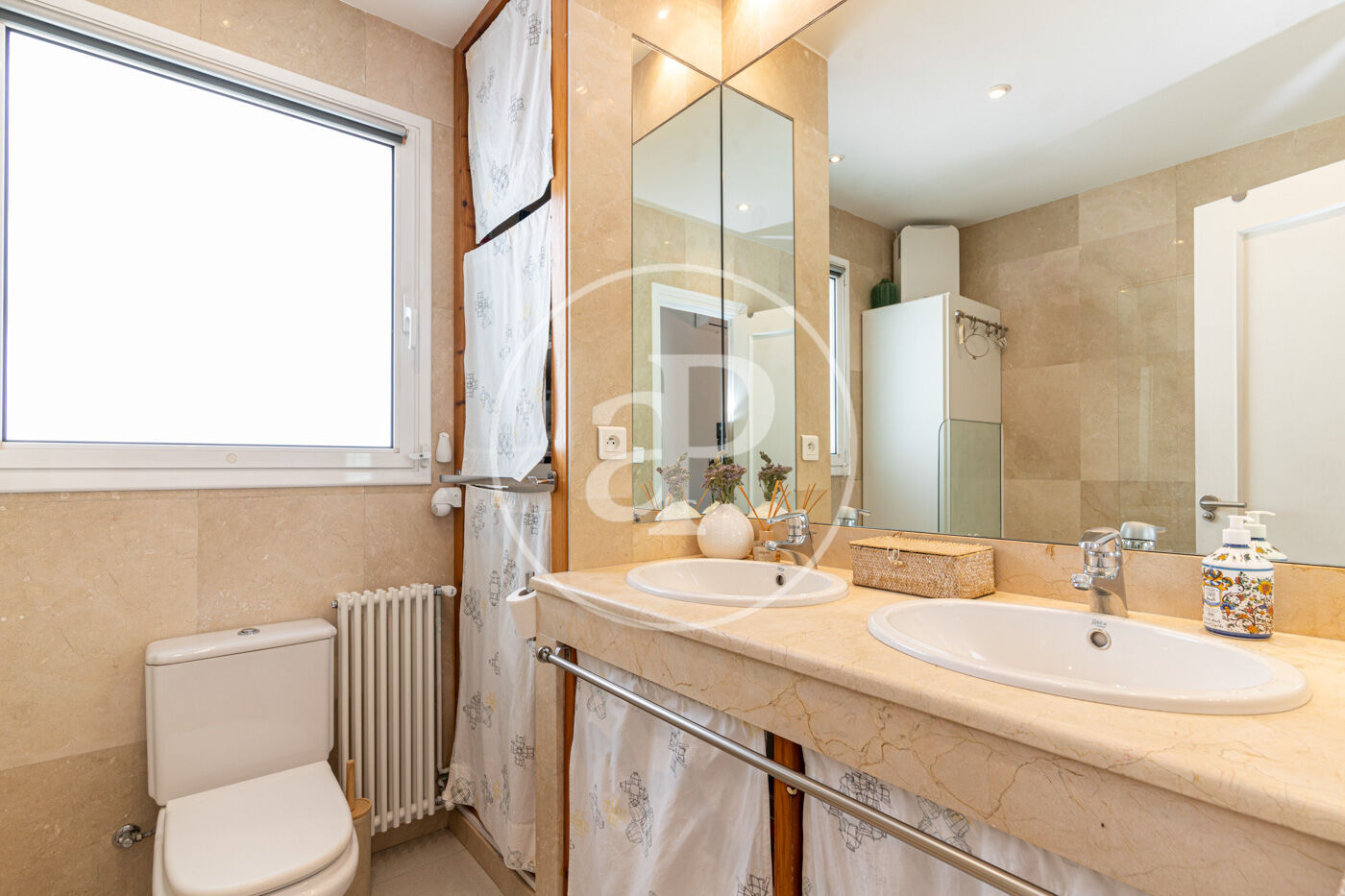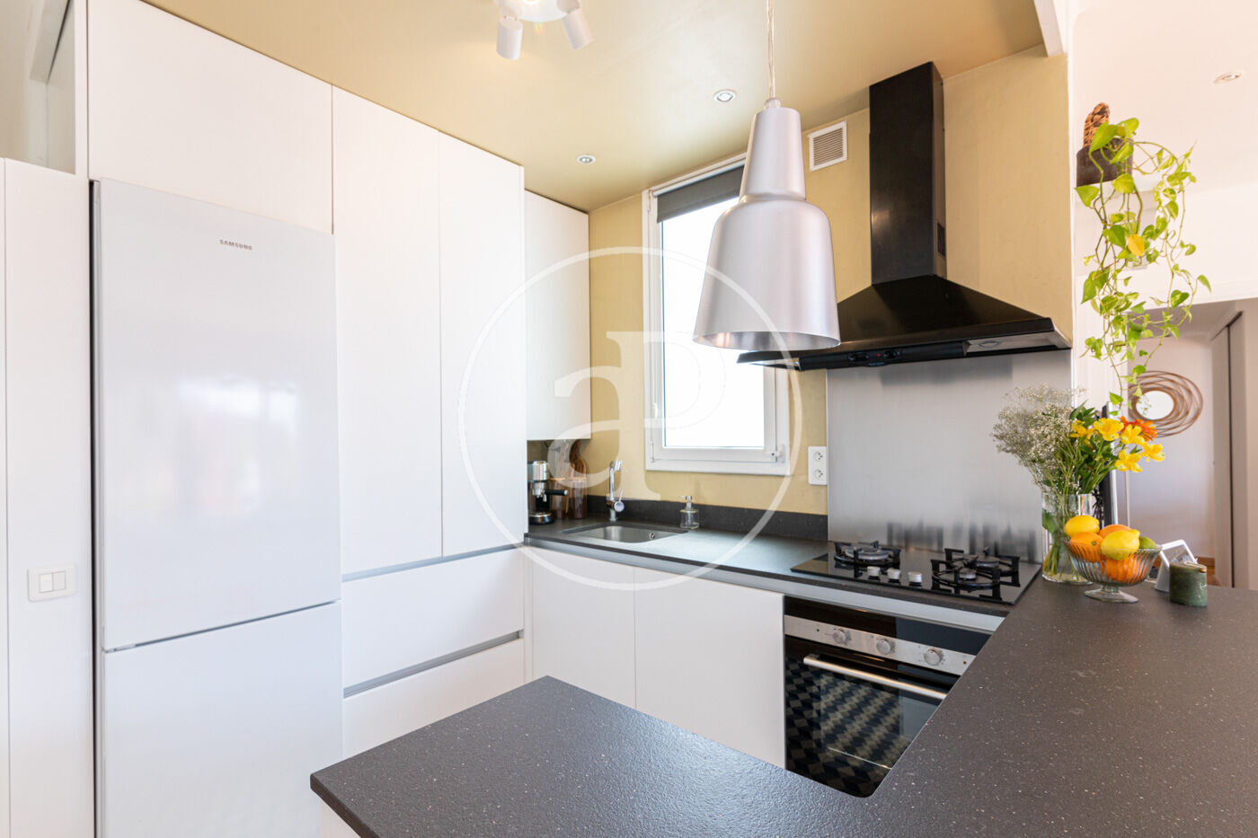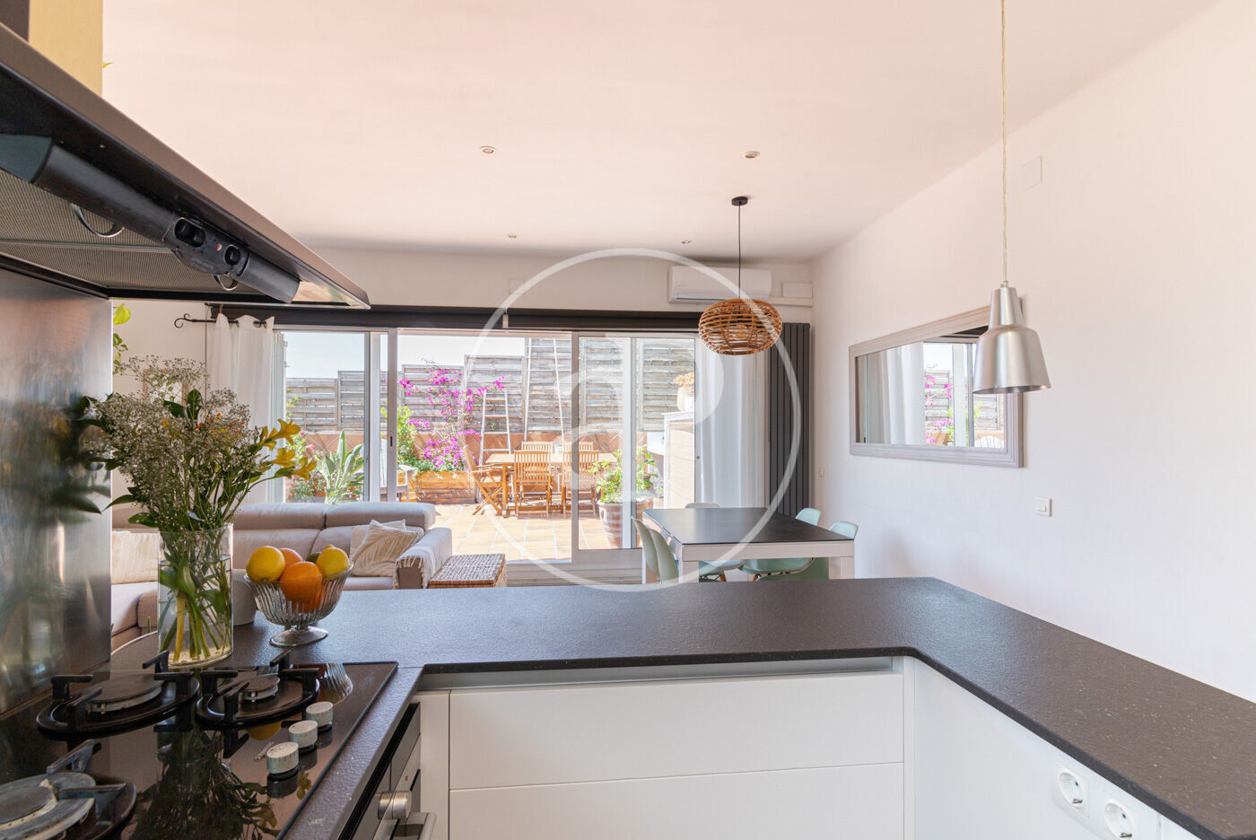 Toda la propiedad es muy luminosa y tranquila. La zona de día es acogedora, con un amplio salón-comedor con cocina abierta equipada. El salón-comedor es espacioso y tiene acceso directo a la terraza, orientada al sureste. Es el lugar perfecto para relajarse y disfrutar del agradable clima de Barcelona.
