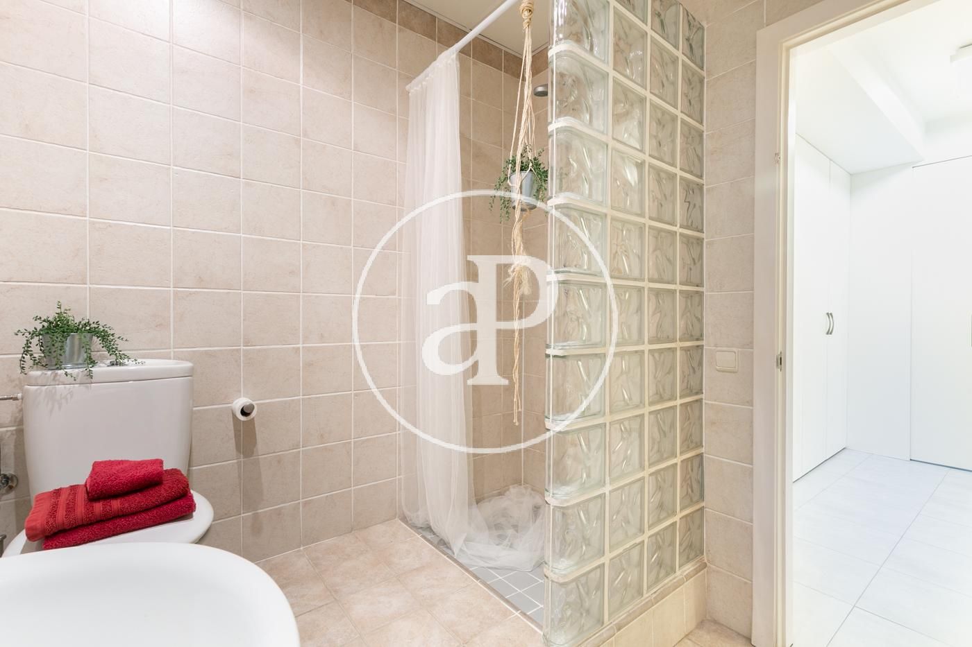 En la zona de noche, encontramos un dormitorio con vestidor y amplio baño con salida a un pequeño patio. Hay una separación entre zona de día y zona de noche mediante puerta corredera.