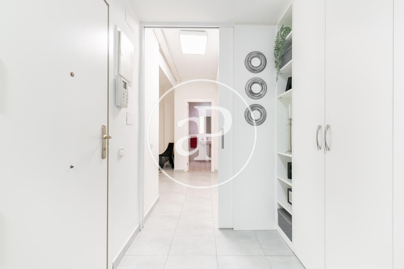 En El Born, una de las zonas más emblemáticas de Barcelona, a pocos metros de la Via Laietana y del Palau de la Música encontramos esta magnífica vivienda reformada a estrenar de 98m2 con gran terraza de 40m2 en un edificio en buen estado sin ascensor. El piso ha sido totalmente reformado empleando acabados y materiales de primera calidad y mucha atención a los detalles. Cuenta con diseño moderno y funcional en perfecta armonía con los elementos originales de la época, cómo sus techos altos con volta catalana y vigas de maderas y sus paredes de ladrillo visto. Destaca por su gran terraza a la cual se puede acceder tanto de la zona de día como de la habitación principal y que inunda el piso de luz natural creando un espacio muy luminoso y acogedor. Esta terraza con zona de comedor y zona chill-out y es perfecta para disfrutar del tiempo al aire libre, ya sea para cenar, relajarse o aprovechar de momentos en buena compañía. La vivienda consta de un hall de entrada que da paso a una primera habitación doble con armarios empotrados y a un baño completo y un aseo. A continuación, encontramos la zona de día con amplio salón comedor y cocina abierta totalmente equipada y gran ventanal con salida a la terraza. El piso se completa con la habitación principal que tiene armarios empotrados y baño en suite. Para mayor confort el piso cuenta con suelos de parquet a espiga de roble natural y dispone de calefacción y aire acondicionado por conductos y ventanas con doble acristalamiento y altos estándares de aislamiento térmico. El piso está ubicado en la primera planta real de una finca en buen estado sin ascensor. Una gran oportunidad de adquirir una preciosa vivienda en una de las zonas más demandadas de la ciudad.