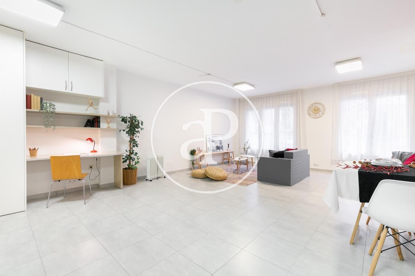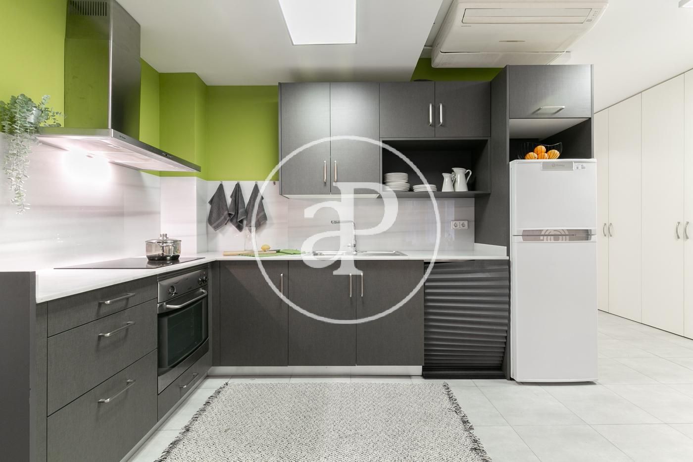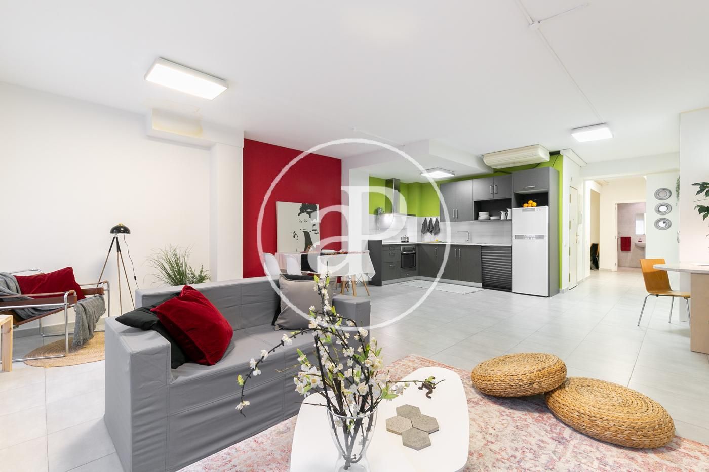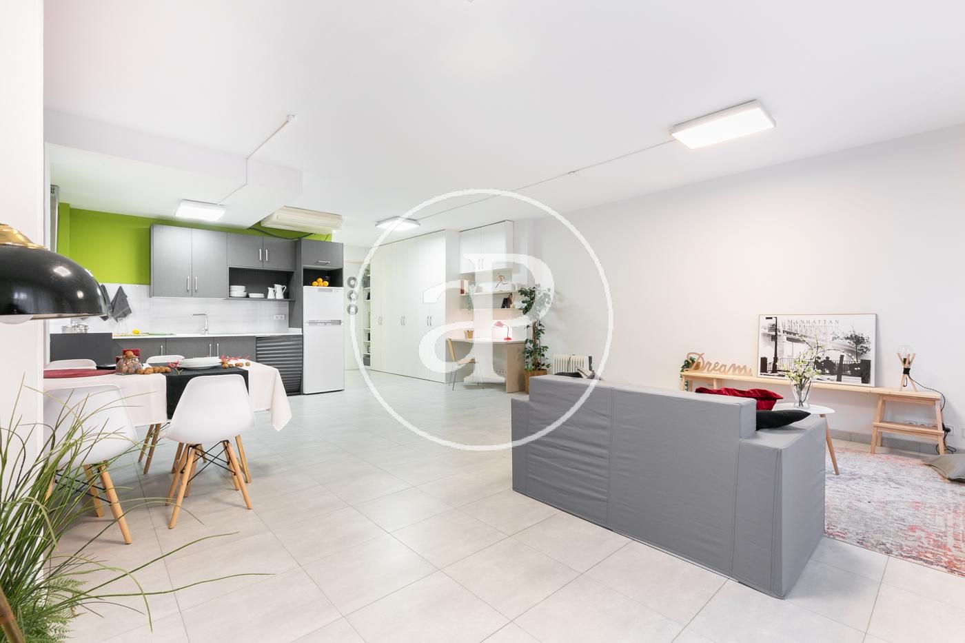 Amplio loft de 80m2 con espacios abiertos y completamente reformado. Consta de un amplio salón con vistas a la calle, con la cocina office abierta y equipada con encimera de inducción, horno, campana extractora, termo, lavadora y radiadores de calefacción.