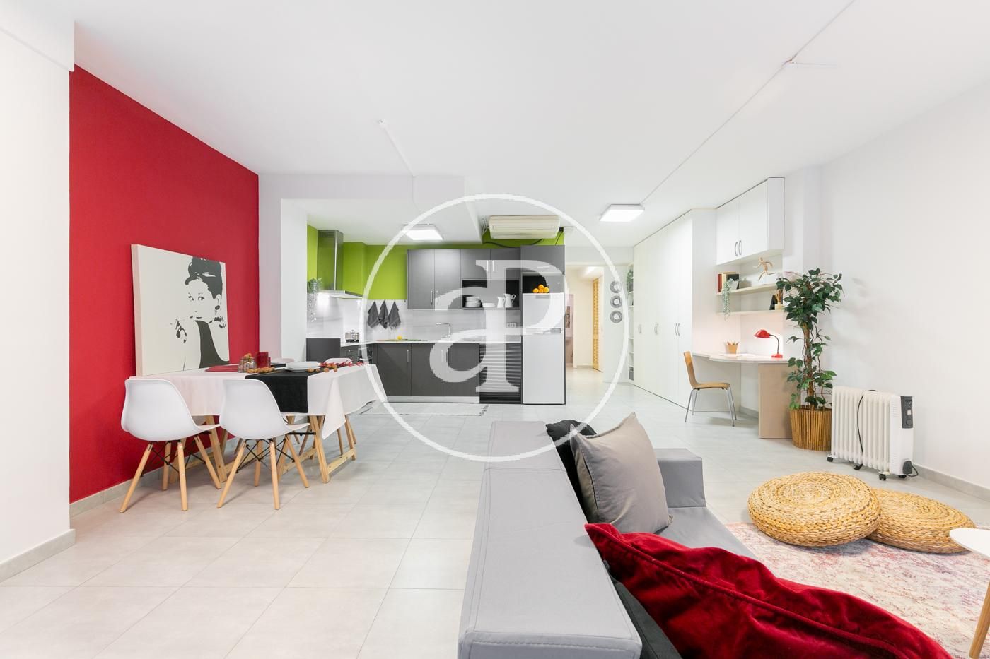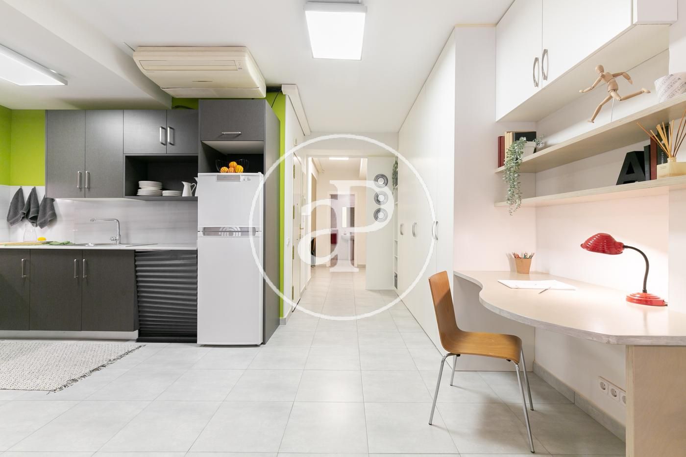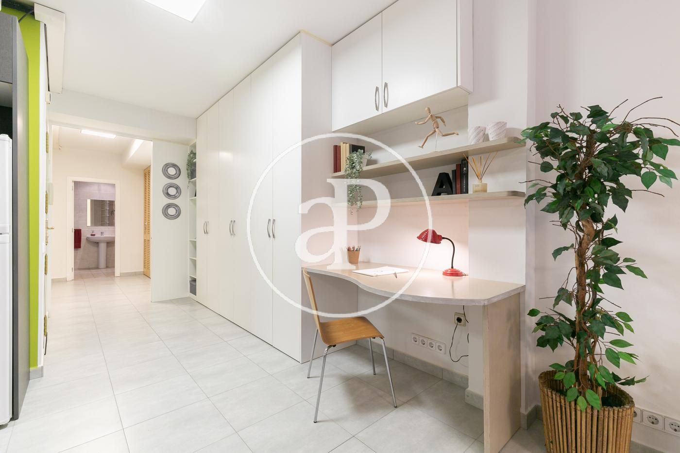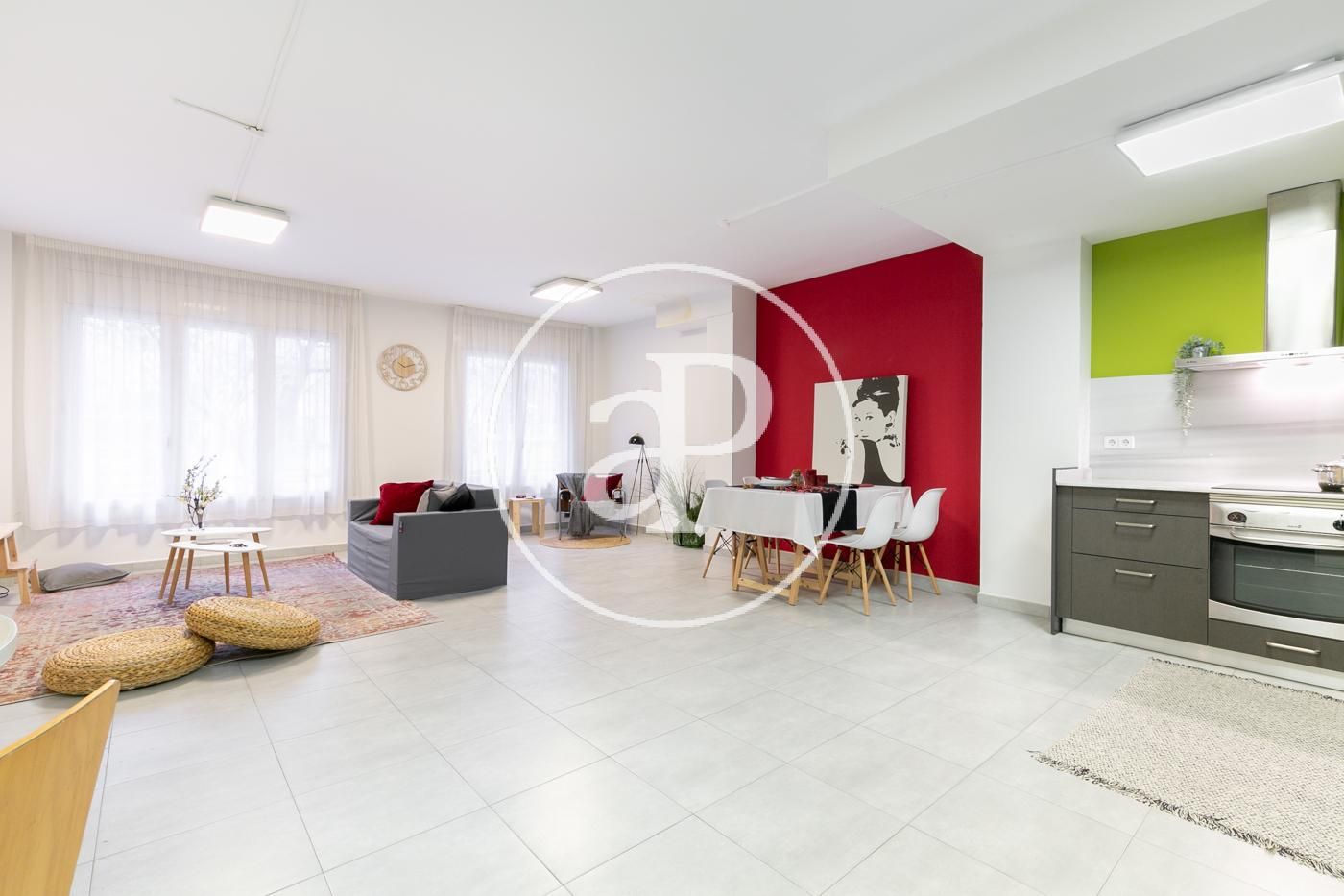 Amplio loft de 80m2 con espacios abiertos y completamente reformado. Consta de un amplio salón con vistas a la calle, con la cocina office abierta y equipada con encimera de inducción, horno, campana extractora, termo, lavadora y radiadores de calefacción.