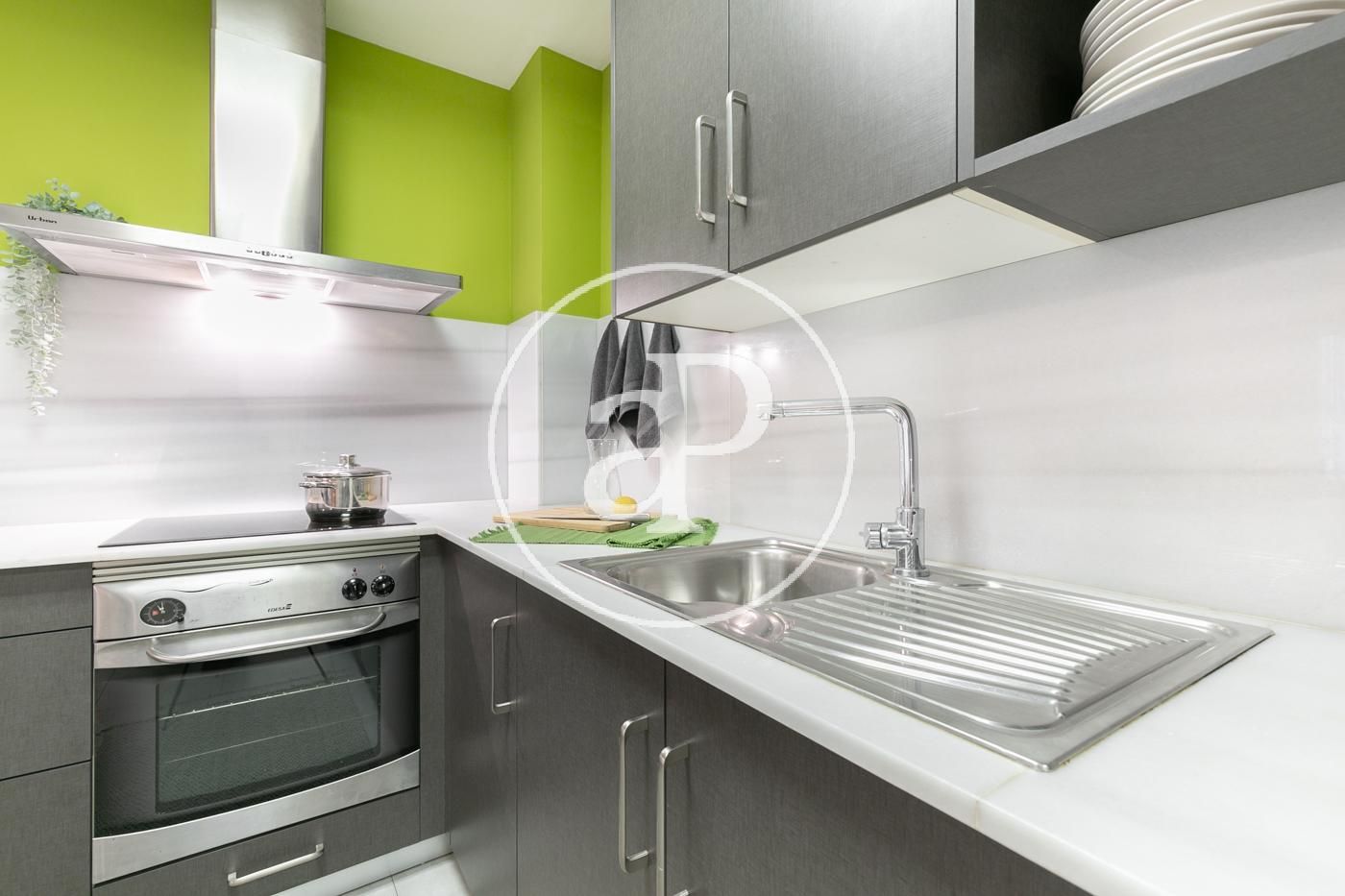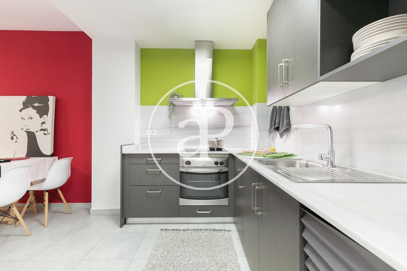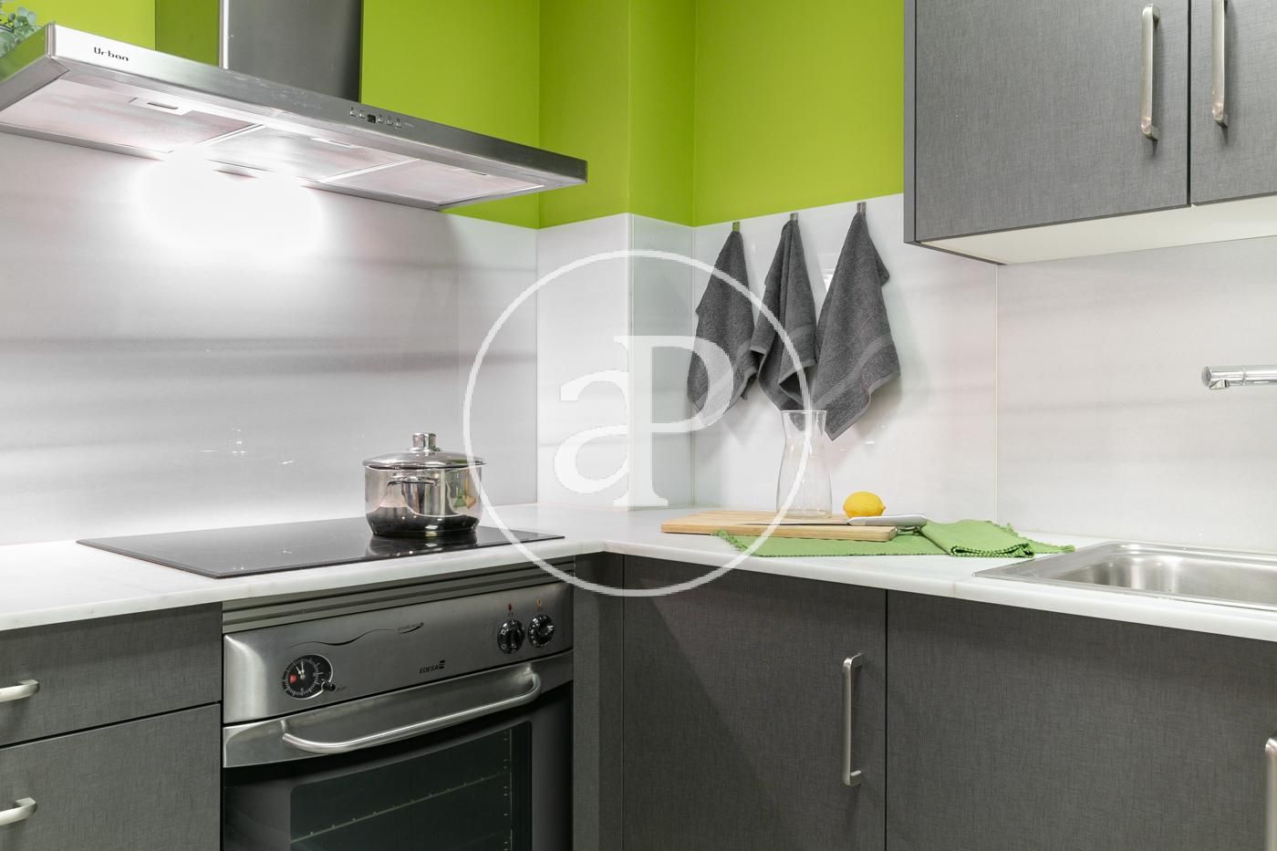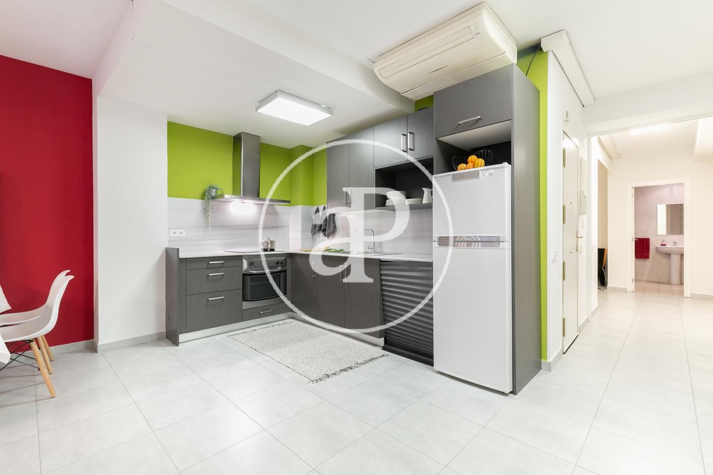 Amplio loft de 80m2 con espacios abiertos y completamente reformado. Consta de un amplio salón con vistas a la calle, con la cocina office abierta y equipada con encimera de inducción, horno, campana extractora, termo, lavadora y radiadores de calefacción.