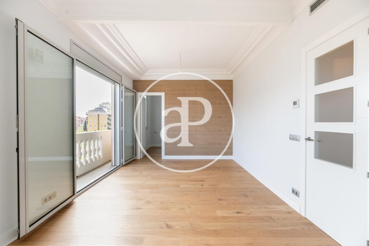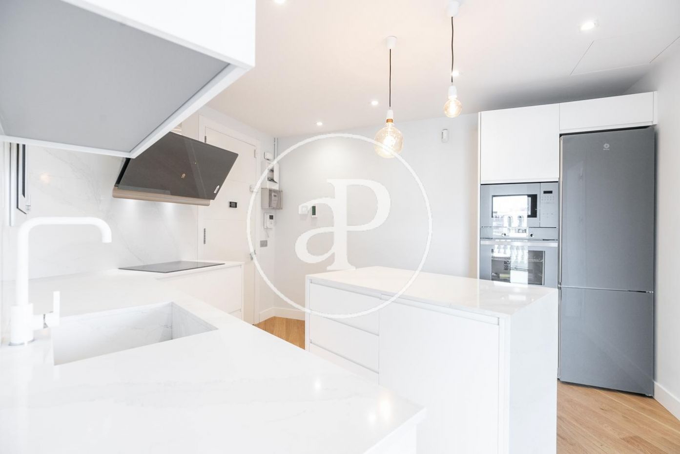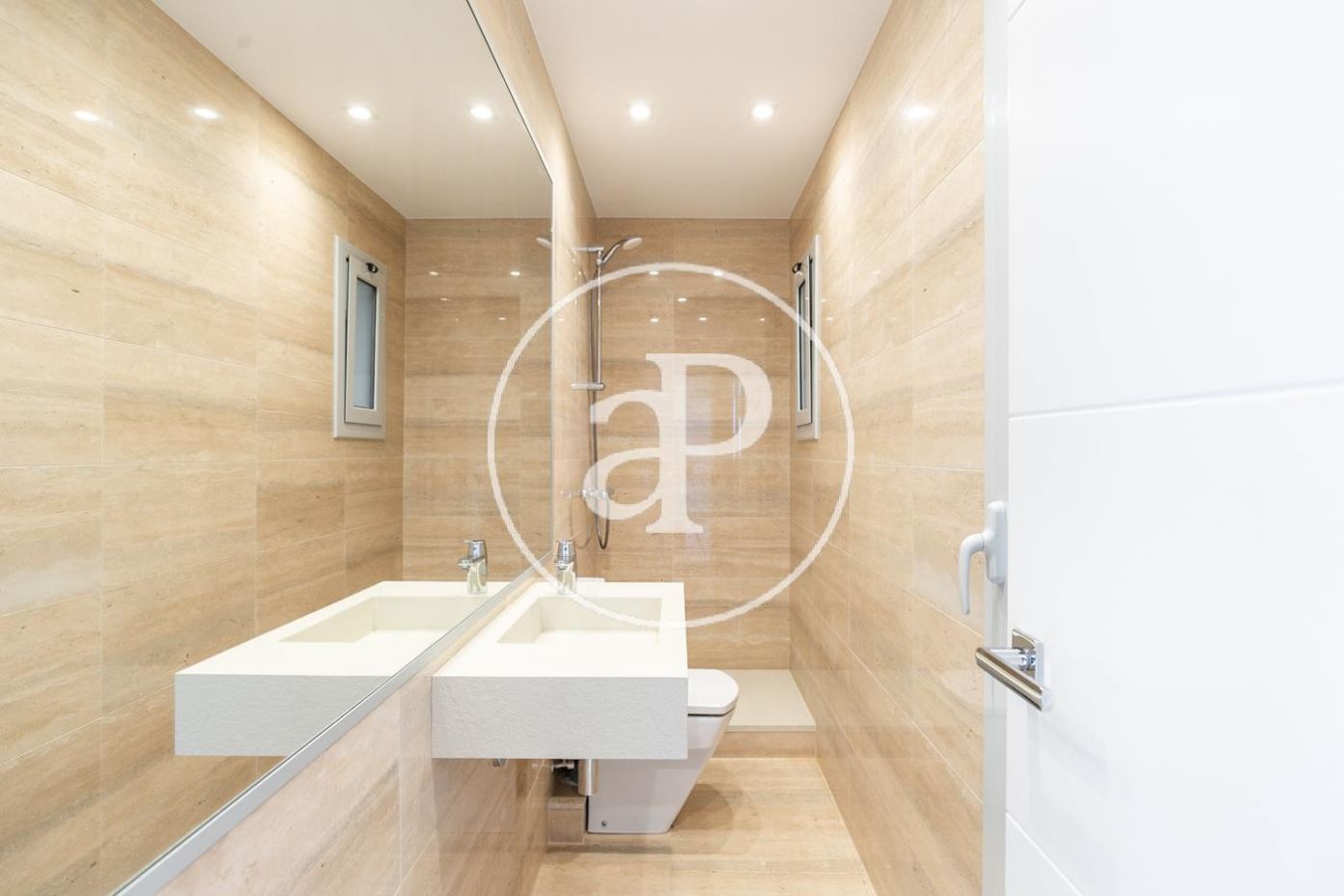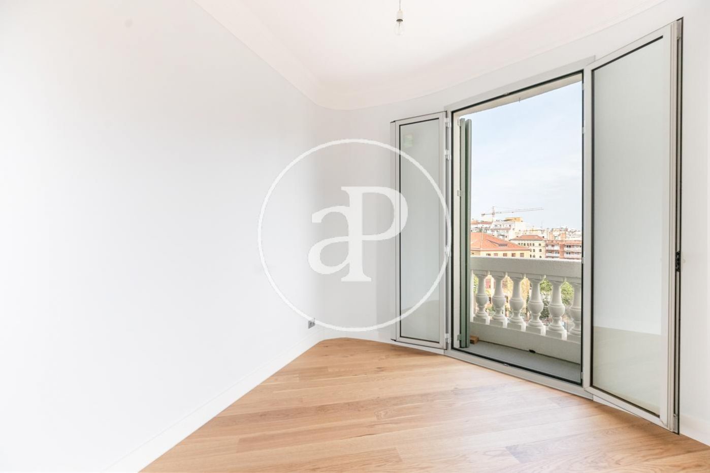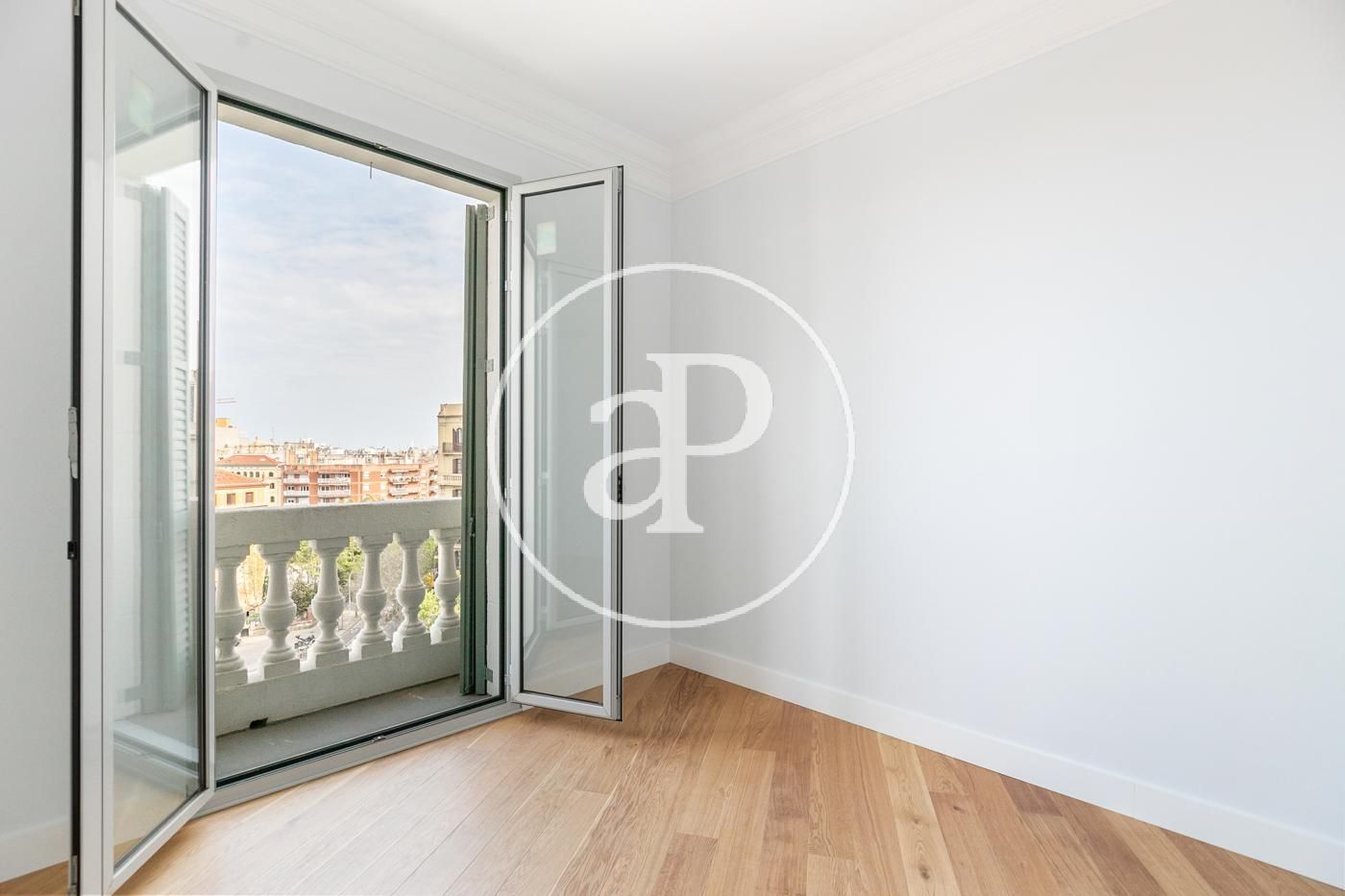Muy luminoso, con techos altos, el apartamento de unos 110 m2 ha sido integralmente reformado hace cinco años. Al entrar encontramos la zona de día: un amplio salón comedor con cocina abierta y con grandes ventanales que dan acceso a un primer balcón con vistas a la famosa calle peatonal Verdi. En la zona de noche encontramos tres habitaciones, una zona estudio y los dos baños. Las dos habitaciones individuales están repartidas a lo largo del pasillo que lleva a la última habitación con dressing propio. Frente a esta última habitación encontramos el espacio estudio que podría convertirse en otra habitación fácilmente. De los dos baños completos uno cuenta con bañera y el otro con plato de ducha. Todas las estancias son exteriores y la habitación matrimonial cuenta con otra salida a un balcón propio. En las reformas se pudo recuperar las voltas catalanas y muchas paredes de obra vista. Cuenta con electrodomésticos de última generación, la propiedad dispone de calefacción de gas por radiadores en las paredes y por los suelos, dispone también de aire acondicionado. En cuanto a los materiales utilizados para las reformas encontramos ventanas con vidrios 4/16/4 para disfrutar de un aislamiento total tanto al nivel de ruido que el nivel térmico. El suelo es de parque de pino natural. En los diferentes balcones caben sillas y mesa. La finca, en perfecto estado, no cuenta con ascensor, pero el apartamento está ubicado en una primera planta real. Enla a última planta del edificio encontramos un magnífico terrado comunitario con vistas a la ciudad y al mar.  La ubicación es inmejorable a pocos metros de la plaza de la revolución en la misma calle Verdi. Muy cerca se encuentran las estaciones de metro Fontana, Joanic y Paseo de gracia.