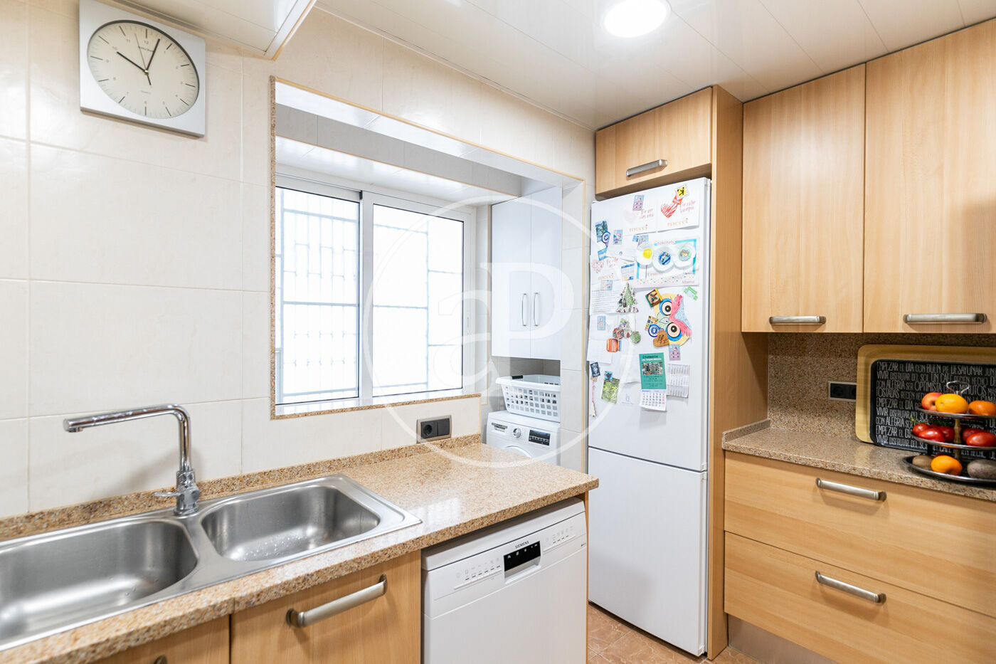 Actualmente la vivienda cuenta con cuatro dormitorios, uno de ellos doble en suite y exterior y tres individuales que comparten un baño. La cocina tipo office tiene una zona de aguas independiente.