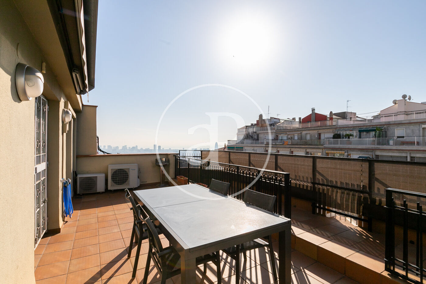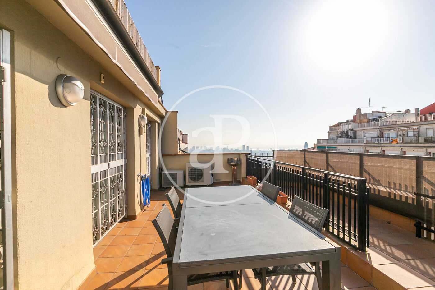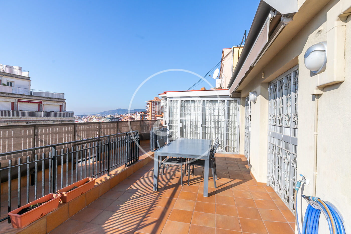 aProperties presenta en exclusiva este ático de 117 m², con orientación sur, combina luminosidad, amplitud y una ubicación privilegiada. Su amplio salón-comedor exterior tiene acceso a una impresionante terraza de 30.65m², desde la que se pueden disfrutar vistas espectaculares de la ciudad y del mar.