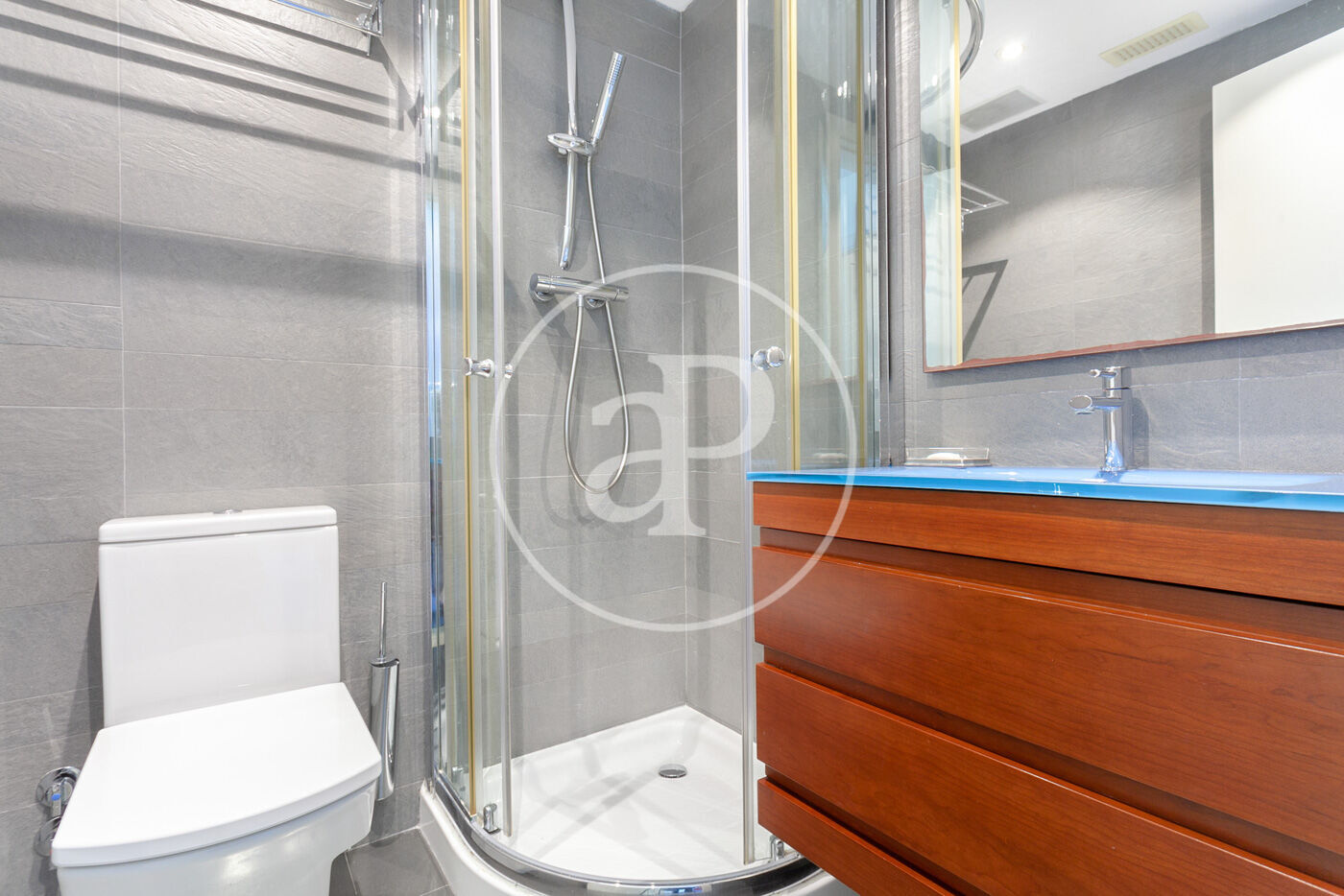 En la zona de noche, encontramos dos amplias habitaciones, cada una con su baño reformado en suite en la primera planta y; un espacio diáfano con acceso a solárium, que se puede aprovechar como despacho o habitación, y lo encontramos en la segunda planta.