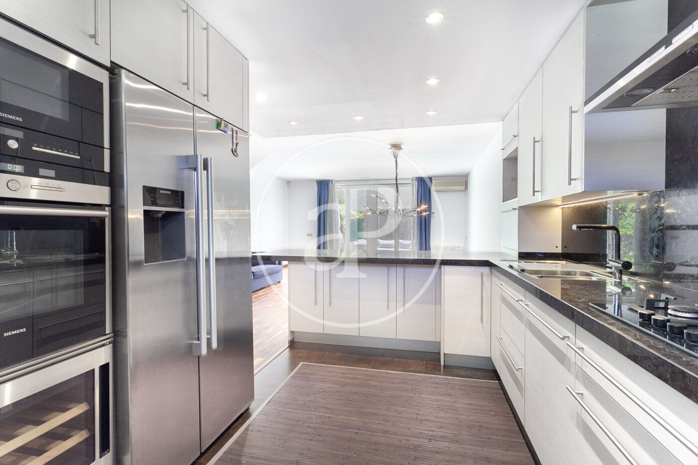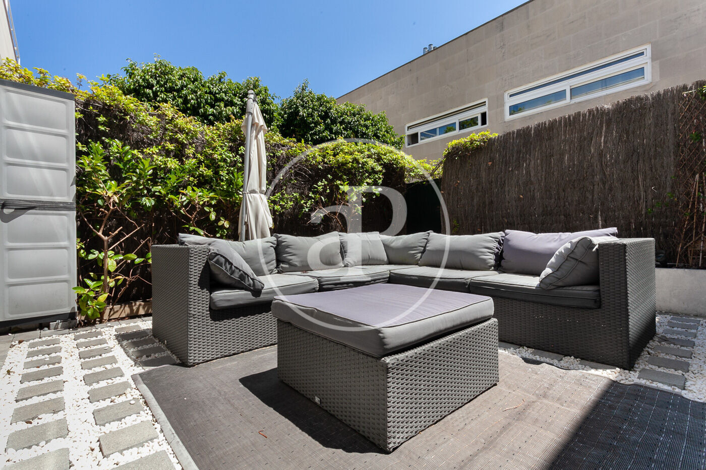 Se trata de una casa adosada de tres plantas en el corazón de la Villa Olímpica, la casa está ubicada en un complejo con zona comunitarios con jardines comunitarios.
