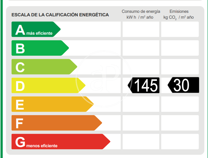 Más eficiente Menos eficie Calificación energética Consumo energía Kw h/m² año Emisiones Co/m² año 145.00 30.00