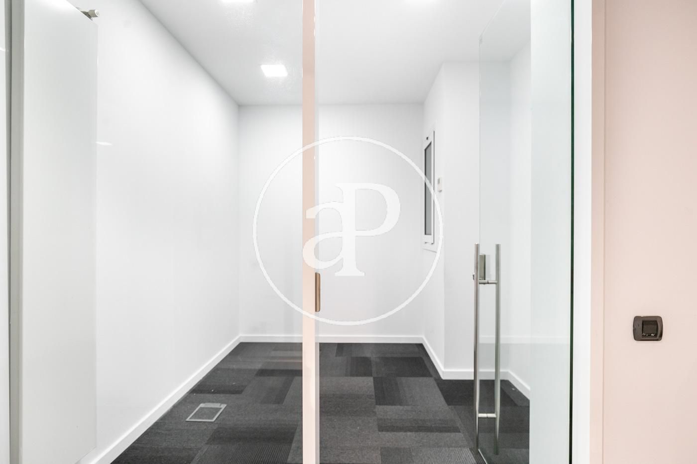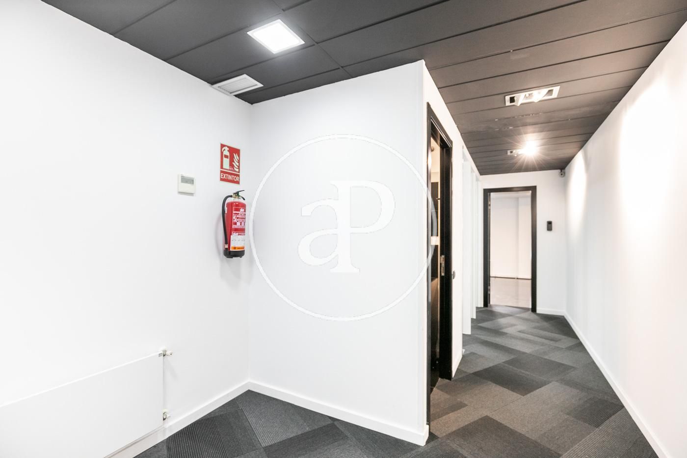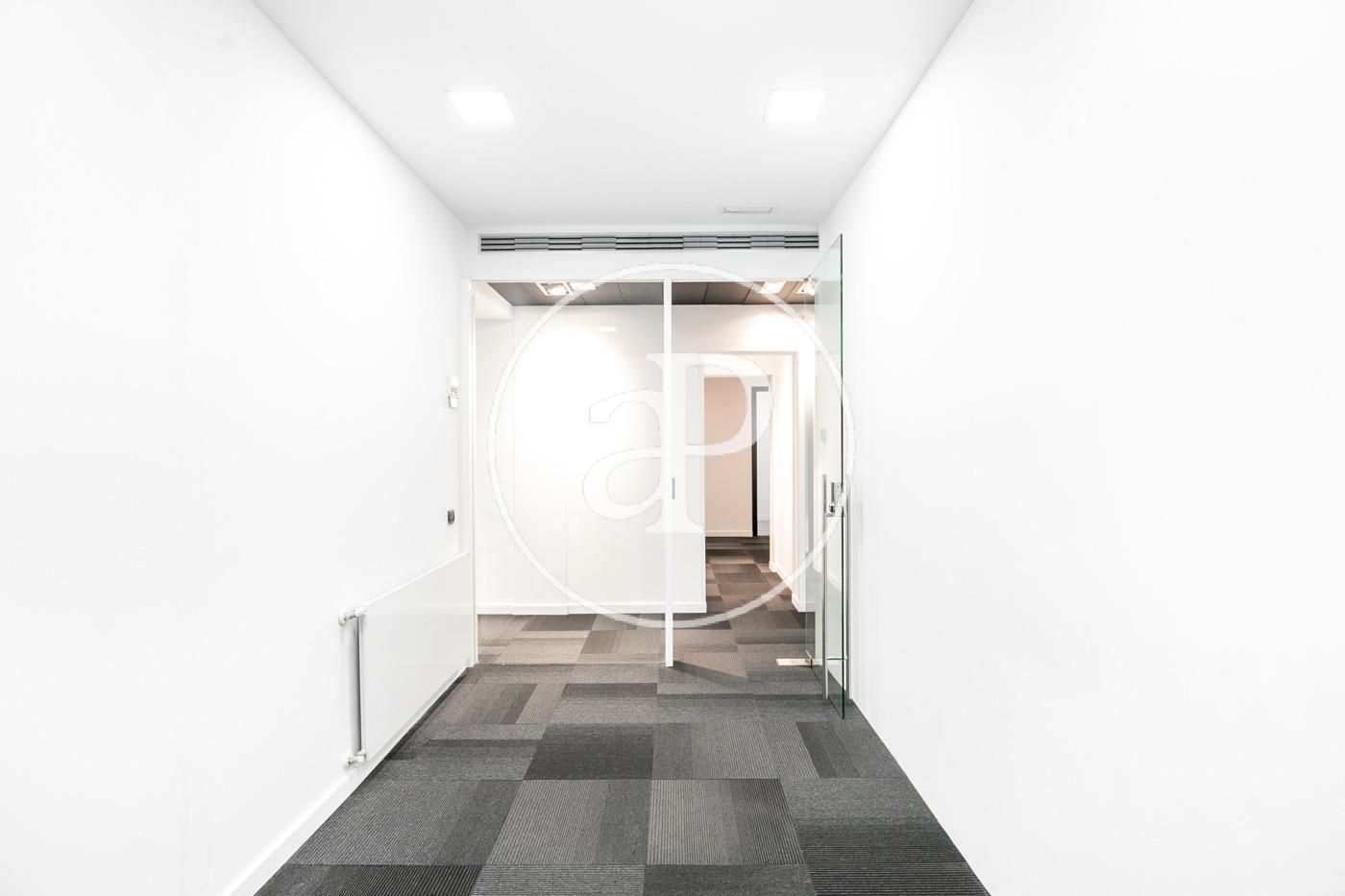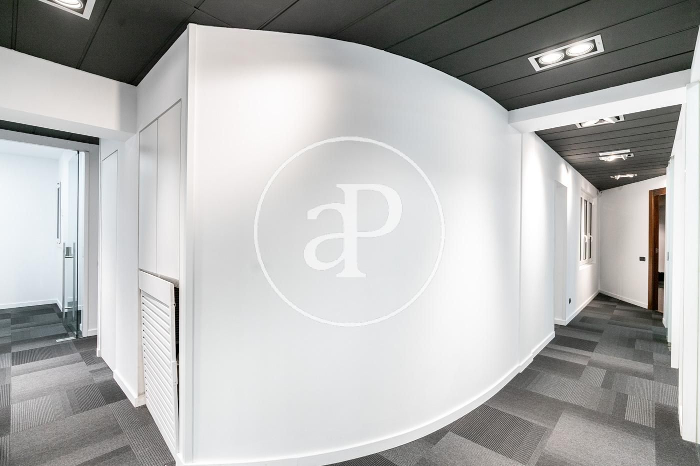 Hasta ahora ha estado alquilada como oficina con una distribución (8 espacios que se pueden habilitar como habitaciones, despacho, biblioteca, habitación de juegos y de servicio, etc.) espacio para la cocina, dispone de 2 aseos y lo más importante no hay paredes maestras por lo que con una buena reforma el resultado sería una magnifica vivienda.