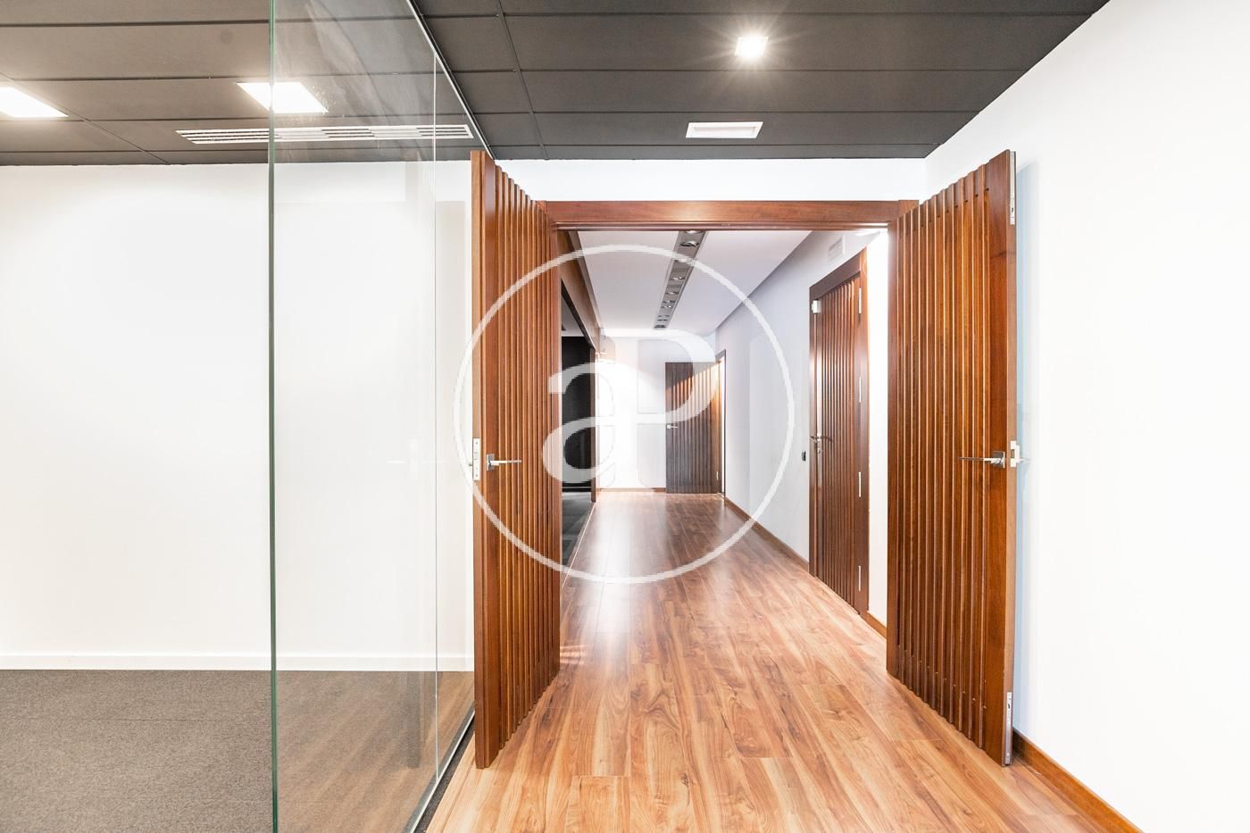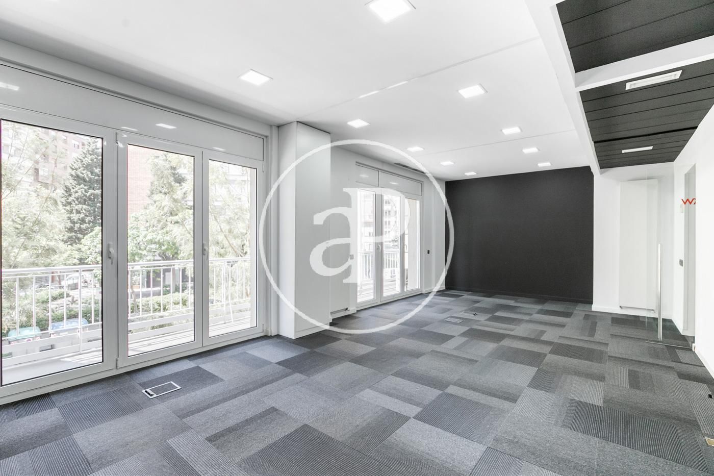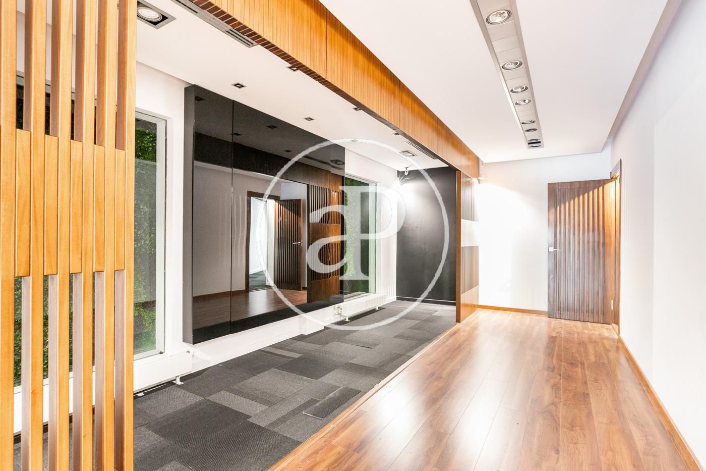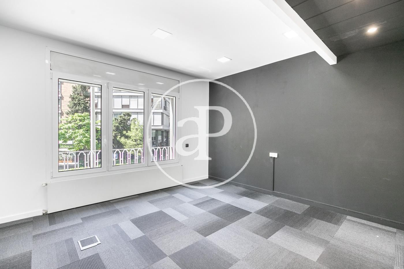 Hasta ahora ha estado alquilada como oficina con una distribución (8 espacios que se pueden habilitar como habitaciones, despacho, biblioteca, habitación de juegos y de servicio, etc.) espacio para la cocina, dispone de 2 aseos y lo más importante no hay paredes maestras por lo que con una buena reforma el resultado sería una magnifica vivienda.