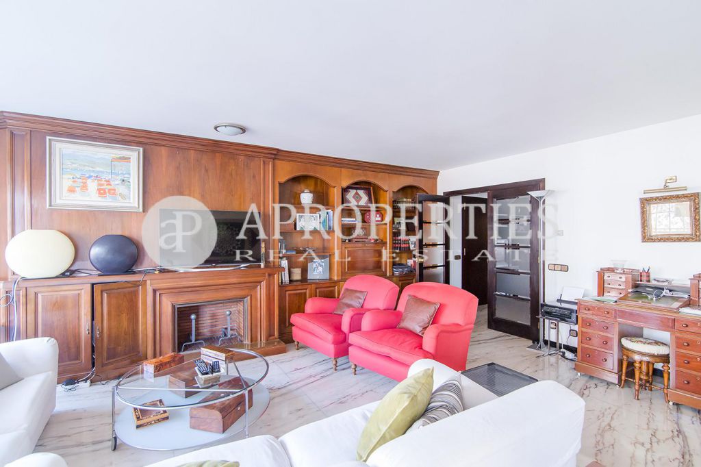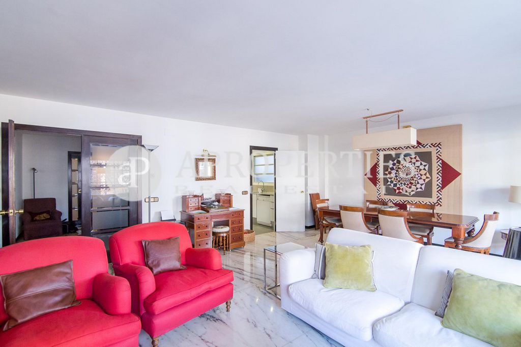 En el tranquilo barrio de Tres Torres, se encuentra este agradable piso de 190m2. La zona de día consta de un gran salón-comedor de 40m2 con acceso a la terraza con sol de tardes, una cocina office semi equipada con lavaplatos y nevera, con acceso a una amplia zona de aguas con espacio para la lavadora, secadora y tender, y una habitación de servicio con baño completo. En la zona de noche, encontramos cuatro habitaciones, una en suite, dos dobles y una individual. Tres cuartos de baño, uno en la suite con un renovado plato de ducha, otro completo que comparten las tres habitaciones y un aseo de cortesía. Todas las habitaciones son exteriores y luminosas. El precio incluye dos plazas de parking, los gastos de comunidad y el IBI. La finca cuenta con ascensor y servicio de conserjería.
