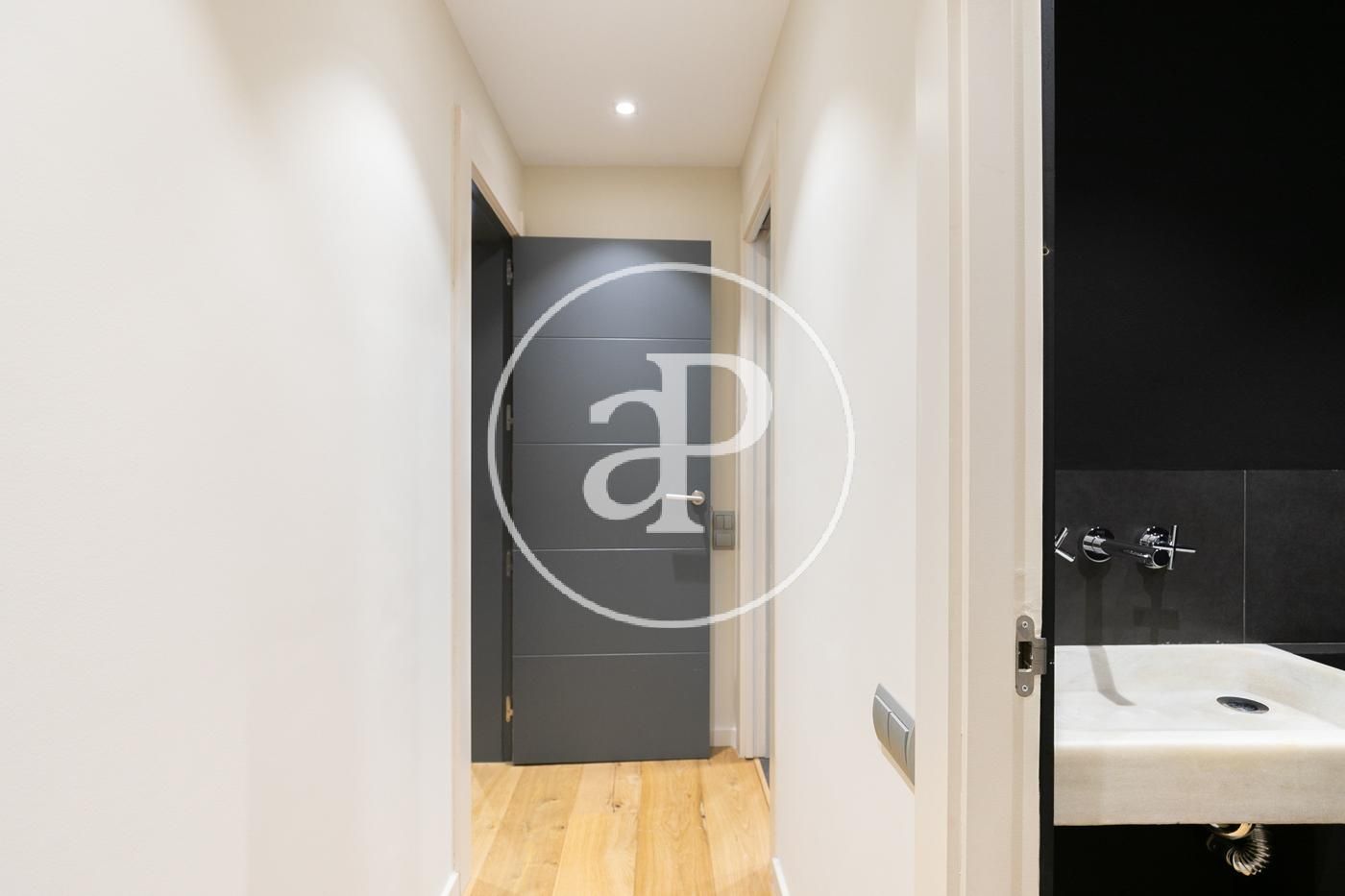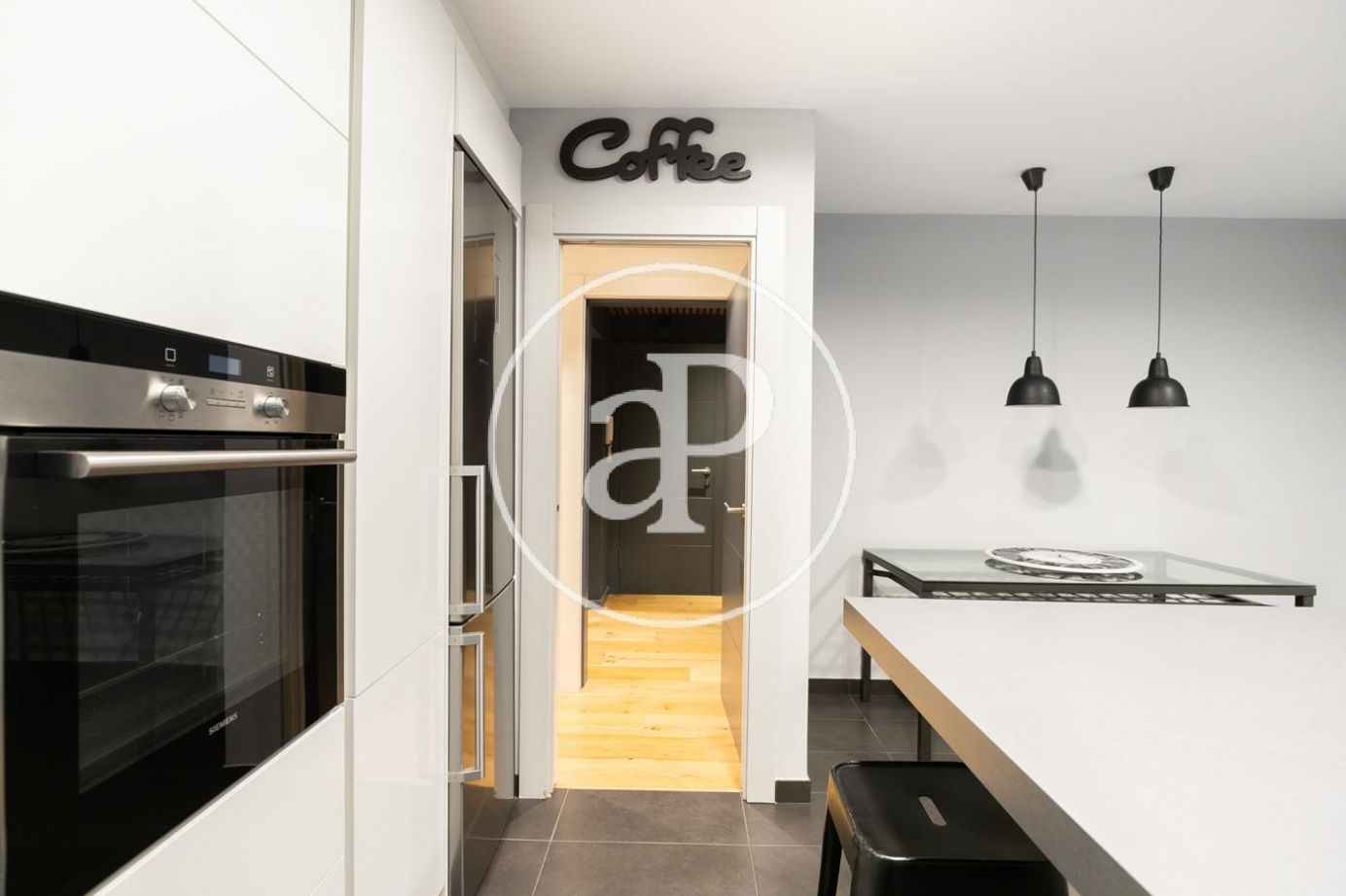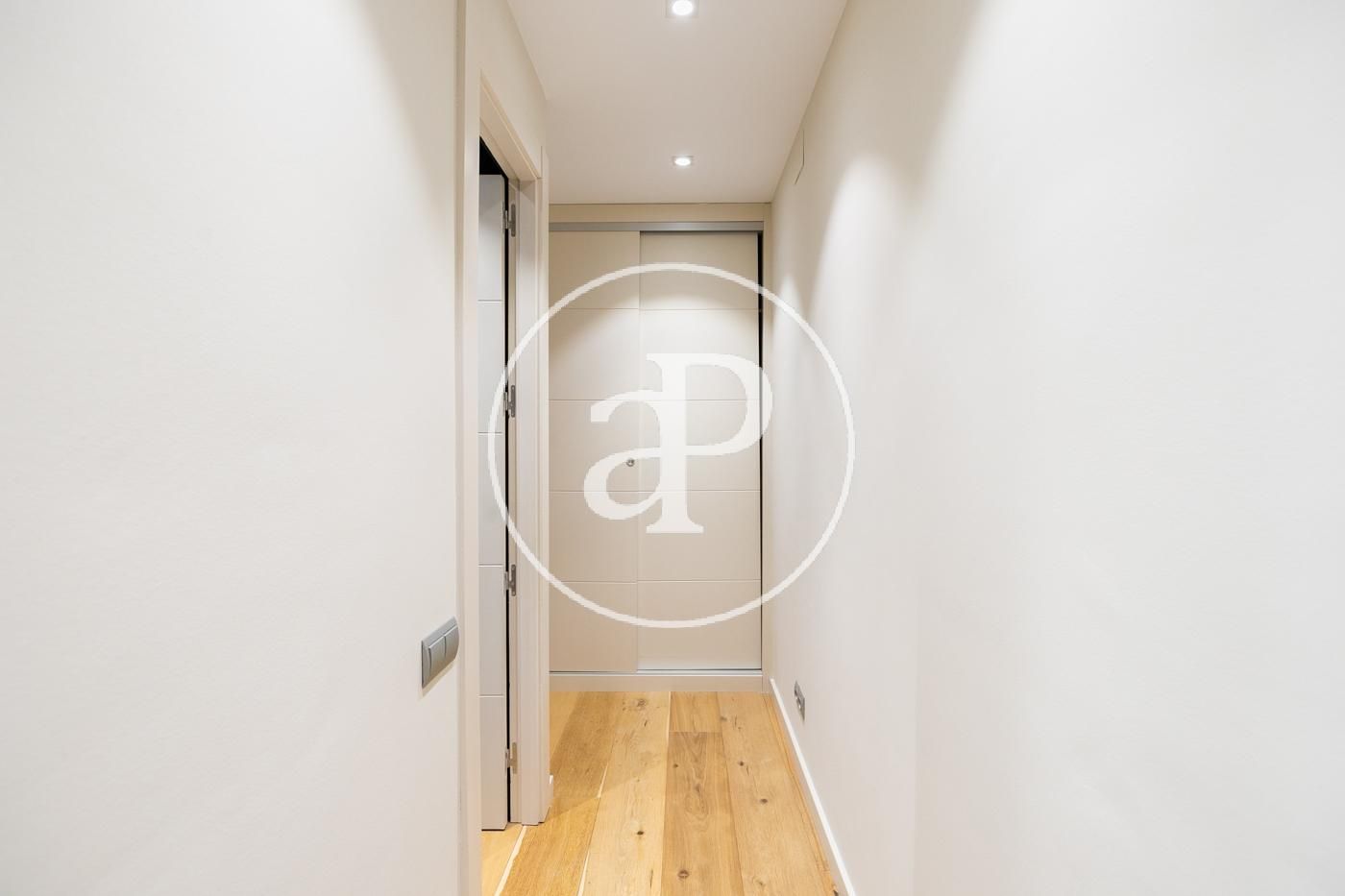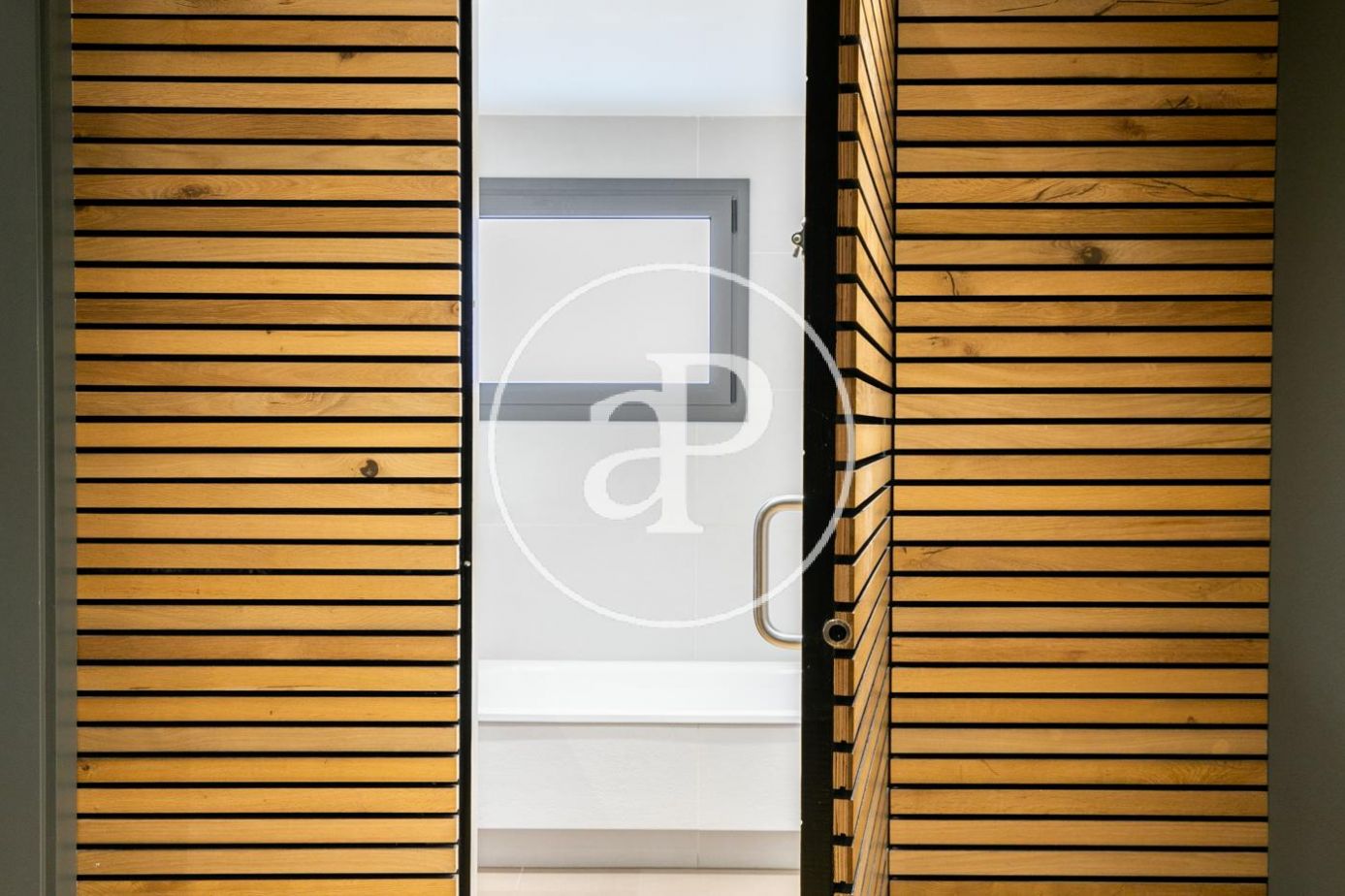 Al acceder a la vivienda, un amplio recibidor nos conduce a la zona de día, donde encontramos un espacioso salón-comedor con salida directa a la terraza, ideal para disfrutar de luz natural durante todo el día. A continuación se sitúa una cocina tipo office totalmente equipada, con una práctica zona de lavado independiente y una habitación de servicio con baño completo.