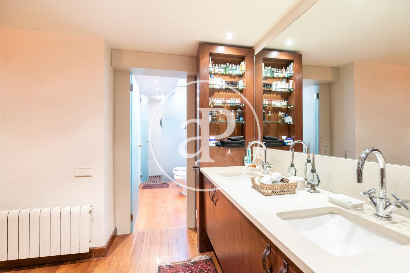 Además, en este mismo nivel, un jardín privativo verde y frondoso de 60m2, al que están orientadas todas las estancias, proporciona una agradable sensación de relax y de estar en un oasis de paz, en una de las mejores zonas de la ciudad.