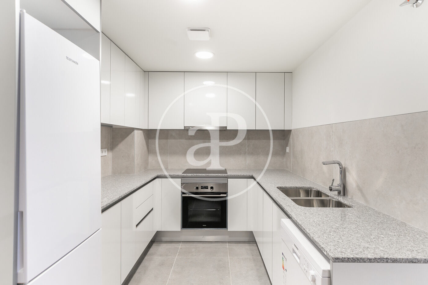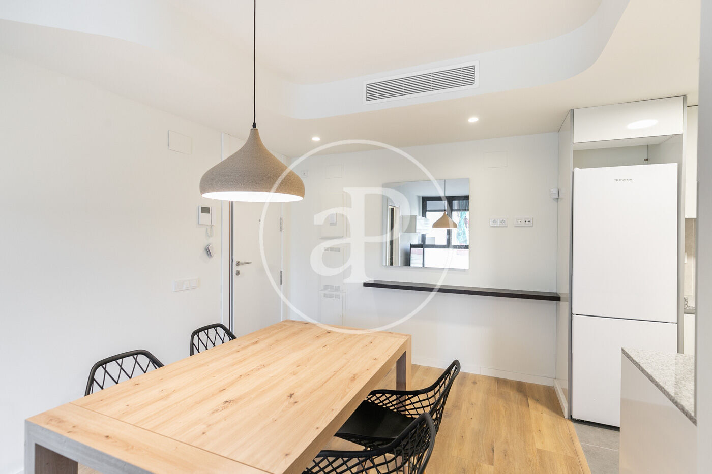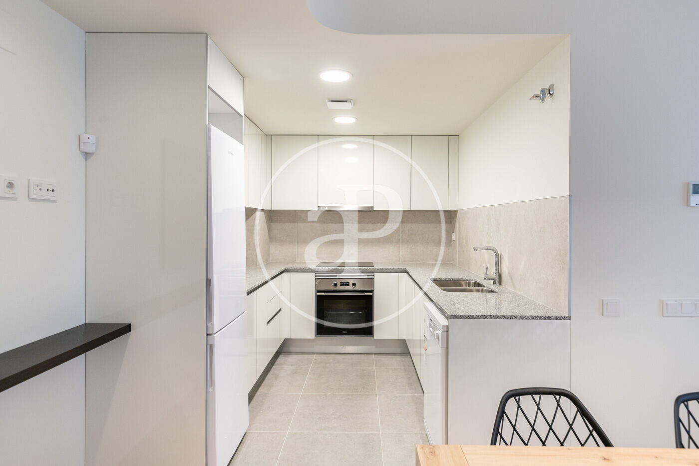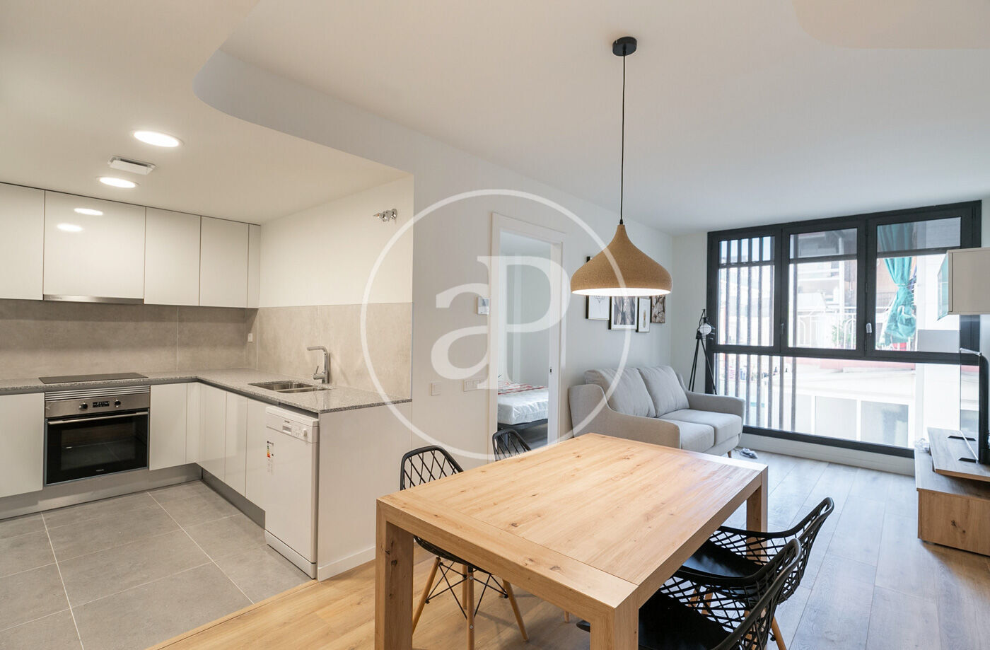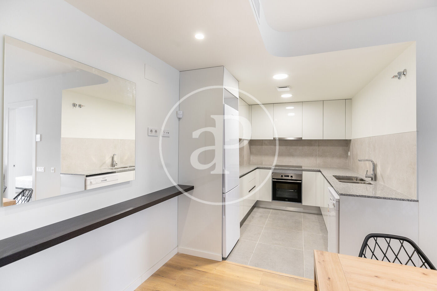 En la zona de día, encontramos un soleado salón exterior con grandes ventanales, una cocina equipada con todos los electrodomésticos necesarios.