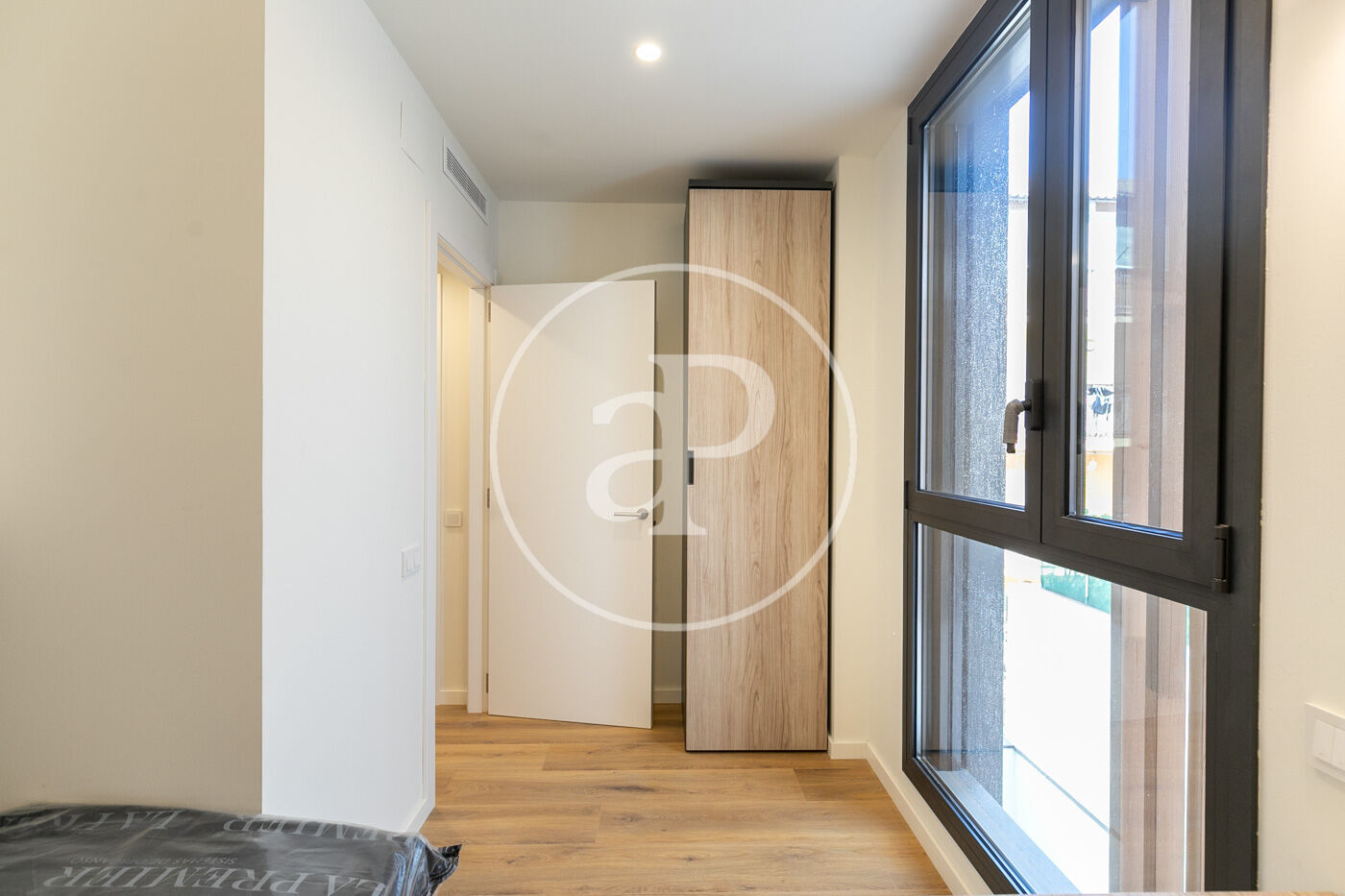 Es una calle peatonal muy tranquila de Nou Barris, nos encontramos con una vivienda de reciente construcción y a estrenar.