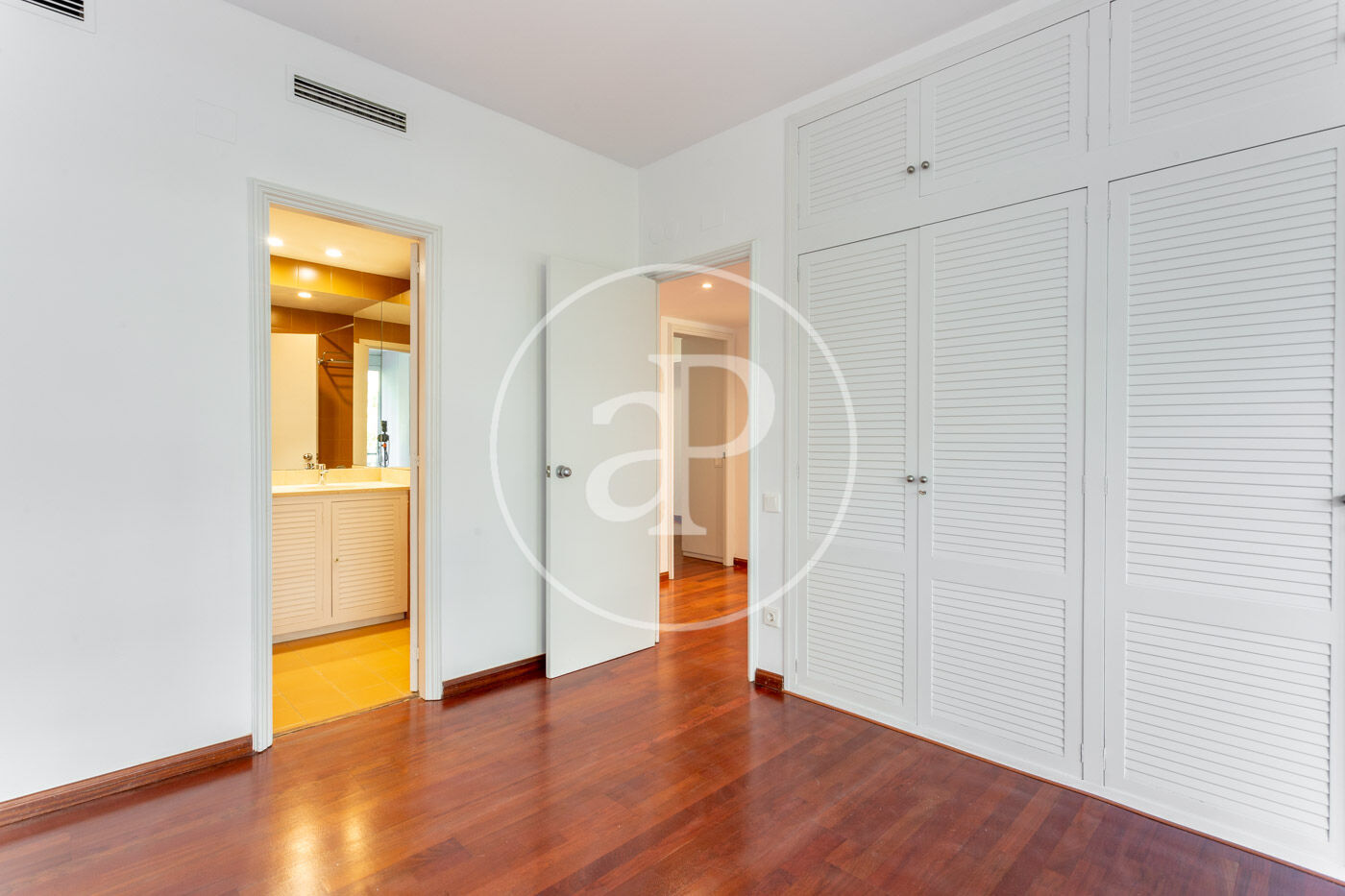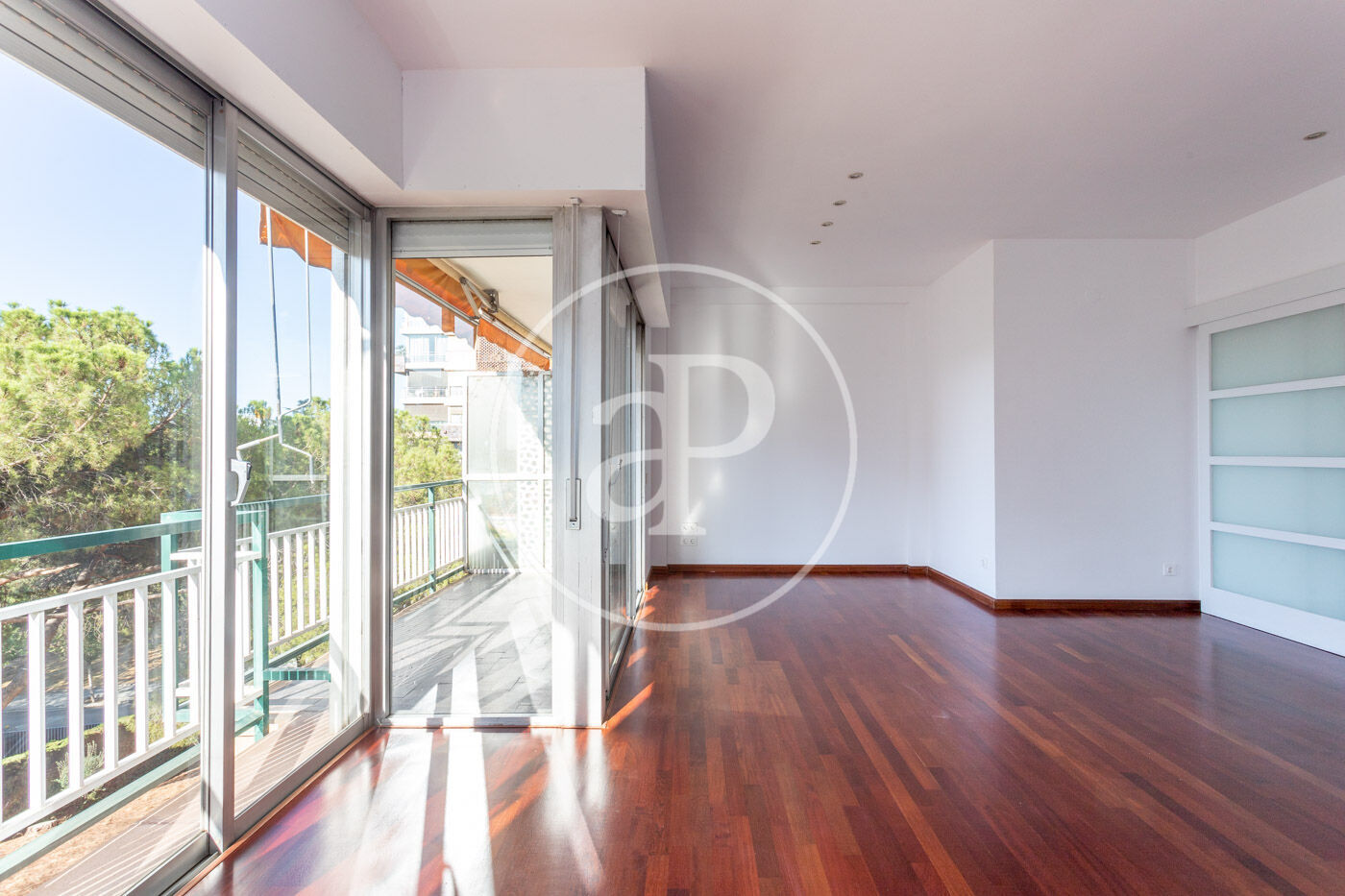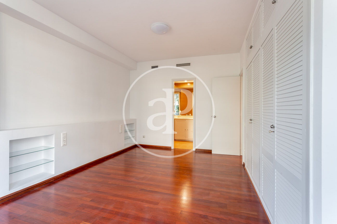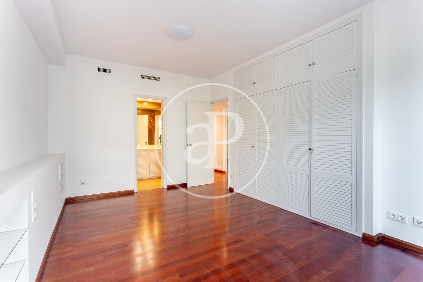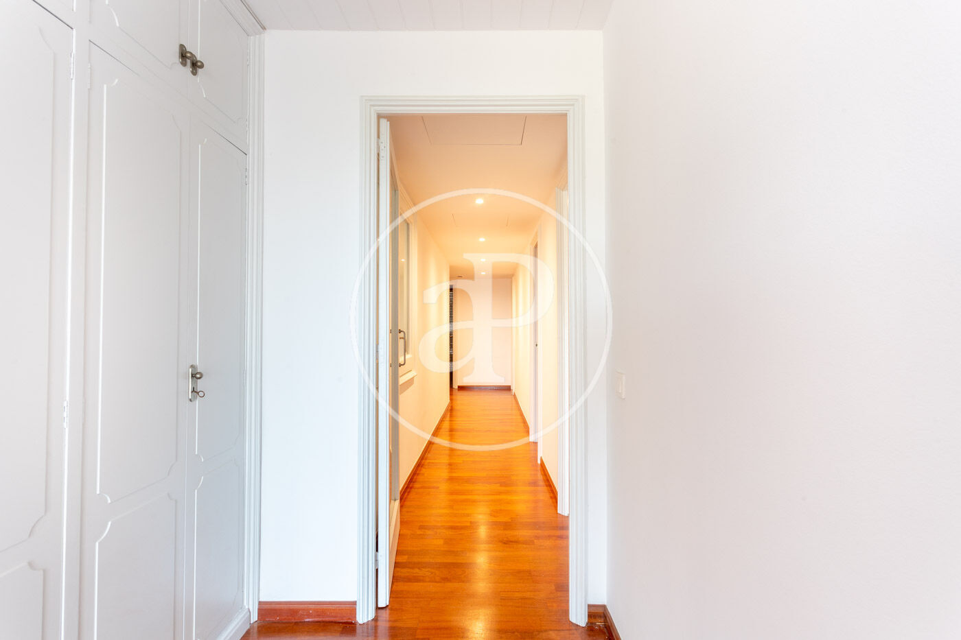 Ubicada en la parte alta de Sarrià, una zona con excesiva tranquilidad, cerca de los colegios internacionales, Benjamin Franklin, Oak house, St George- British School, Sagrado Corazón, se encuentra este precioso piso de lujo de 3 habitaciones.  En la zona de día encontramos el soleado salón-comedor con muchos ventanales por donde se pueden disfrutar de unas magníficas vistas al parque y visualizar el mar. Frente al salón, accedemos a una pequeña terraza muy tranquila y disfrutable de 7 metros. La cocina es abierta al salón con isla central y con todos sus electrodomésticos de alta gama, (electrodomésticos gaggenau), detrás, se accede a la zona de aguas y a un cuarto que puede servir de despensa. Además, cuenta con un aseo de cortesía. La zona de noche cuenta con 3 habitaciones dobles: la principal en suite y las otras dos comparten un baño. Todas las habitaciones son exteriores con preciosas vistas y disponen de armarios.  Todos los muebles son de diseño de alta gama, hechos a medida y de máxima calidad. El piso funciona con un sistema de domótica y las ventanas tienen incorporada la tecnología K-Line. Los suelos de parqué, A/A por conductos y calefacción con suelo radiante. Dispone también de persianas eléctricas.  El edificio dispone de zonas comunitarias como gimnasio, una sala grande con cocina para celebrar eventos con los amigos y piscina exterior, que dispone del sistema de nado a contracorriente. También dispone de servicio de conserjería y ascensor. El piso se alquila con 4 plazas de parking para coche y una para motos. Está equipado para cargar coches eléctricos.  También despone de un trastero de 6 m2.    * En cumplimiento de la Ley 12/2023 y la Llei 18/2007 informamos que:Índice de R.P.LL: 23,18 € / m2 Respecto a la presente propiedad no existe certificado informativo estatal de referencia de precios de alquiler