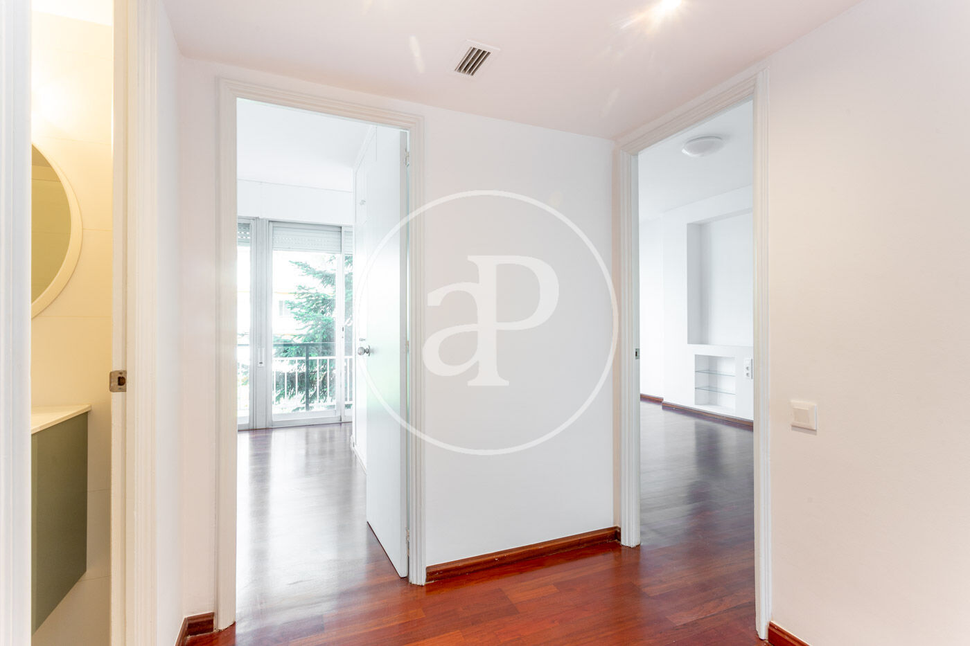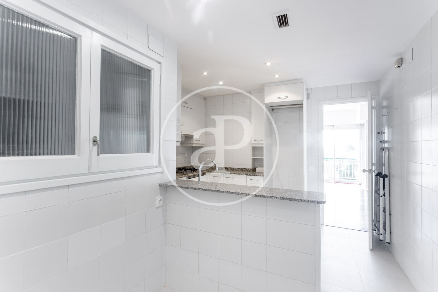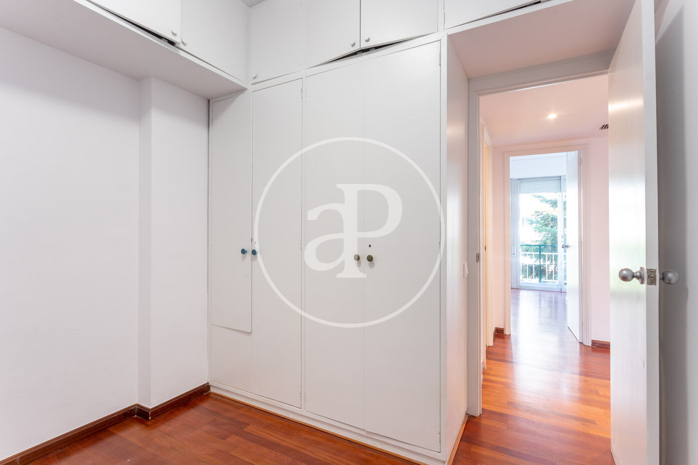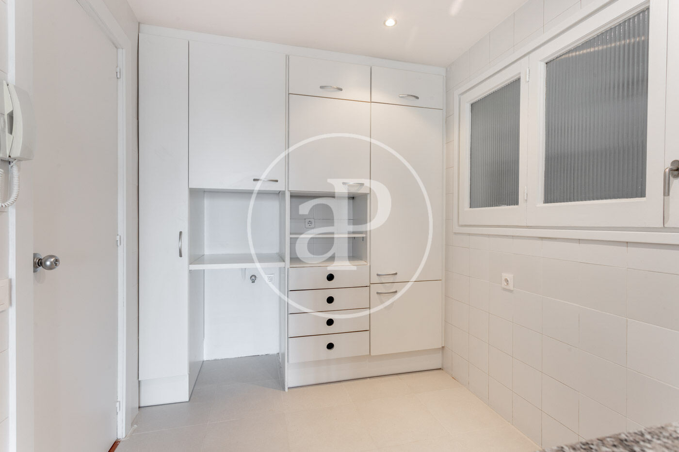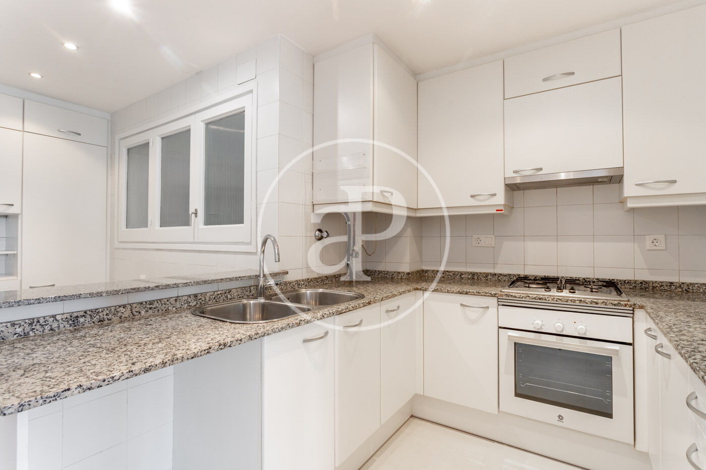 Ubicada en la parte alta de Sarrià, una zona con excesiva tranquilidad, cerca de los colegios internacionales, Benjamin Franklin, Oak house, St George- British School, Sagrado Corazón, se encuentra este precioso piso de lujo de 3 habitaciones.  En la zona de día encontramos el soleado salón-comedor con muchos ventanales por donde se pueden disfrutar de unas magníficas vistas al parque y visualizar el mar. Frente al salón, accedemos a una pequeña terraza muy tranquila y disfrutable de 7 metros. La cocina es abierta al salón con isla central y con todos sus electrodomésticos de alta gama, (electrodomésticos gaggenau), detrás, se accede a la zona de aguas y a un cuarto que puede servir de despensa. Además, cuenta con un aseo de cortesía. La zona de noche cuenta con 3 habitaciones dobles: la principal en suite y las otras dos comparten un baño. Todas las habitaciones son exteriores con preciosas vistas y disponen de armarios.  Todos los muebles son de diseño de alta gama, hechos a medida y de máxima calidad. El piso funciona con un sistema de domótica y las ventanas tienen incorporada la tecnología K-Line. Los suelos de parqué, A/A por conductos y calefacción con suelo radiante. Dispone también de persianas eléctricas.  El edificio dispone de zonas comunitarias como gimnasio, una sala grande con cocina para celebrar eventos con los amigos y piscina exterior, que dispone del sistema de nado a contracorriente. También dispone de servicio de conserjería y ascensor. El piso se alquila con 4 plazas de parking para coche y una para motos. Está equipado para cargar coches eléctricos.  También despone de un trastero de 6 m2.    * En cumplimiento de la Ley 12/2023 y la Llei 18/2007 informamos que:Índice de R.P.LL: 23,18 € / m2 Respecto a la presente propiedad no existe certificado informativo estatal de referencia de precios de alquiler