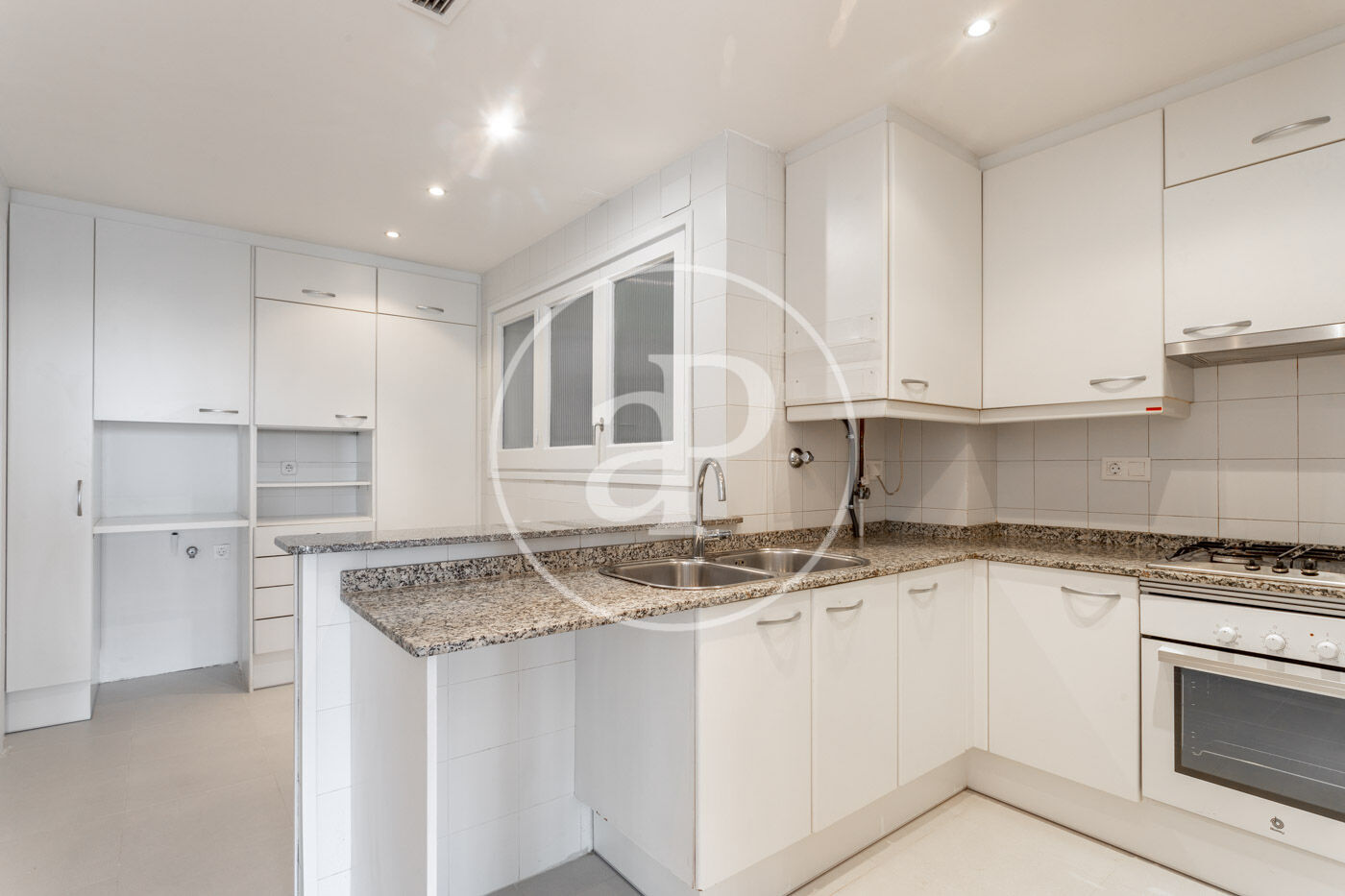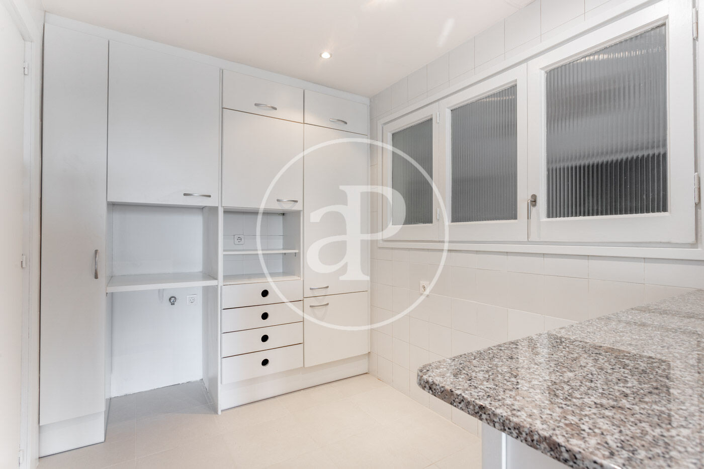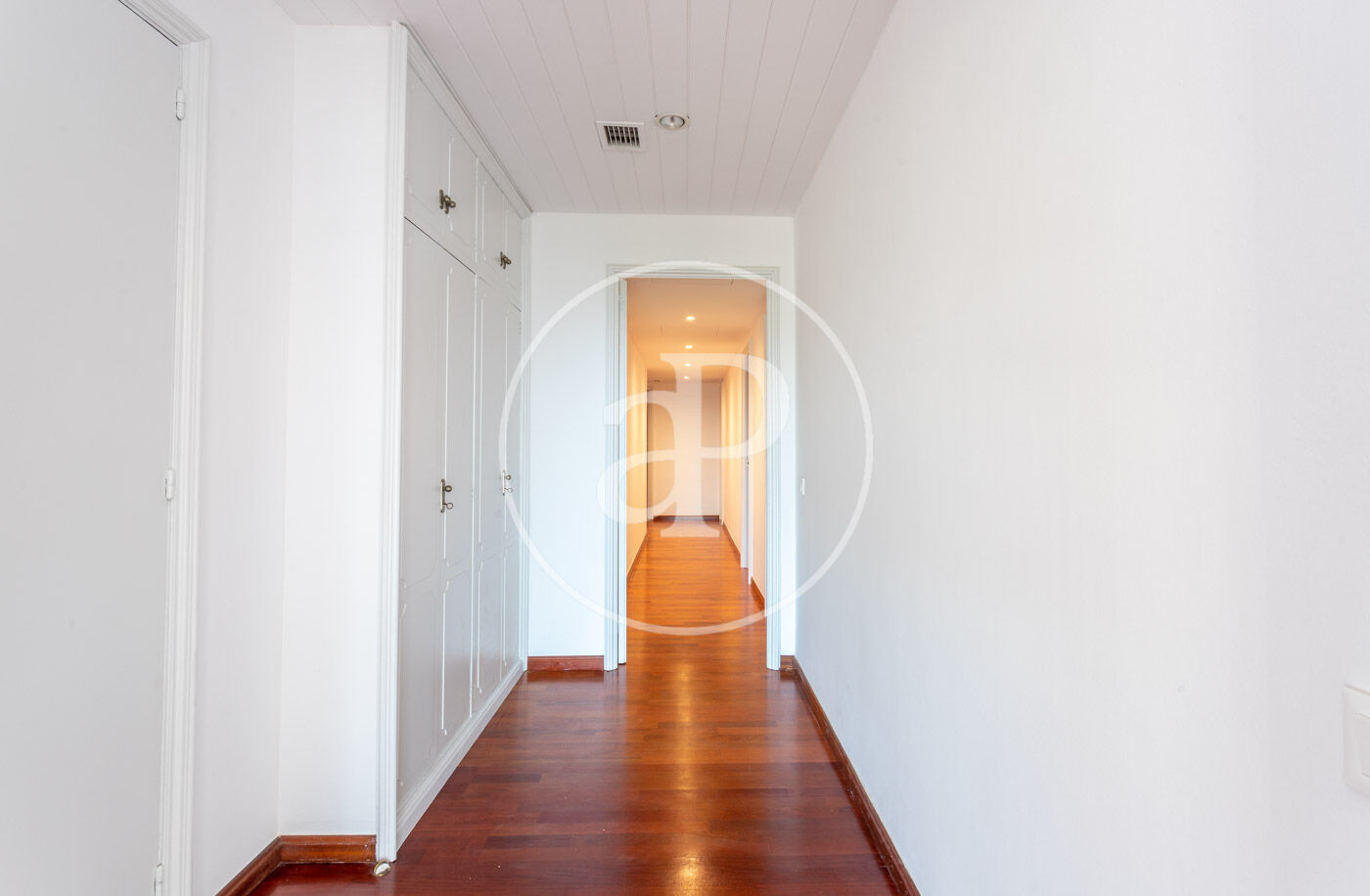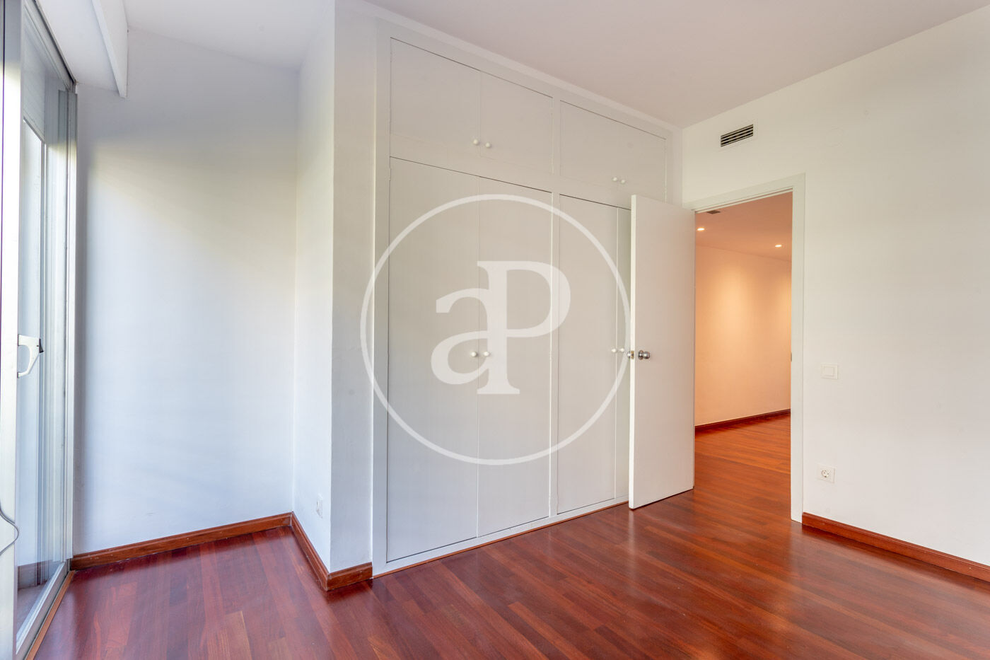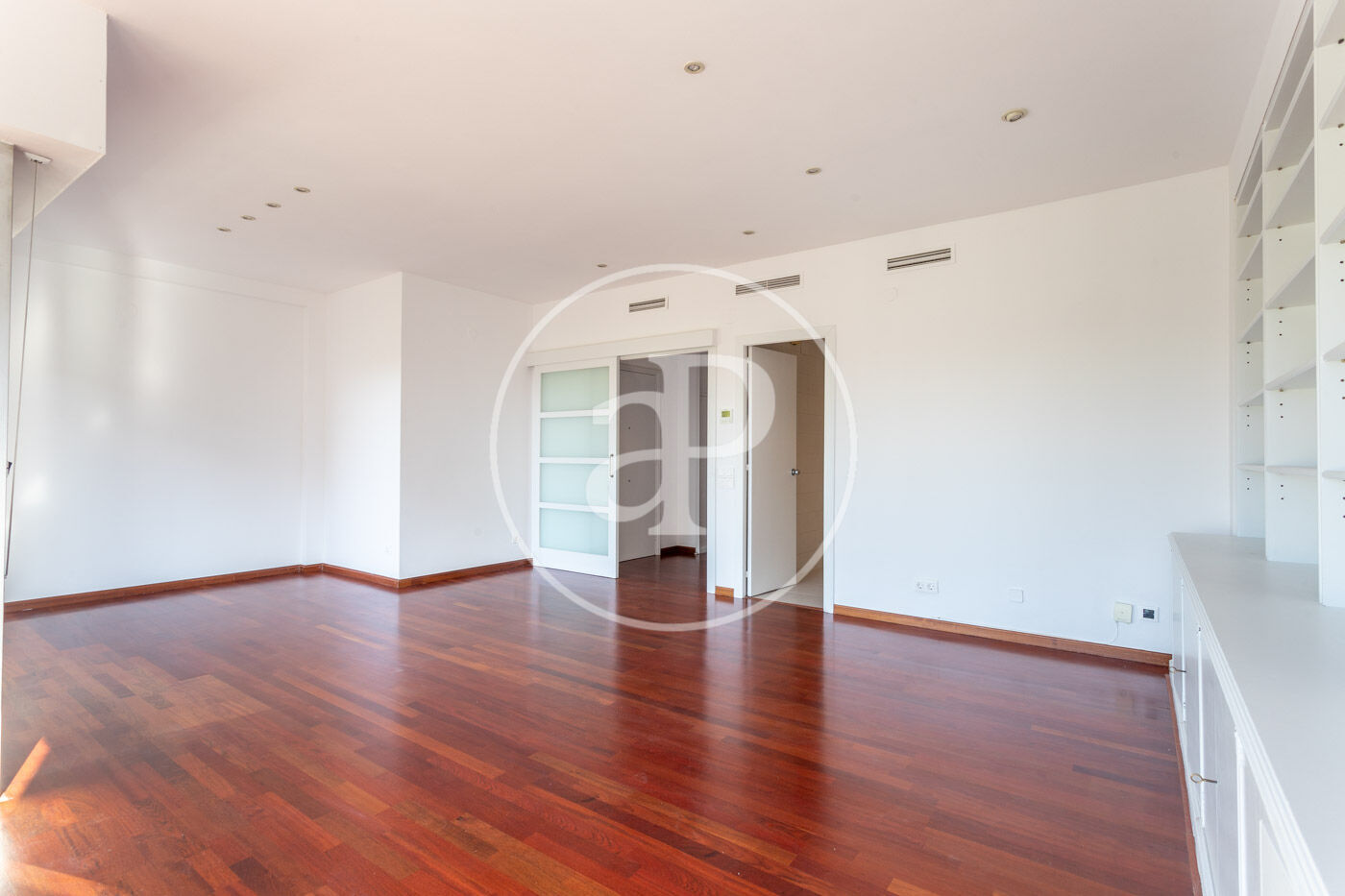 Ubicada en la parte alta de Sarrià, una zona con excesiva tranquilidad, cerca de los colegios internacionales, Benjamin Franklin, Oak house, St George- British School, Sagrado Corazón, se encuentra este precioso piso de lujo de 3 habitaciones.  En la zona de día encontramos el soleado salón-comedor con muchos ventanales por donde se pueden disfrutar de unas magníficas vistas al parque y visualizar el mar. Frente al salón, accedemos a una pequeña terraza muy tranquila y disfrutable de 7 metros. La cocina es abierta al salón con isla central y con todos sus electrodomésticos de alta gama, (electrodomésticos gaggenau), detrás, se accede a la zona de aguas y a un cuarto que puede servir de despensa. Además, cuenta con un aseo de cortesía. La zona de noche cuenta con 3 habitaciones dobles: la principal en suite y las otras dos comparten un baño. Todas las habitaciones son exteriores con preciosas vistas y disponen de armarios.  Todos los muebles son de diseño de alta gama, hechos a medida y de máxima calidad. El piso funciona con un sistema de domótica y las ventanas tienen incorporada la tecnología K-Line. Los suelos de parqué, A/A por conductos y calefacción con suelo radiante. Dispone también de persianas eléctricas.  El edificio dispone de zonas comunitarias como gimnasio, una sala grande con cocina para celebrar eventos con los amigos y piscina exterior, que dispone del sistema de nado a contracorriente. También dispone de servicio de conserjería y ascensor. El piso se alquila con 4 plazas de parking para coche y una para motos. Está equipado para cargar coches eléctricos.  También despone de un trastero de 6 m2.    * En cumplimiento de la Ley 12/2023 y la Llei 18/2007 informamos que:Índice de R.P.LL: 23,18 € / m2 Respecto a la presente propiedad no existe certificado informativo estatal de referencia de precios de alquiler