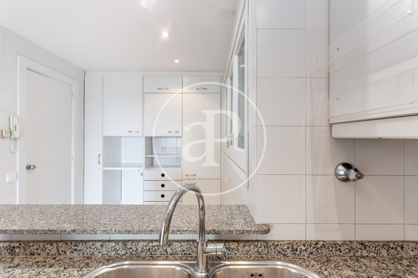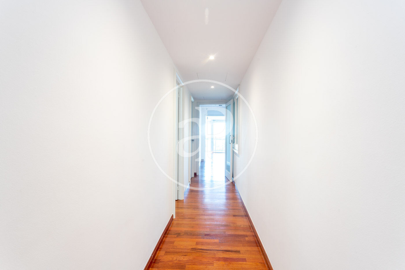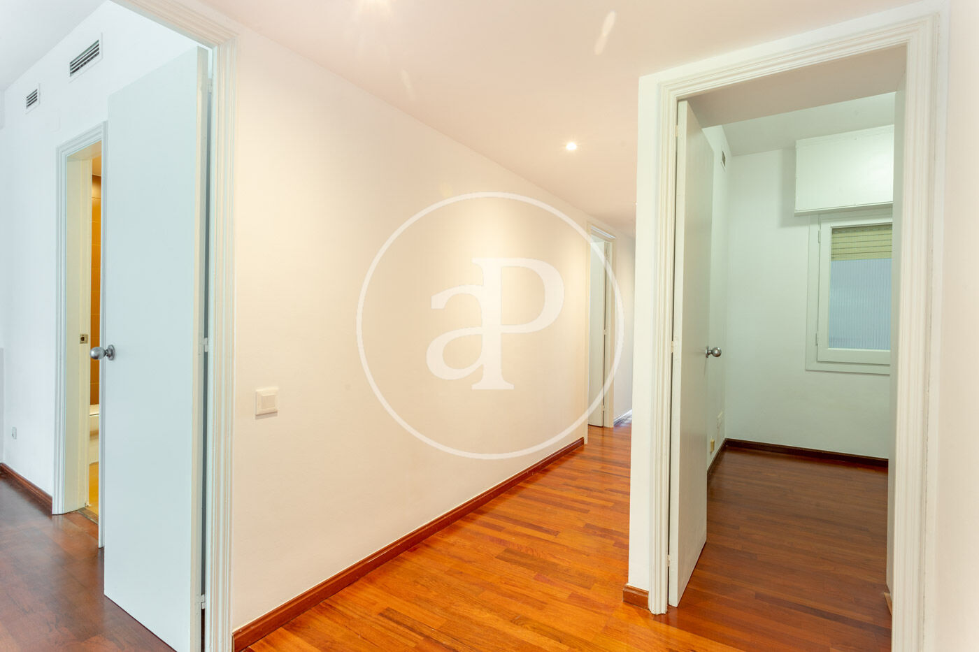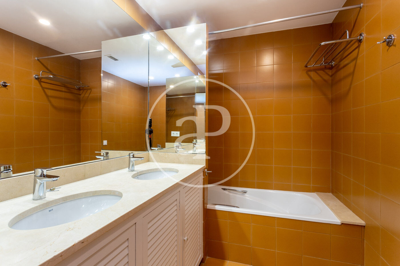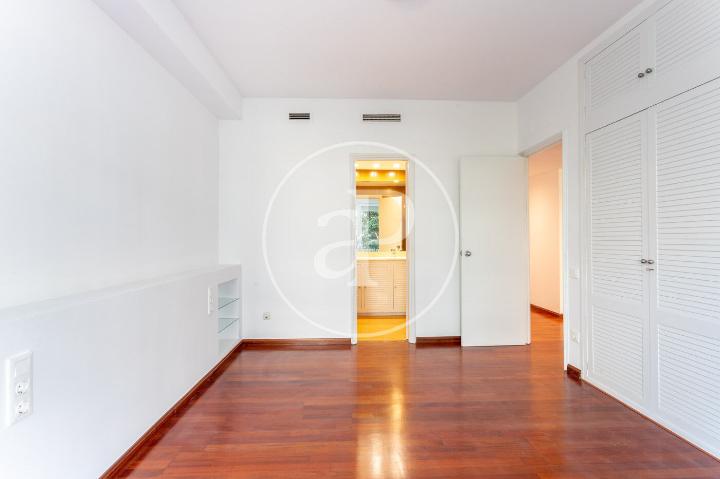 Ubicada en la parte alta de Sarrià, una zona con excesiva tranquilidad, cerca de los colegios internacionales, Benjamin Franklin, Oak house, St George- British School, Sagrado Corazón, se encuentra este precioso piso de lujo de 3 habitaciones.  En la zona de día encontramos el soleado salón-comedor con muchos ventanales por donde se pueden disfrutar de unas magníficas vistas al parque y visualizar el mar. Frente al salón, accedemos a una pequeña terraza muy tranquila y disfrutable de 7 metros. La cocina es abierta al salón con isla central y con todos sus electrodomésticos de alta gama, (electrodomésticos gaggenau), detrás, se accede a la zona de aguas y a un cuarto que puede servir de despensa. Además, cuenta con un aseo de cortesía. La zona de noche cuenta con 3 habitaciones dobles: la principal en suite y las otras dos comparten un baño. Todas las habitaciones son exteriores con preciosas vistas y disponen de armarios.  Todos los muebles son de diseño de alta gama, hechos a medida y de máxima calidad. El piso funciona con un sistema de domótica y las ventanas tienen incorporada la tecnología K-Line. Los suelos de parqué, A/A por conductos y calefacción con suelo radiante. Dispone también de persianas eléctricas.  El edificio dispone de zonas comunitarias como gimnasio, una sala grande con cocina para celebrar eventos con los amigos y piscina exterior, que dispone del sistema de nado a contracorriente. También dispone de servicio de conserjería y ascensor. El piso se alquila con 4 plazas de parking para coche y una para motos. Está equipado para cargar coches eléctricos.  También despone de un trastero de 6 m2.    * En cumplimiento de la Ley 12/2023 y la Llei 18/2007 informamos que:Índice de R.P.LL: 23,18 € / m2 Respecto a la presente propiedad no existe certificado informativo estatal de referencia de precios de alquiler