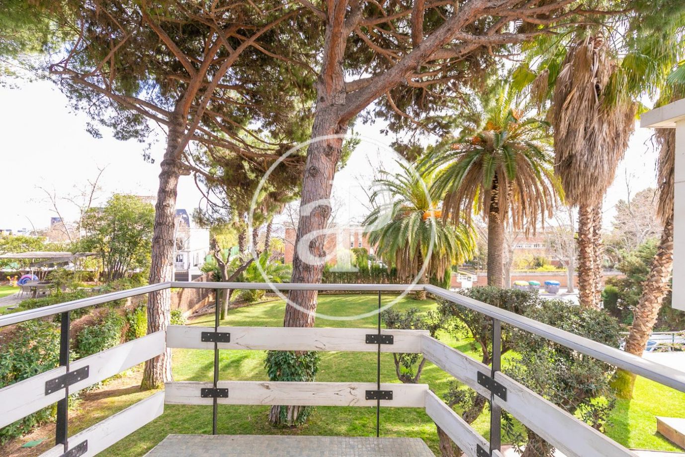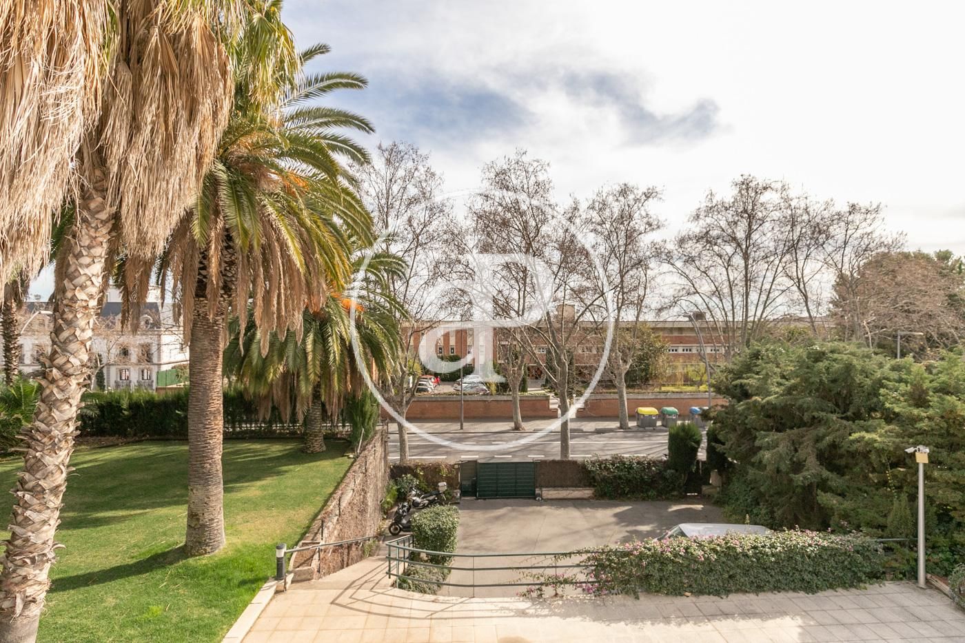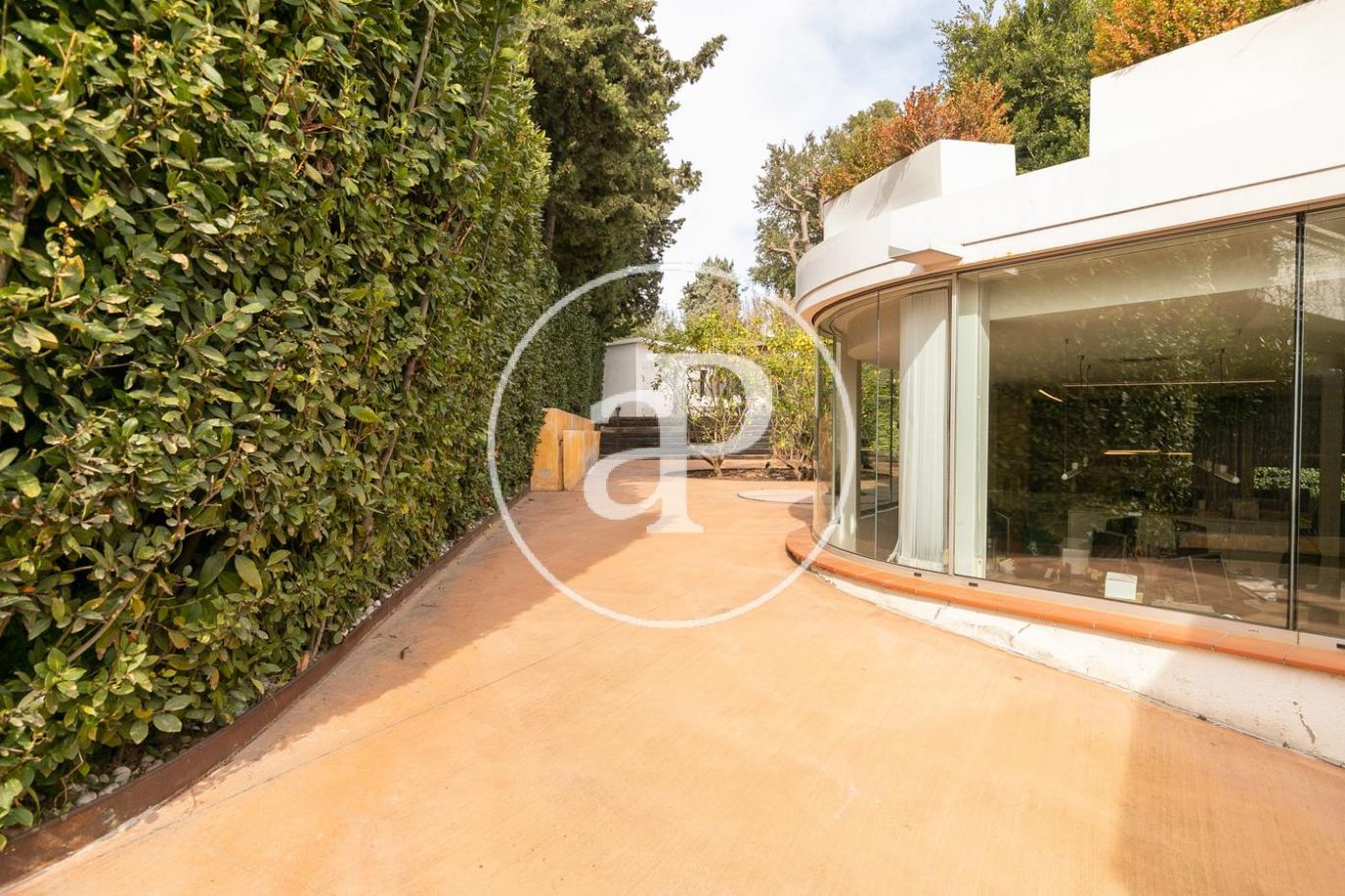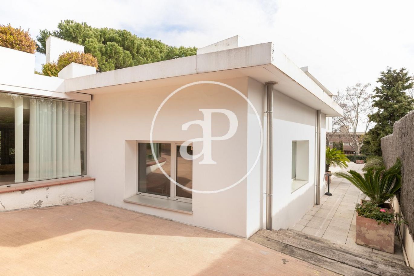 Espectacular ático dúplex de 614m2 construidos, cinco terrazas de un total de 52m2 y una cubierta de 256m2, orientado a sureste y a cuatro vientos, está ubicado en el histórico edificio residencial de Les Escales Park en Pedralbes.  Reconocido con el Premio FAD y proyectado por el arquitecto catalán Josep Lluís Sert, es un referente en la historia de la arquitectura del siglo XX. Está custodiado por un importante bosque de pinos y una serie de cascadas, su estructura de hormigón armado, muros de piedra y su controvertido diseño de rectángulos asimétricos, contrasta con elementos típicos locales como las persianas de librillo, los techos de viga y bovedilla o la cerámica vidriada de color ocre y verde-gris. El edificio es de cinco bloques, pero sólo este dúplex obedece a las ideas originales de Sert.  Este piso para estrenar, reformado íntegramente con un exquisito respeto por su singularidad, goza de las mejores vistas panorámicas de Barcelona. Está repartido en dos plantas de 264m2 y 298m2 respectivamente, conectados por una escalera interior con un balcón tribuna que preside uno de los comedores. La cocina, en dos ambientes, uno cerrado para cocción y otra de office independiente, está totalmente equipada. Asimismo, existen cuatro salas con diferentes posibilidades de uso, un gran salón polivalente y una magna biblioteca con estantes de mármol blanco de carrara.  Actualmente, tiene cuatro dormitorios en suite, dos de ellos en la planta cuarta y los otros dos, en la planta quinta, una sensacional máster suite con vestidor. Todos los dormitorios, disponen de armarios empotrados. Y, además, hay la posibilidad de redistribuir algunas de sus estancias y convertirlos en tres nuevos dormitorios. Cada uno, tiene su propio baño, hasta un total de siete y dispone de tres aseos de fórmica que se han restaurado fielmente. De la misma manera, se han repuesto o mantenido diferentes elementos decorativos como los pomos de las puertas o los focos, cuya intensidad es regulable en casi todas las estancias.  La vivienda, goza de grandes espacios y colosales ventanales, lo que facilita la entrada de mucha luz natural y propicia una sugerente amalgama de colores y luminosidades, adornadas por los juegos de claros y oscuros provocados por sus jardineras y tragaluces alumbradas con luces led. La azotea, convertida en un mirador solárium con piscina y zona de vestuario con aseo, propician un entorno de relax y disfrute en un marco excepcional. Existe la posibilidad de instalar un ascensor privado para todas las plantas.  Finalmente, la vivienda tiene una habitación de servicio con baño, zona de lavandería, una sala técnica de control de suministros (aerotermia, suelo radiante, etcétera), cuatro plazas de aparcamiento y un trastero. Existe una agradable zona comunitaria de paseo y otra ajardinada con piscina, servicio de conserjería y vigilancia nocturna.