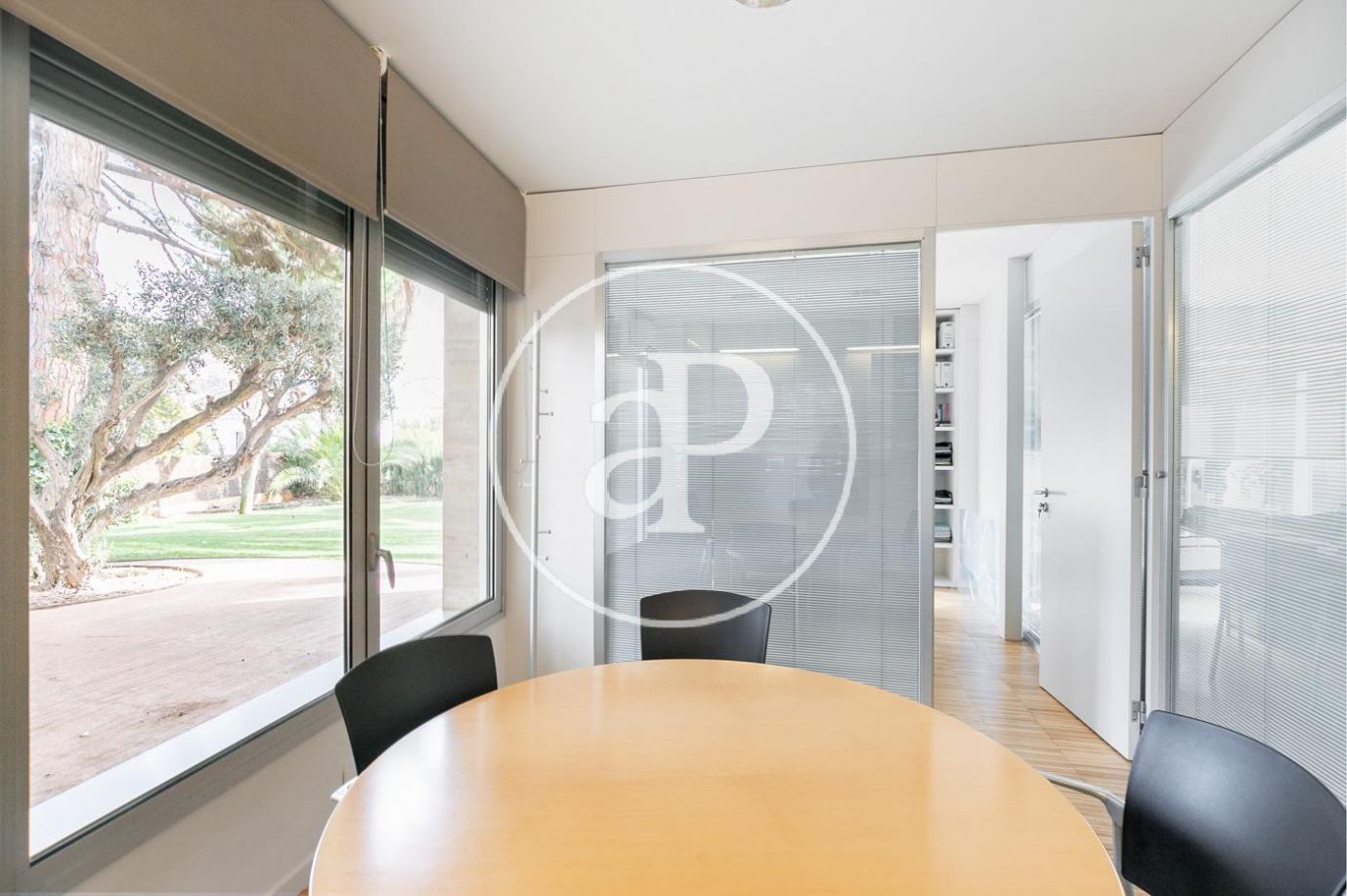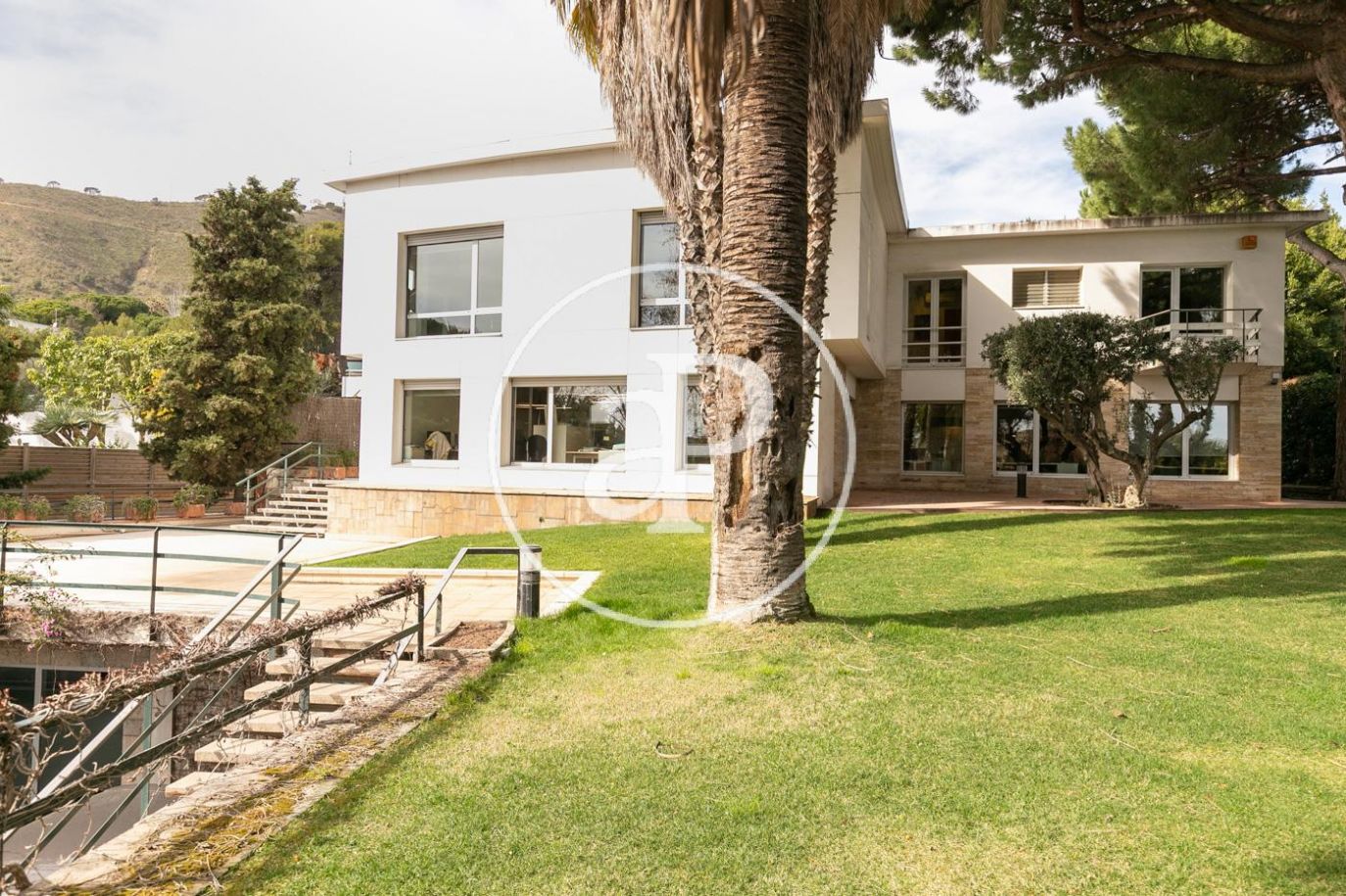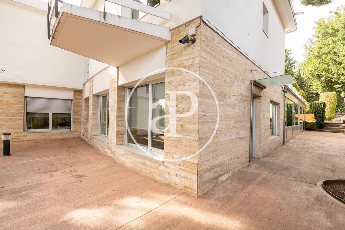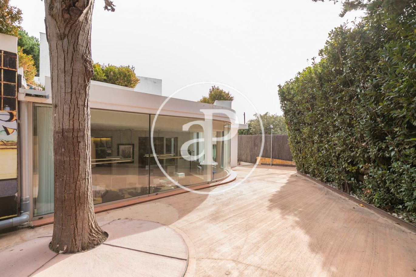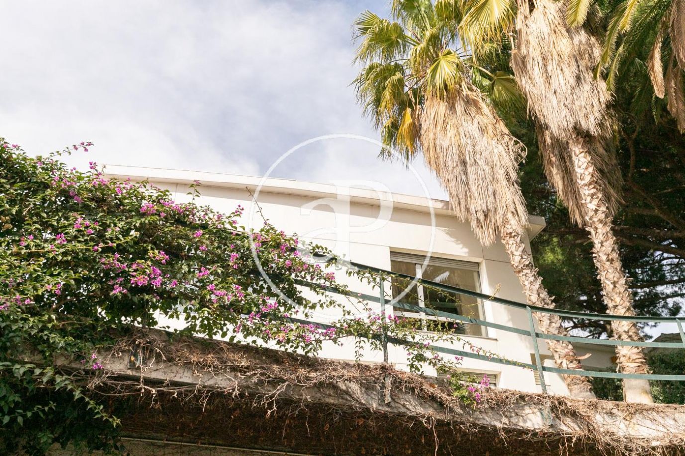 Espectacular ático dúplex de 614m2 construidos, cinco terrazas de un total de 52m2 y una cubierta de 256m2, orientado a sureste y a cuatro vientos, está ubicado en el histórico edificio residencial de Les Escales Park en Pedralbes.  Reconocido con el Premio FAD y proyectado por el arquitecto catalán Josep Lluís Sert, es un referente en la historia de la arquitectura del siglo XX. Está custodiado por un importante bosque de pinos y una serie de cascadas, su estructura de hormigón armado, muros de piedra y su controvertido diseño de rectángulos asimétricos, contrasta con elementos típicos locales como las persianas de librillo, los techos de viga y bovedilla o la cerámica vidriada de color ocre y verde-gris. El edificio es de cinco bloques, pero sólo este dúplex obedece a las ideas originales de Sert.  Este piso para estrenar, reformado íntegramente con un exquisito respeto por su singularidad, goza de las mejores vistas panorámicas de Barcelona. Está repartido en dos plantas de 264m2 y 298m2 respectivamente, conectados por una escalera interior con un balcón tribuna que preside uno de los comedores. La cocina, en dos ambientes, uno cerrado para cocción y otra de office independiente, está totalmente equipada. Asimismo, existen cuatro salas con diferentes posibilidades de uso, un gran salón polivalente y una magna biblioteca con estantes de mármol blanco de carrara.  Actualmente, tiene cuatro dormitorios en suite, dos de ellos en la planta cuarta y los otros dos, en la planta quinta, una sensacional máster suite con vestidor. Todos los dormitorios, disponen de armarios empotrados. Y, además, hay la posibilidad de redistribuir algunas de sus estancias y convertirlos en tres nuevos dormitorios. Cada uno, tiene su propio baño, hasta un total de siete y dispone de tres aseos de fórmica que se han restaurado fielmente. De la misma manera, se han repuesto o mantenido diferentes elementos decorativos como los pomos de las puertas o los focos, cuya intensidad es regulable en casi todas las estancias.  La vivienda, goza de grandes espacios y colosales ventanales, lo que facilita la entrada de mucha luz natural y propicia una sugerente amalgama de colores y luminosidades, adornadas por los juegos de claros y oscuros provocados por sus jardineras y tragaluces alumbradas con luces led. La azotea, convertida en un mirador solárium con piscina y zona de vestuario con aseo, propician un entorno de relax y disfrute en un marco excepcional. Existe la posibilidad de instalar un ascensor privado para todas las plantas.  Finalmente, la vivienda tiene una habitación de servicio con baño, zona de lavandería, una sala técnica de control de suministros (aerotermia, suelo radiante, etcétera), cuatro plazas de aparcamiento y un trastero. Existe una agradable zona comunitaria de paseo y otra ajardinada con piscina, servicio de conserjería y vigilancia nocturna.