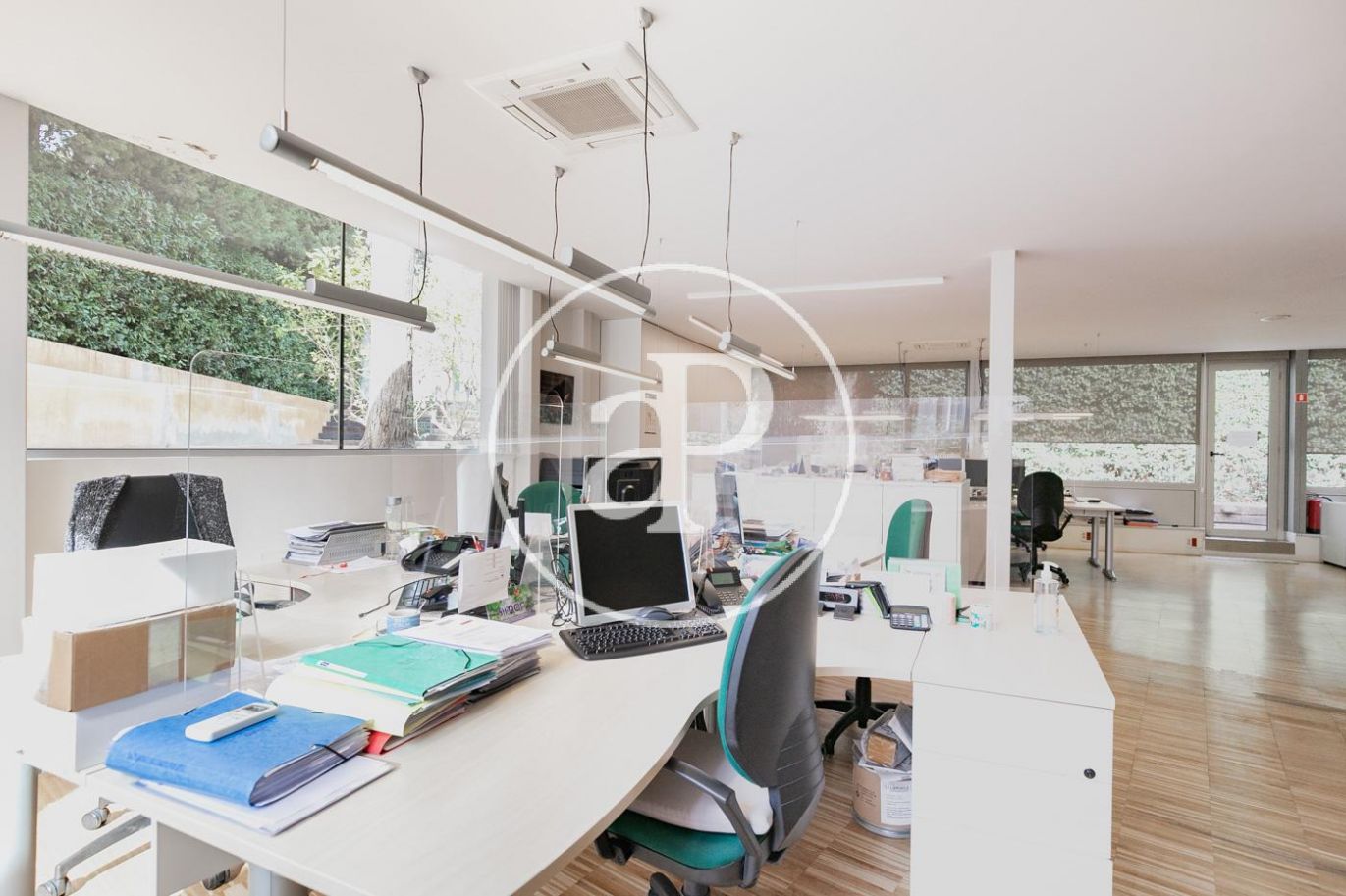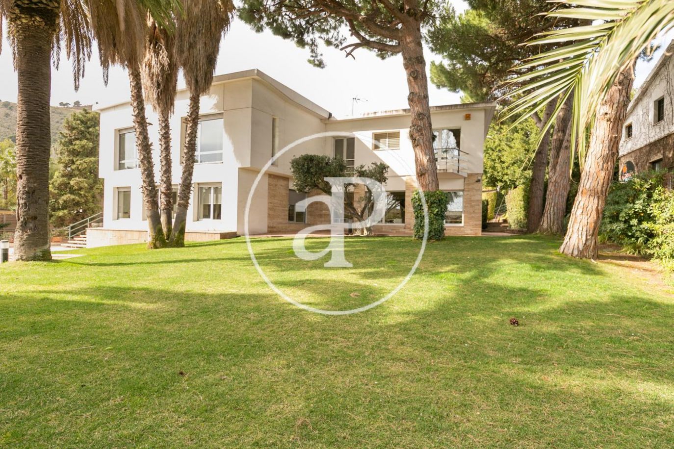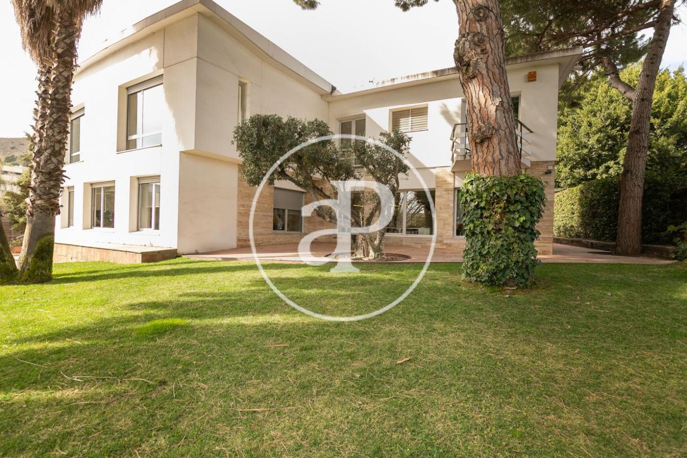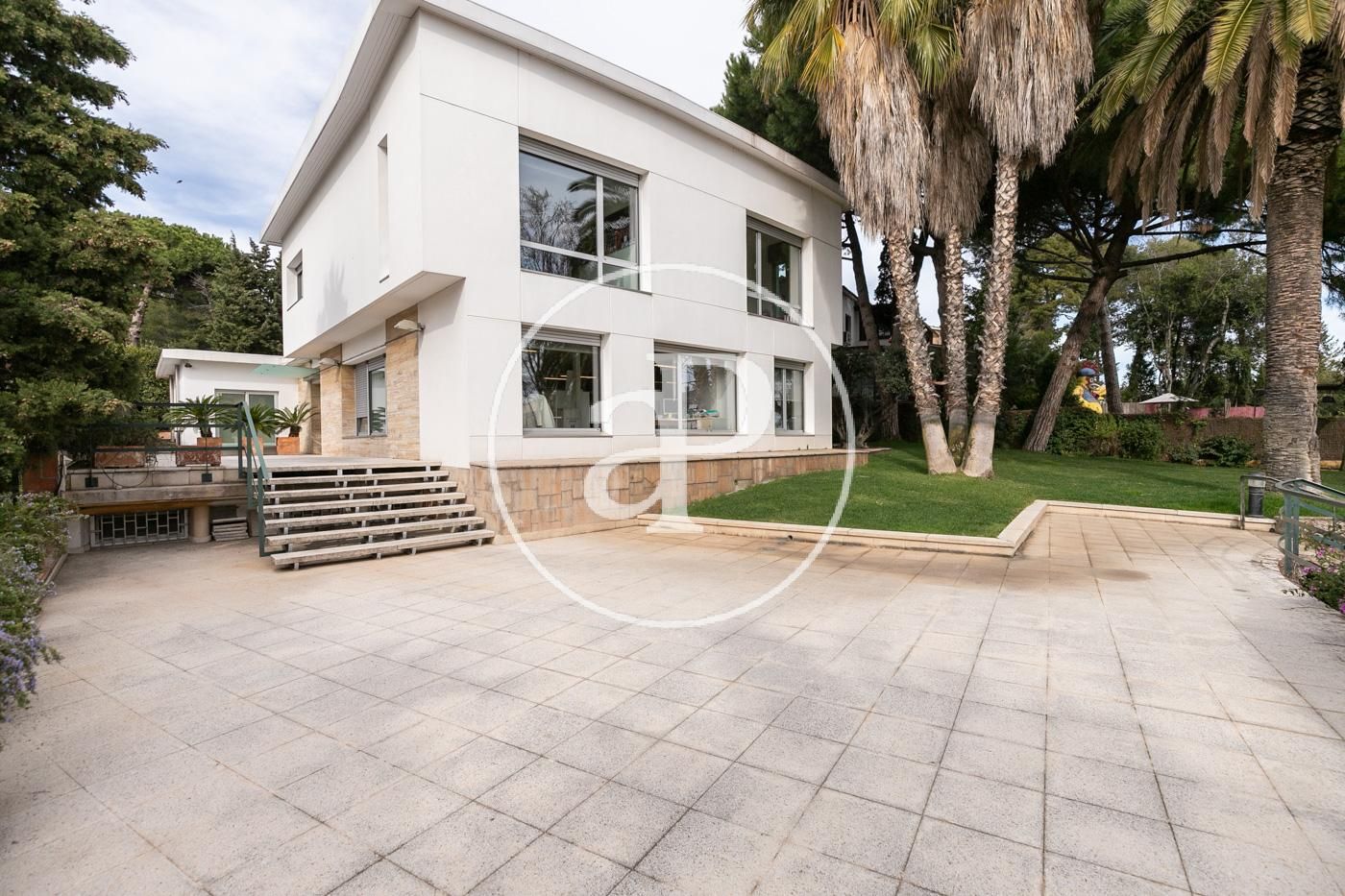 Espectacular ático dúplex de 614m2 construidos, cinco terrazas de un total de 52m2 y una cubierta de 256m2, orientado a sureste y a cuatro vientos, está ubicado en el histórico edificio residencial de Les Escales Park en Pedralbes.  Reconocido con el Premio FAD y proyectado por el arquitecto catalán Josep Lluís Sert, es un referente en la historia de la arquitectura del siglo XX. Está custodiado por un importante bosque de pinos y una serie de cascadas, su estructura de hormigón armado, muros de piedra y su controvertido diseño de rectángulos asimétricos, contrasta con elementos típicos locales como las persianas de librillo, los techos de viga y bovedilla o la cerámica vidriada de color ocre y verde-gris. El edificio es de cinco bloques, pero sólo este dúplex obedece a las ideas originales de Sert.  Este piso para estrenar, reformado íntegramente con un exquisito respeto por su singularidad, goza de las mejores vistas panorámicas de Barcelona. Está repartido en dos plantas de 264m2 y 298m2 respectivamente, conectados por una escalera interior con un balcón tribuna que preside uno de los comedores. La cocina, en dos ambientes, uno cerrado para cocción y otra de office independiente, está totalmente equipada. Asimismo, existen cuatro salas con diferentes posibilidades de uso, un gran salón polivalente y una magna biblioteca con estantes de mármol blanco de carrara.  Actualmente, tiene cuatro dormitorios en suite, dos de ellos en la planta cuarta y los otros dos, en la planta quinta, una sensacional máster suite con vestidor. Todos los dormitorios, disponen de armarios empotrados. Y, además, hay la posibilidad de redistribuir algunas de sus estancias y convertirlos en tres nuevos dormitorios. Cada uno, tiene su propio baño, hasta un total de siete y dispone de tres aseos de fórmica que se han restaurado fielmente. De la misma manera, se han repuesto o mantenido diferentes elementos decorativos como los pomos de las puertas o los focos, cuya intensidad es regulable en casi todas las estancias.  La vivienda, goza de grandes espacios y colosales ventanales, lo que facilita la entrada de mucha luz natural y propicia una sugerente amalgama de colores y luminosidades, adornadas por los juegos de claros y oscuros provocados por sus jardineras y tragaluces alumbradas con luces led. La azotea, convertida en un mirador solárium con piscina y zona de vestuario con aseo, propician un entorno de relax y disfrute en un marco excepcional. Existe la posibilidad de instalar un ascensor privado para todas las plantas.  Finalmente, la vivienda tiene una habitación de servicio con baño, zona de lavandería, una sala técnica de control de suministros (aerotermia, suelo radiante, etcétera), cuatro plazas de aparcamiento y un trastero. Existe una agradable zona comunitaria de paseo y otra ajardinada con piscina, servicio de conserjería y vigilancia nocturna.