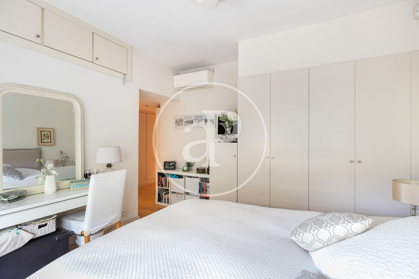 La zona de noche, diferenciada, cuenta con cuatro dormitorios. Desde el distribuidor, tenemos una amplia suite con vestidor, armarios empotrados y un baño completo con bañera; dos dormitorios individuales que comparten un baño en el pasillo y una cuarta habitación muy agradable con aseo, situado en la zona de día y que, anteriormente, era una sala de estar con salida a la terraza.