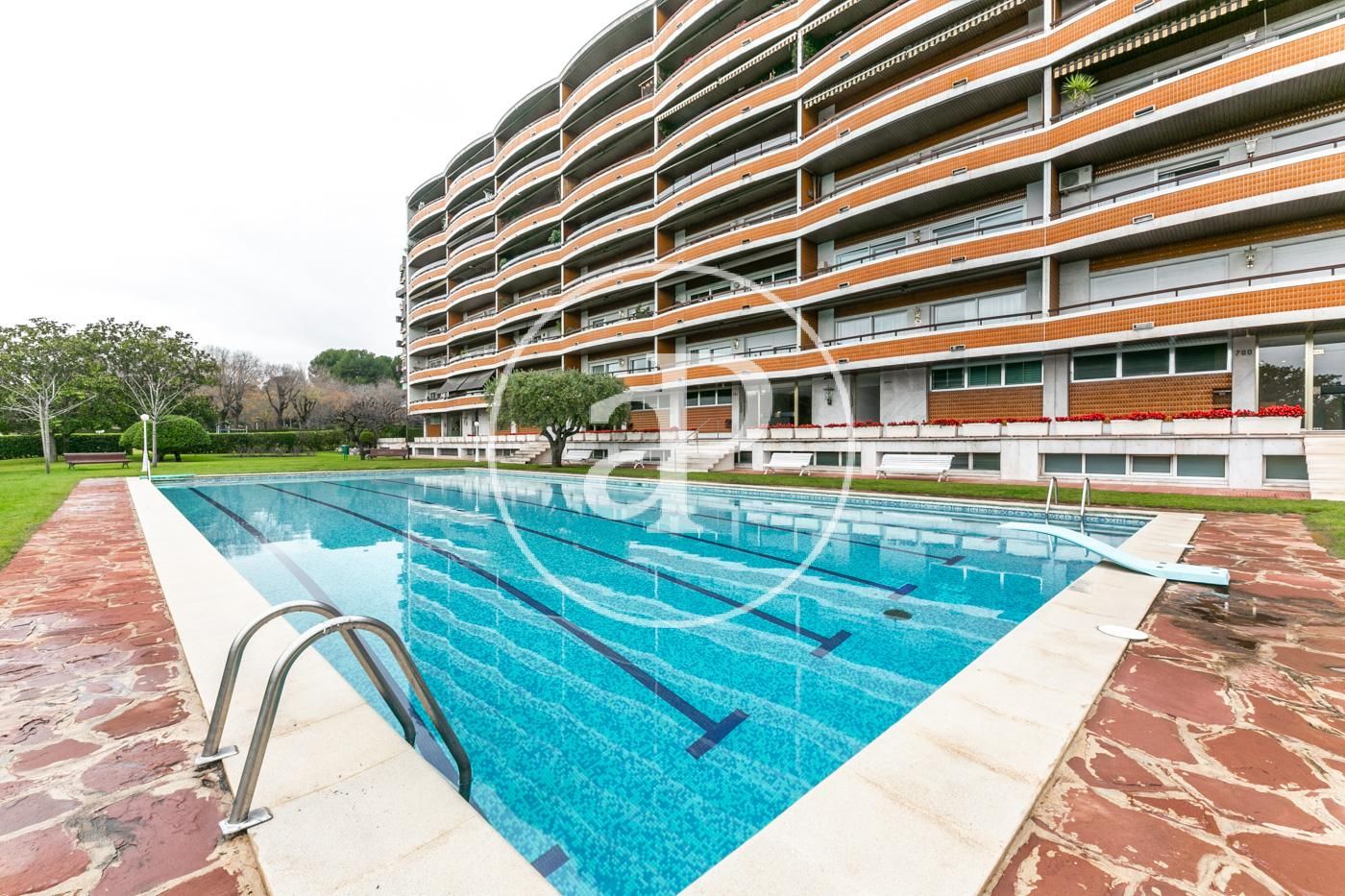 La finca se encuentra ubicada muy próxima al Real Club de Polo, el club deportivo David Lloyd Turó y al Parque Cervantes, está orientada a sur y dispone de una amplia zona comunitaria con área de juego infantil, piscina de 25mx12m y un gran terreno ajardinado de 3.000m2, aproximadamente.