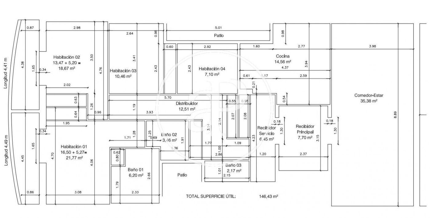 La vivienda de 172m² abarca las zonas de día y noche, separadas por un recibidor. En la zona de día, destaca su amplio salón comedor con grandes ventanales y salida a una soleada terraza de 15m2 orientada a mar, vista panorámica a la ciudad y al área ajardinada. Contigua y con entrada directa desde el comedor o el pasillo de la zona de descanso, encontramos una gran cocina office con el espacio de aguas integrada. Por otro lado, la zona de noche consta de cuatro dormitorios. Uno de ellos, la suite principal, dispone de un gran baño, mientras que las otras dos habitaciones dobles y la individual, comparten dos baños completos muy próximos. En la actualidad, la suite y una de las habitaciones dobles, incorporan como parte de la estancia, un balcón en cada una de ellas de unos 6m2. Además, cabe la posibilidad de recuperar una quinta habitación, actualmente habilitada para dar amplitud al pasillo y disponer de más armarios.