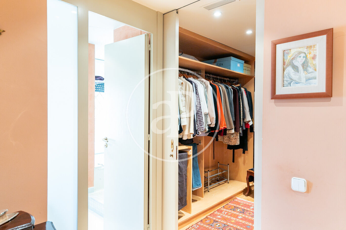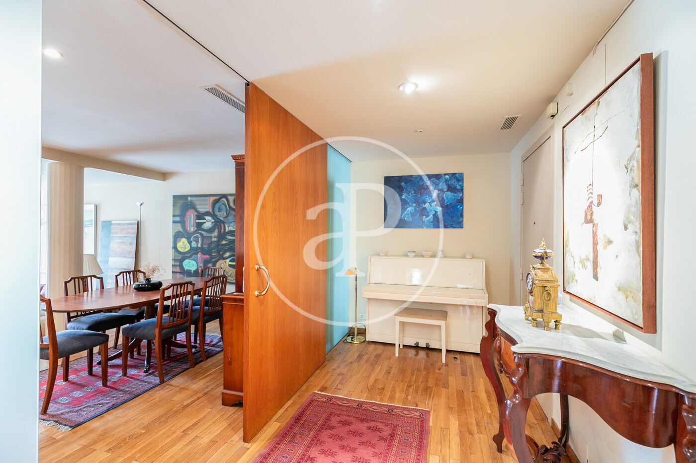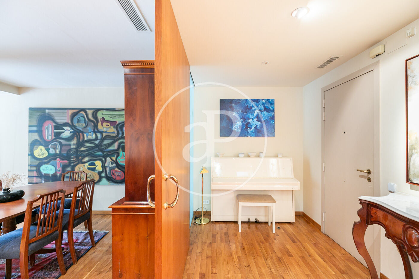 El piso de 185m², denota comodidad y elegancia en cada rincón, fue reformado en 1996, incluyendo la cocina, baños, instalaciones eléctricas, agua, calefacción y aire acondicionado por conductos, además de cerramientos con doble cristal y persianas de hierro de seguridad. Tiene tres entradas, puertas blindadas, dos ascensores, una escalera comunitaria y una entrada noble e independiente como si fuera un chalé privado que brinda intimidad al salón y un conveniente acceso directo a un agradable jardín comunitario.