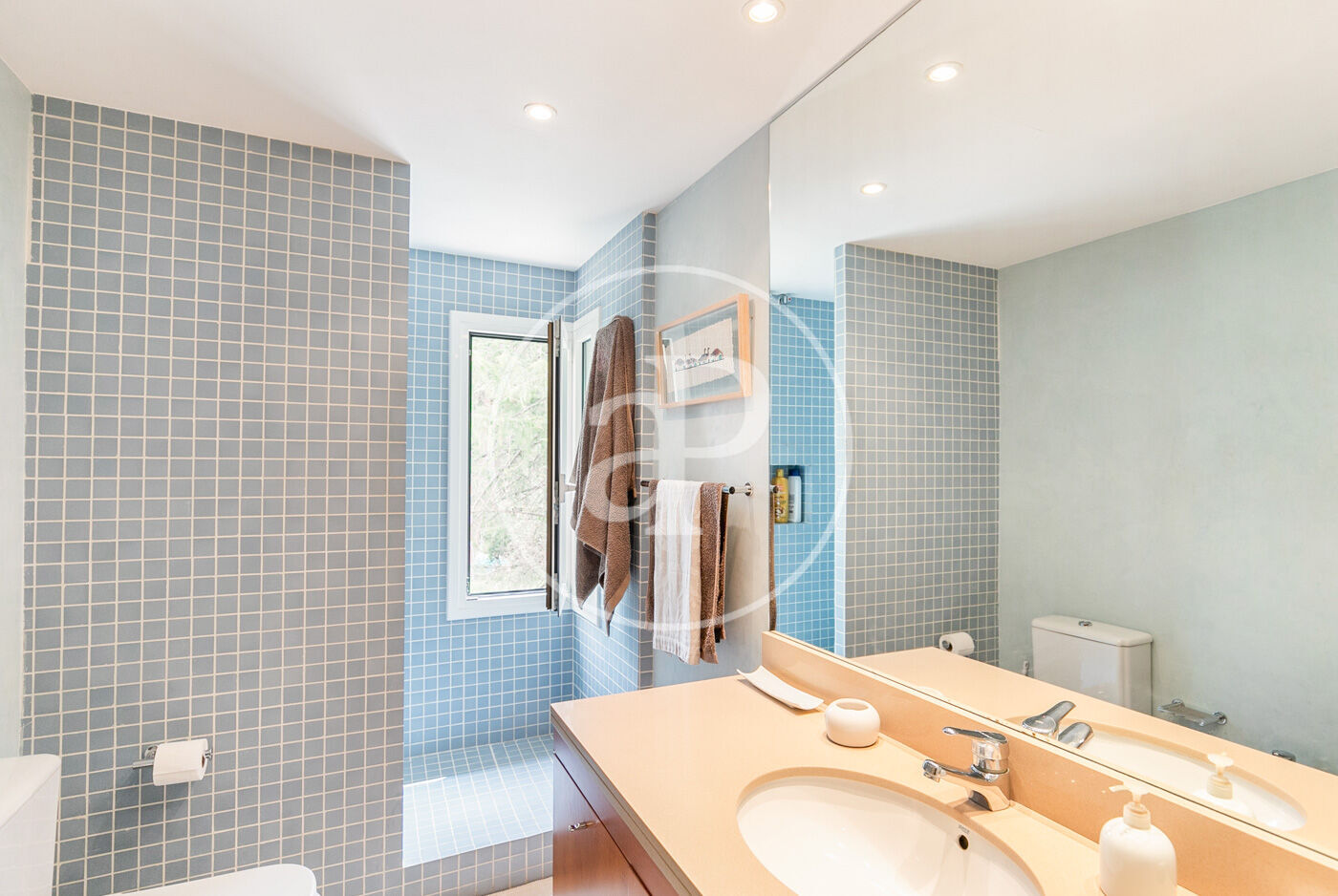 La zona de noche está compuesta por una máster suite principal con vestidor y armarios empotrados, lavabo con bañera de hidromasaje y una ducha independiente. Cuenta con otros dos dormitorios dobles con armarios empotrados y un segundo lavabo con ducha que, a su vez, hace de baño de invitados. Todas las habitaciones son exteriores y ofrecen vistas a un exuberante entorno arbolado.