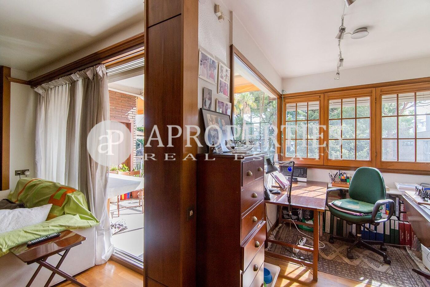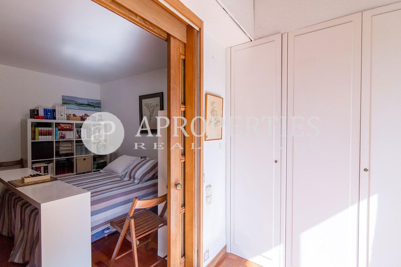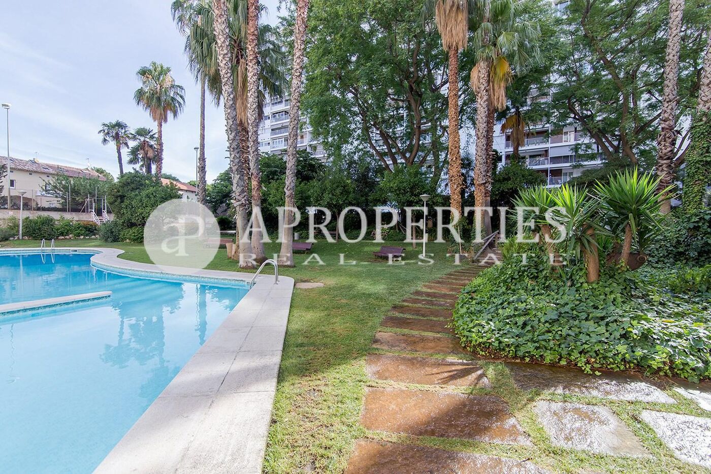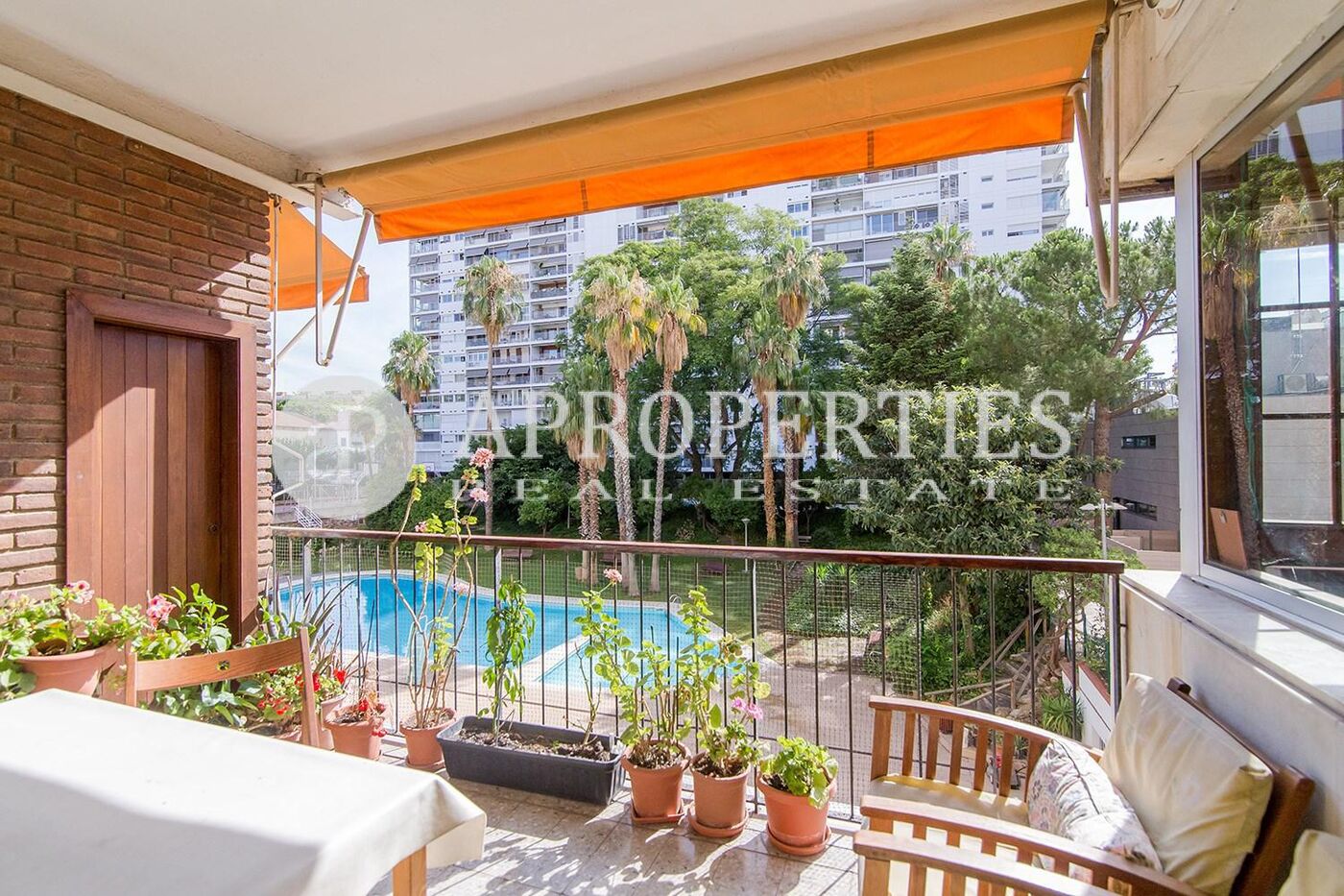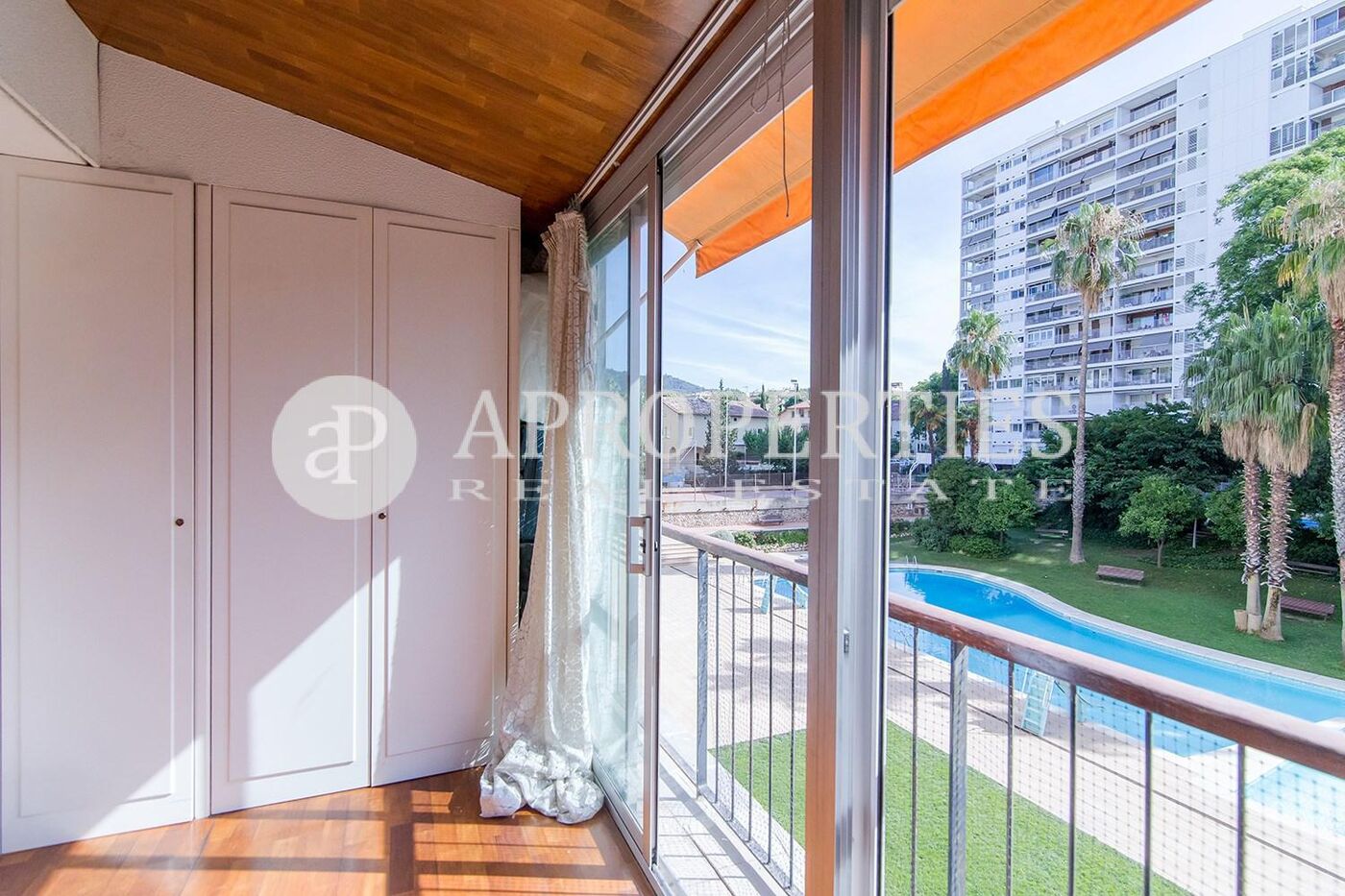 En la exclusiva zona de Pedralbes, a tan solo unos metros del centro y cerca de los mejores colegios internacionales, universidades y escuelas de negocios más prestigiosas o clubes deportivos como el Real Club de Tenis Barcelona, próximo al Parque de Pedralbes y colindante al barrio de Sarriá, encontramos este apartamento de 80m2 con vistas a las zonas ajardinadas y a la piscina de la comunidad. La vivienda consta de un salón-comedor que da acceso a una terraza de 7m2, una cocina, un dormitorio en suite con baño completo y un aseo con ducha. Actualmente la vivienda requiere de una reforma integral. Dada su distribución y morfología dicho apartamento ofrece múltiples posibilidades para conseguir una pieza acogedora y con encanto. También dispone de una plaza de parking.