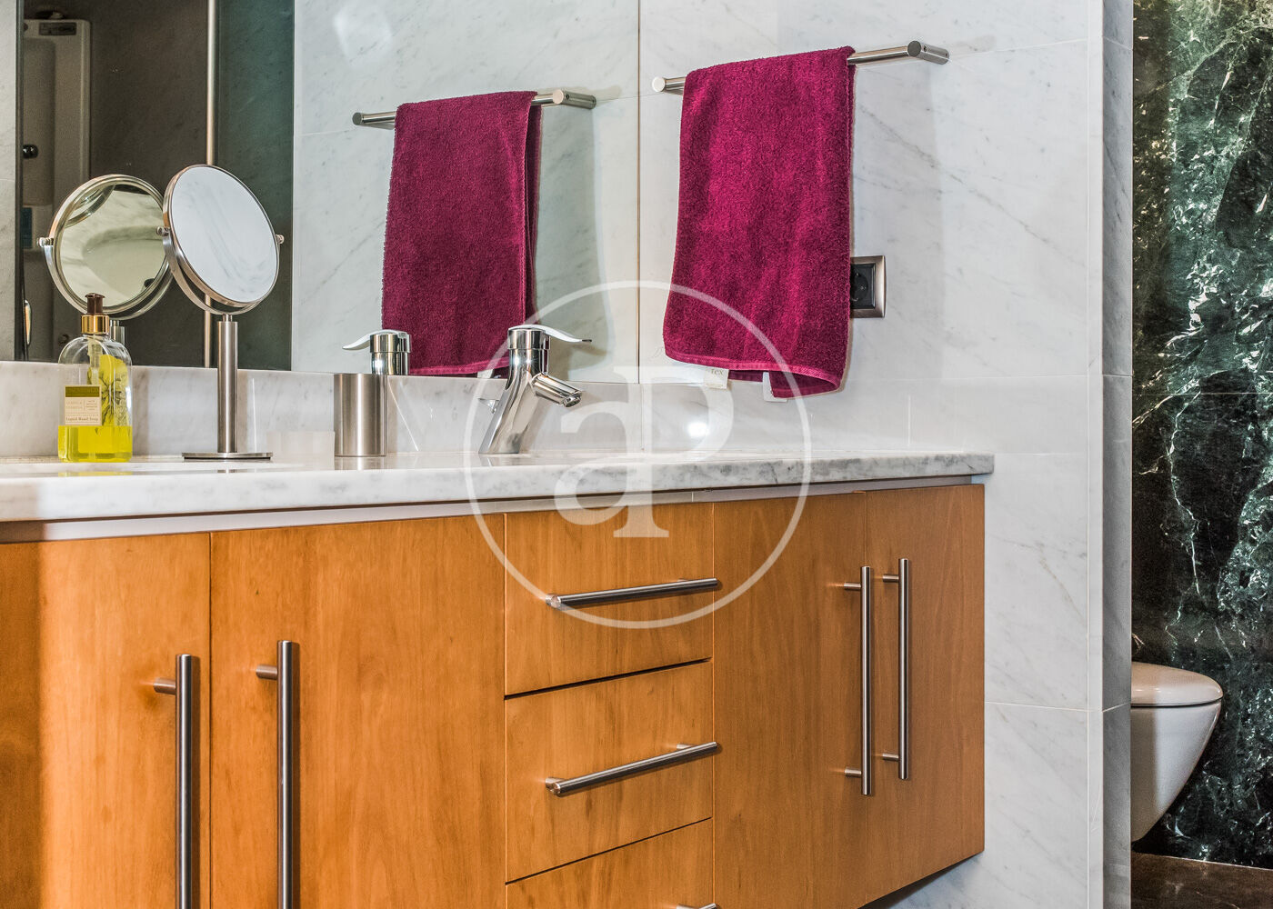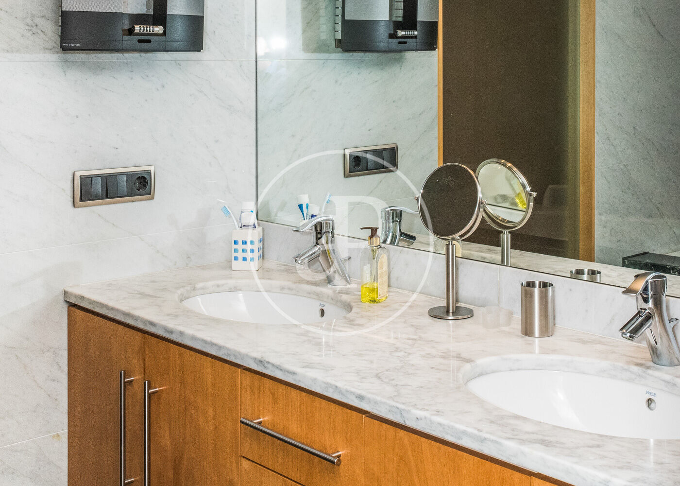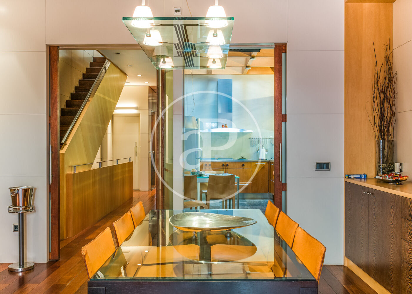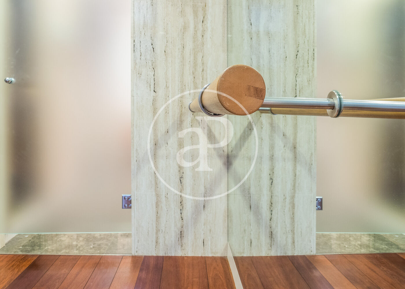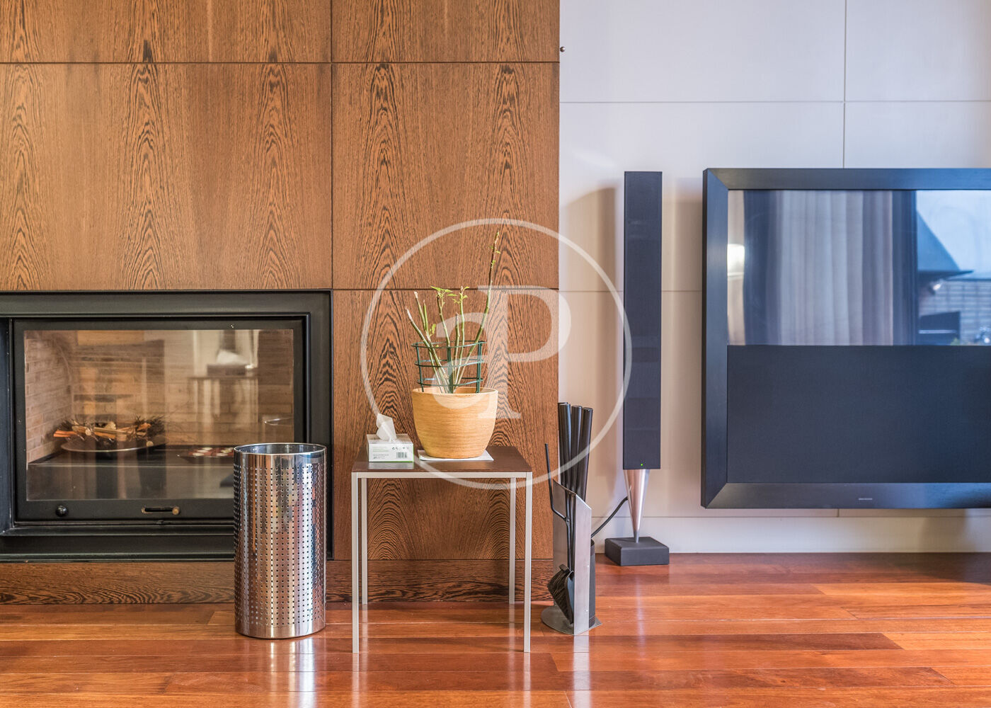 Al entrar en la vivienda nos encontramos con un distribuidor, el elevador del parking, un baño y la zona de día compuesta de una increíble cocina equipada con los mejores electrodomésticos, un salón/comedor con chimenea y una preciosa terraza con barbacoa, ideada para disfrutar de grandes momentos con amigos y familia.