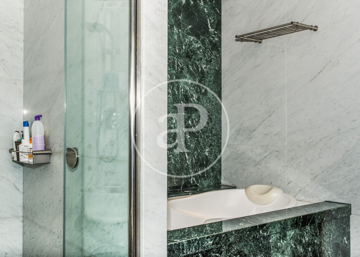 En la emblemática Rambla Cataluña encontramos este piso totalmente reformado con las mejores calidades y con una superficie de 227m2 distribuidos en 4 habitaciones, 3 baños y 1 aseo, siendo una de las habitaciones una máster suite con balcones de seis metros a patio de manzana tranquilo y soleado y dos suites con gran ventanal y balcón. Las otras dos habitaciones dobles son interiores. Las habitaciones cuentas con armarios empotrados La zona de día y noche están totalmente diferenciadas por un amplio recibidor con armarios empotrados y un pasillo típico de los pisos de L´Eixample. En la zona de día encontramos una amplia zona común que consta de cocina y comedor unidas y de mucha amplitud separadas por una gran isla de mármol y una segunda zona de salón con dos balcones a Rambla Cataluña y chimenea. La cocina está totalmente equipada con electrodomésticos Miele de alta gama integrados y mucho espacio para almacenaje. Todos los baños son de Porcelanosa, atemporales y con mucho estilo. En la reforma se han recuperado los suelos originales de noya y los techos artesanados. La propiedad cuenta con aire acondicionado frio/calor, placas solares (en el terrado) y lavadero. El edificio está en perfecto estado siendo uno de los más bonitos de Rambla Cataluña y cuenta con servicio de conserjería y ascensor. Si está buscando una vivienda lista para entrar a vivir con estilo y funcionalidad en una de las zonas más emblemáticas de la Ciudad Condal, no deje de visitar esta propiedad.
