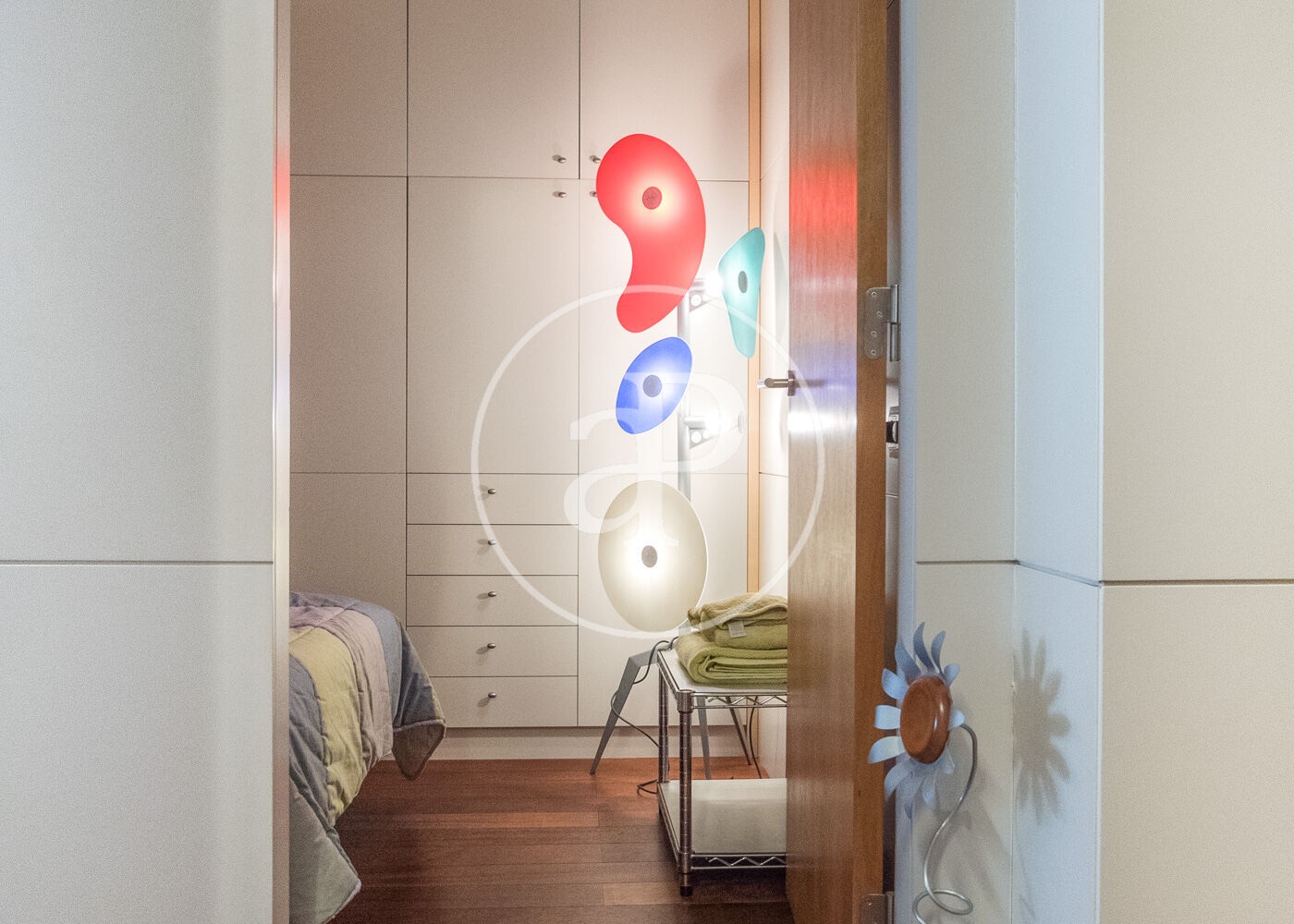 En la primera planta su precioso distribuidor nos lleva a la suite con vestidor y baño, a los dos dormitorios dobles con un baño para compartir, y a la zona de lavado/planchado, así como al patio interior que es una gran vía de entrada de luz adicional a la casa.