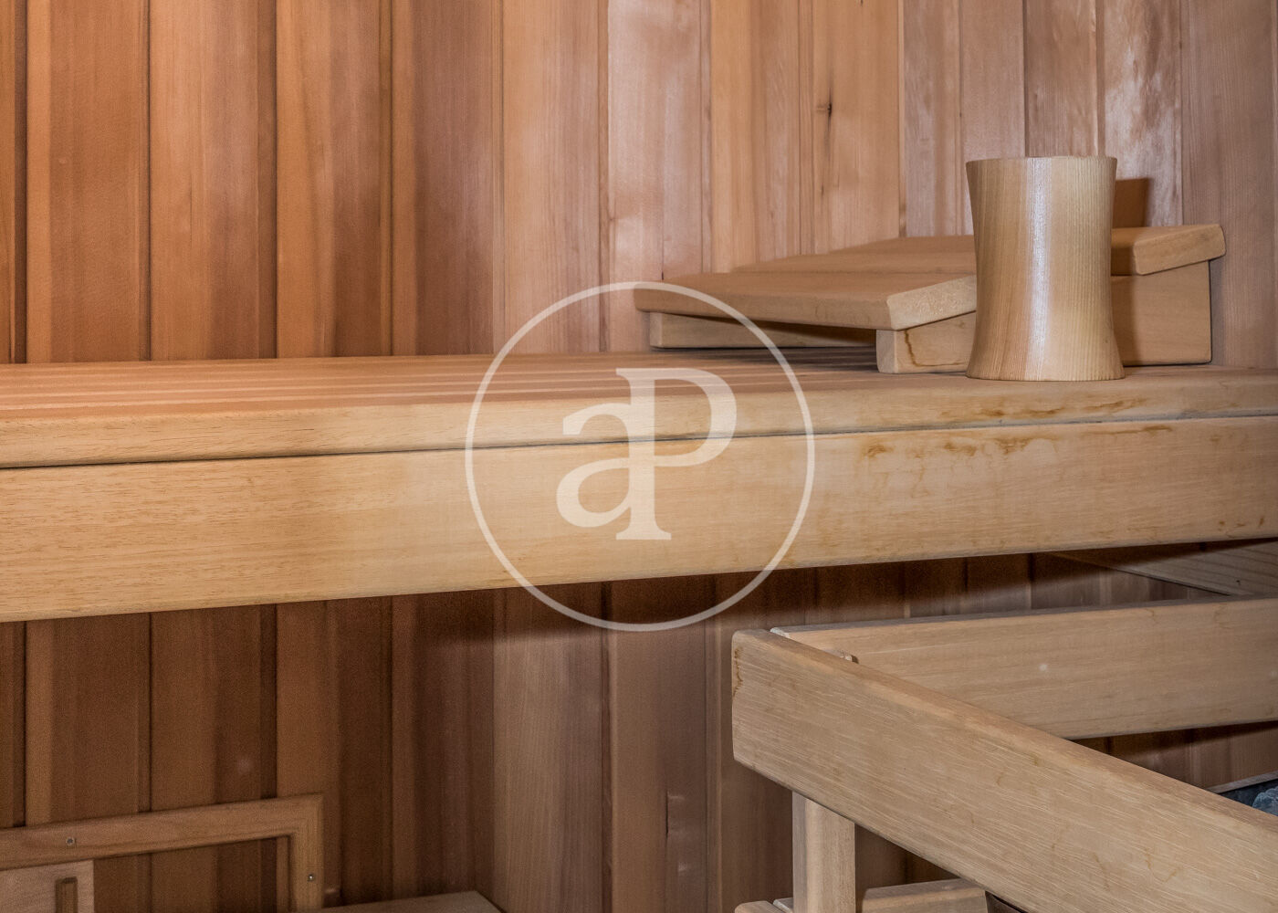 En la segunda planta se ubica una de las zonas más deseadas de la casa ya que cuenta con un espacio de gimnasio, con sauna y zona de aguas incluidas que permite cuidarse y relajarse al llegar a casa, además de 2 espacios muy versátiles por su gran amplitud y que podrían ser 2 dormitorios adicionales o bien equiparse como despacho o zona de cine, según las necesidades.