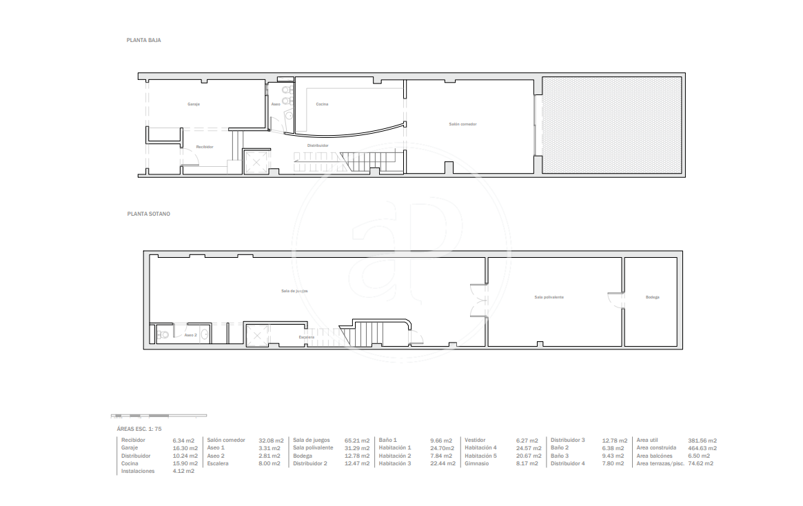 A la planta sótano se accede por la escalera interior o bien por elevador de coches dando acceso al parking con capacidad para 3 coches. También encontramos un aseo, un trastero y una zona de fiestas que da paso a la bodega.