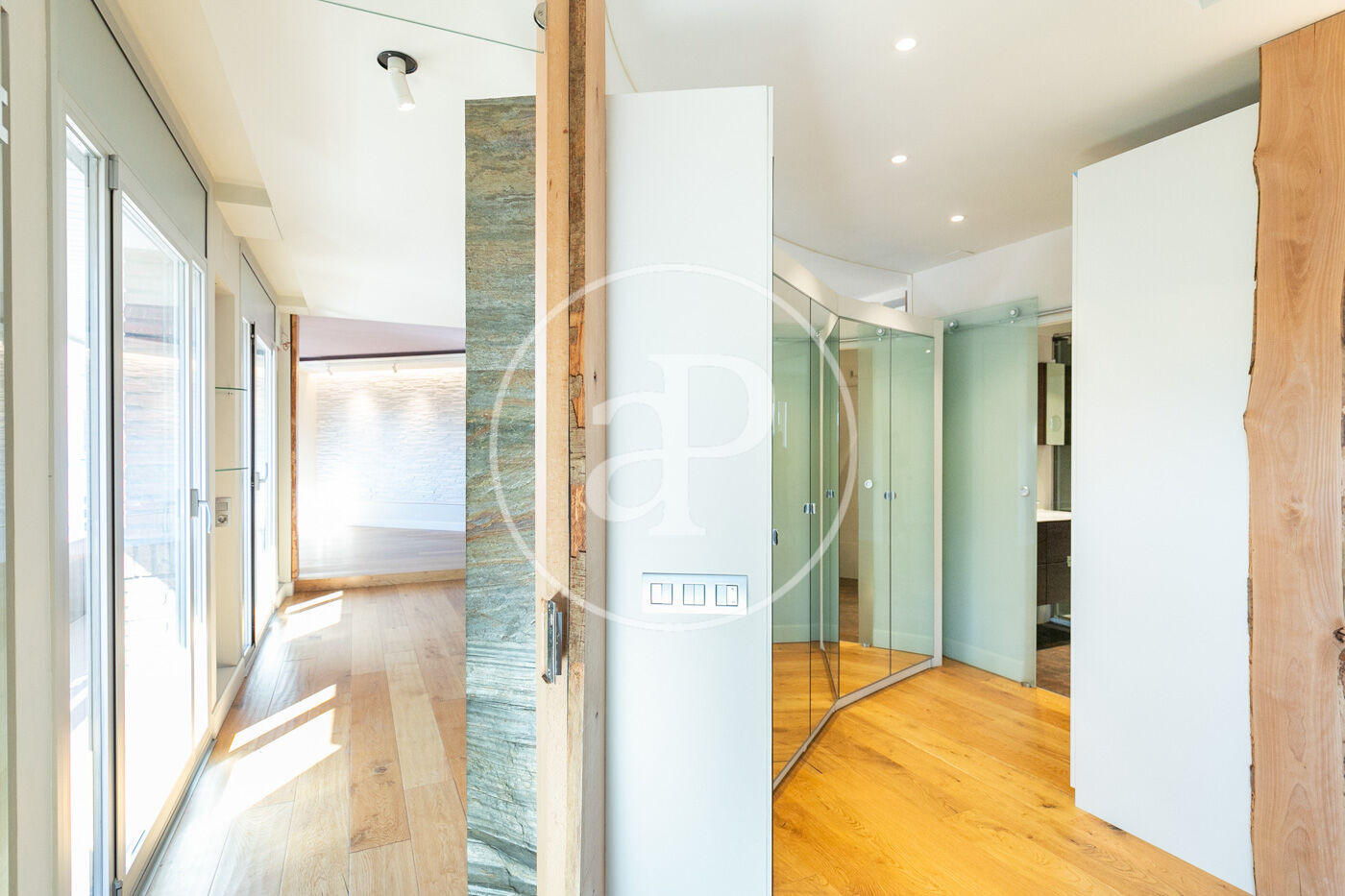 aProperties ofrece a sus clientes este exclusivo ático con una terraza de aproximadamente 50 m². Ubicada cerca del centro comercial El Saler, esta vivienda ha sido diseñada para aprovechar al máximo la luz natural. Se encuentra en un residencial con completas zonas comunes que incluyen piscina, gimnasio, zona de juegos, gastrobar y garita de seguridad. La propiedad dispone de tres dormitorios, todos con acceso directo a la terraza. El dormitorio principal cuenta con una zona de vestidor y baño completo. Además, la vivienda ofrece un aseo adicional. La cocina está equipada con mobiliario blanco y encimera de granito tipo Silestone en color negro. Desde aquí se accede a una amplia zona de lavadero. El salón-comedor, de 50 m², se ha distribuido en dos ambientes independientes, amueblados con piezas de excelente calidad. Desde el comedor se accede directamente a la terraza de 50 m², cuyo pavimento es de gres porcelánico antideslizante imitación madera. La terraza, semi-porchada, goza de vistas despejadas, gran privacidad y una orientación privilegiada. La vivienda cuenta con agua caliente y calefacción mediante aerotermia y suelo radiante, además de un sistema de climatización por conductos, regulado mediante termostatos en cada estancia. También dispone de sistema domótico. Se incluyen dos plazas de aparcamiento, un trastero y espacio para bicicletas. No dudes en ponerte en contacto con nosotros, estaremos encantados de atenderte.