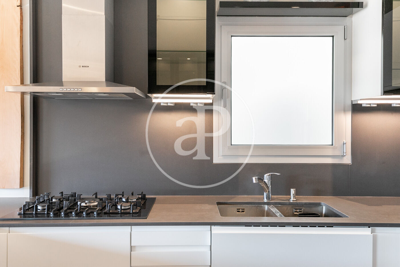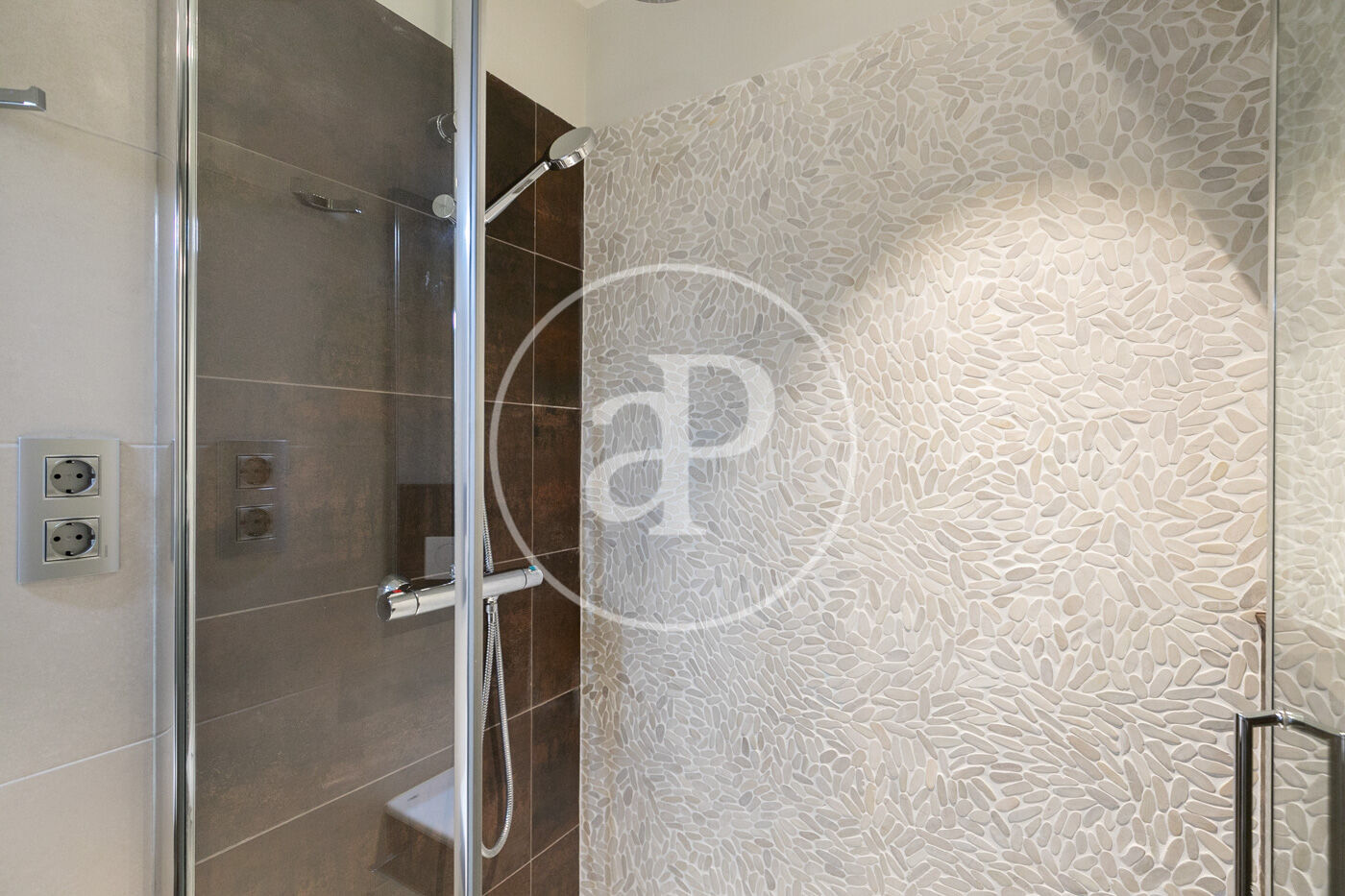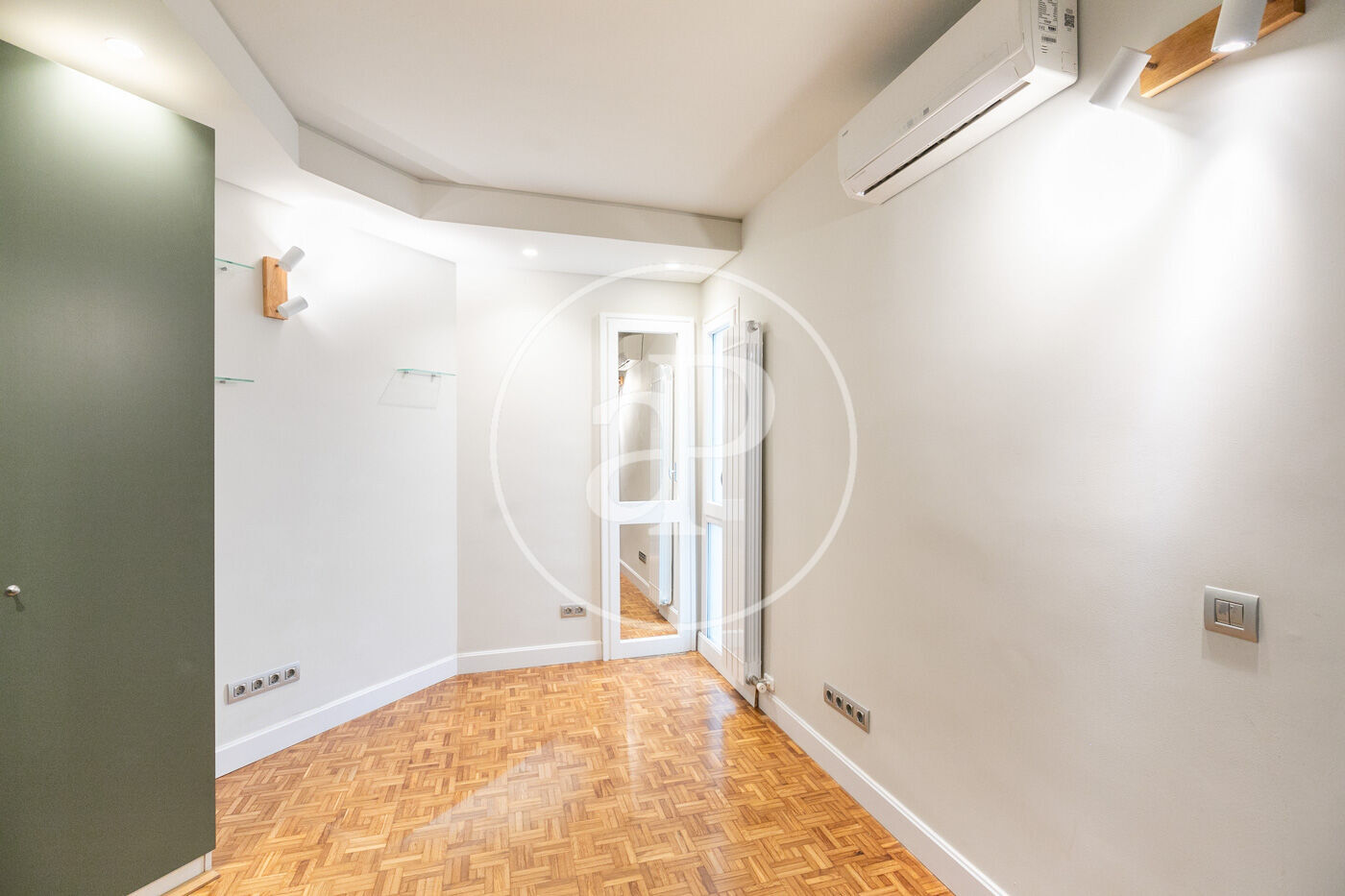 Esta bonita vivienda de 70 m² está ubicada en el barrio de Poble Sec, en una calle muy tranquila, cerca del Parc de Montjuïc y a 5 minutos de la parada de metro Paral·lel. Se trata de un Principal (primero real) situado en una finca regia típica de la arquitectura de Barcelona de principios del siglo XX, muy bien cuidada y restaurada.   El piso se abre a la fachada de la calle Tapioles con un balcón continuo que va de lado a lado y le proporciona mucha luz al salón y a una de las habitaciones. La reforma integral se ha realizado con un estilo moderno pero a la vez intentando conservar y potenciar al máximo todas las características arquitectónicas singulares de su época. Tiene los techos muy altos, conservados en su formato original con las vigas metálicas y las clásicas bovedillas cerámicas catalanas. Los mosaicos hidráulicos originales, con distintos dibujos geométricos y colores en cada espacio, se han podido conservar y restaurar casi en su totalidad. También se han podido mantener casi todas las carpinterías de madera, incorporándoles cristal doble con cámara. En la zona de la cocina y el baño se han puesto dos carpinterías de aluminio nuevas lacadas en blanco mate.   El espacio se distribuye de manera muy funcional y compacta, sin corredores ni pasillos. Des de la puerta de entrada, a través de un pequeño vestíbulo puedes acceder al baño, que es muy amplio y cómodo y da acceso a un lavadero donde se ubica el calentador eléctrico y la conexión para instalar la lavadora. Este mismo vestíbulo se abre a un gran espacio abierto donde se encuentra la cocina, con una barra con taburetes y la mesa de comedor. Traspasando dos arcos, este espacio se comunica con un amplio y luminoso salón desde el cual se accede al balcón exterior. A las dos habitaciones dobles se accede desde la zona común, una da a la calle Tapioles y la otra tiene un balcón a patio interior, las dos están equipadas con armarios empotrados.   La vivienda ha sido totalmente reformada, todas las instalaciones de agua, saneamiento y electricidad se han hecho nuevas. El salón y las dos habitaciones disponen de máquinas de aire acondicionado de frío/calor. La cocina está equipada con nevera y lavavajillas integrados, horno, campana extractora y placa de inducción.  El apartamento se entrega completamente amueblado. DISPONIBLE A PARTIR DE MAYO. SE PUEDE VISITAR YA.  * En cumplimiento de la Ley 12/2023 y la Llei 18/2007 informamos que:
