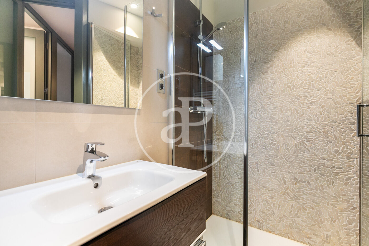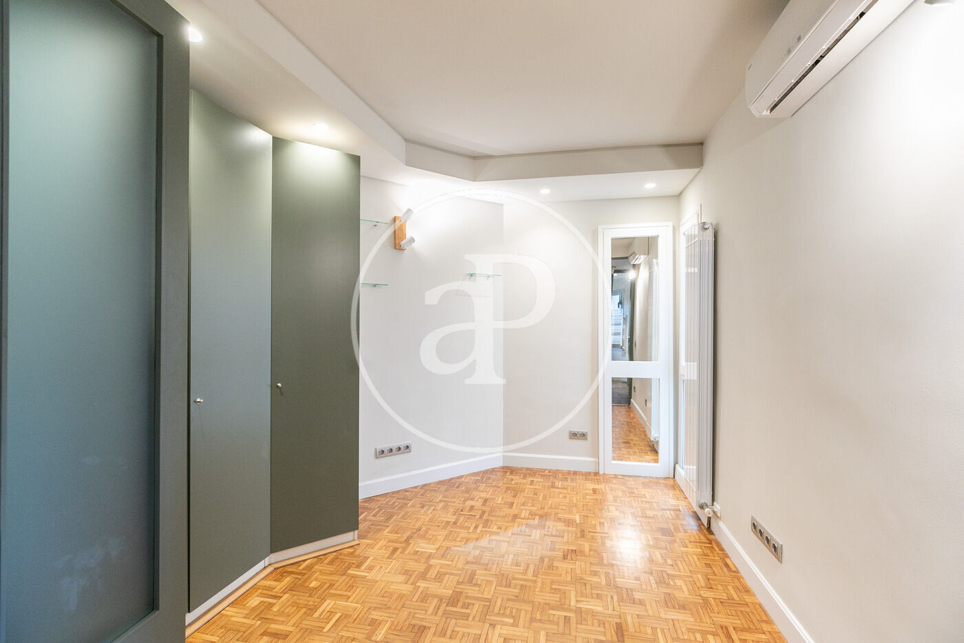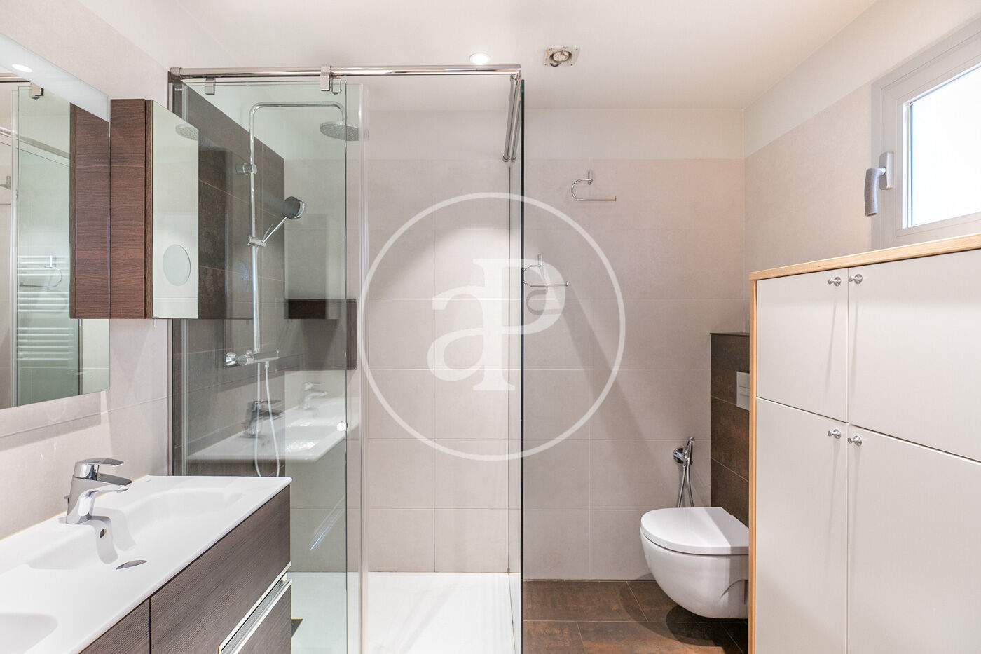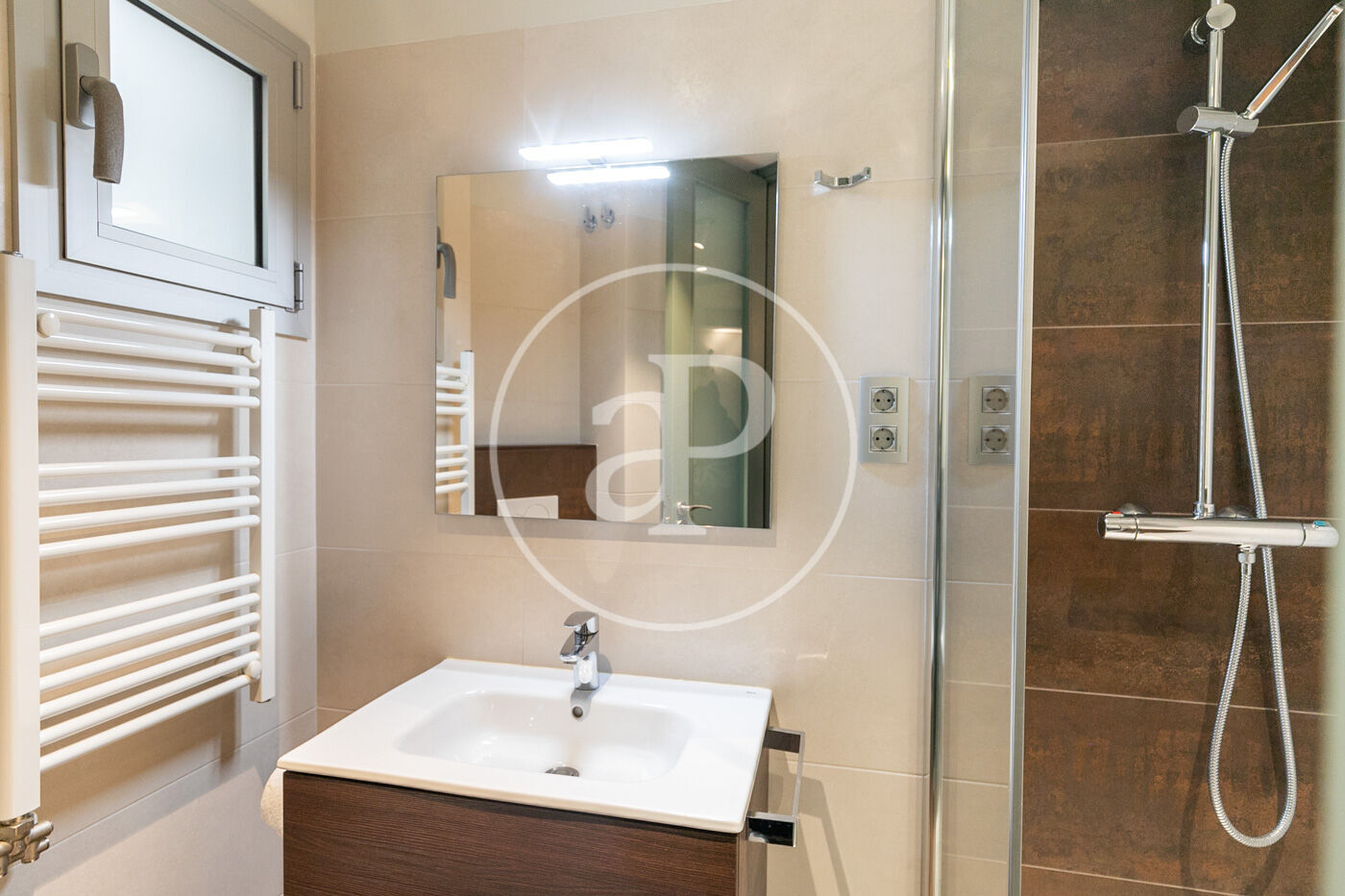 Esta bonita vivienda de 70 m² está ubicada en el barrio de Poble Sec, en una calle muy tranquila, cerca del Parc de Montjuïc y a 5 minutos de la parada de metro Paral·lel. Se trata de un Principal (primero real) situado en una finca regia típica de la arquitectura de Barcelona de principios del siglo XX, muy bien cuidada y restaurada.   El piso se abre a la fachada de la calle Tapioles con un balcón continuo que va de lado a lado y le proporciona mucha luz al salón y a una de las habitaciones. La reforma integral se ha realizado con un estilo moderno pero a la vez intentando conservar y potenciar al máximo todas las características arquitectónicas singulares de su época. Tiene los techos muy altos, conservados en su formato original con las vigas metálicas y las clásicas bovedillas cerámicas catalanas. Los mosaicos hidráulicos originales, con distintos dibujos geométricos y colores en cada espacio, se han podido conservar y restaurar casi en su totalidad. También se han podido mantener casi todas las carpinterías de madera, incorporándoles cristal doble con cámara. En la zona de la cocina y el baño se han puesto dos carpinterías de aluminio nuevas lacadas en blanco mate.   El espacio se distribuye de manera muy funcional y compacta, sin corredores ni pasillos. Des de la puerta de entrada, a través de un pequeño vestíbulo puedes acceder al baño, que es muy amplio y cómodo y da acceso a un lavadero donde se ubica el calentador eléctrico y la conexión para instalar la lavadora. Este mismo vestíbulo se abre a un gran espacio abierto donde se encuentra la cocina, con una barra con taburetes y la mesa de comedor. Traspasando dos arcos, este espacio se comunica con un amplio y luminoso salón desde el cual se accede al balcón exterior. A las dos habitaciones dobles se accede desde la zona común, una da a la calle Tapioles y la otra tiene un balcón a patio interior, las dos están equipadas con armarios empotrados.   La vivienda ha sido totalmente reformada, todas las instalaciones de agua, saneamiento y electricidad se han hecho nuevas. El salón y las dos habitaciones disponen de máquinas de aire acondicionado de frío/calor. La cocina está equipada con nevera y lavavajillas integrados, horno, campana extractora y placa de inducción.  El apartamento se entrega completamente amueblado. DISPONIBLE A PARTIR DE MAYO. SE PUEDE VISITAR YA.  * En cumplimiento de la Ley 12/2023 y la Llei 18/2007 informamos que: